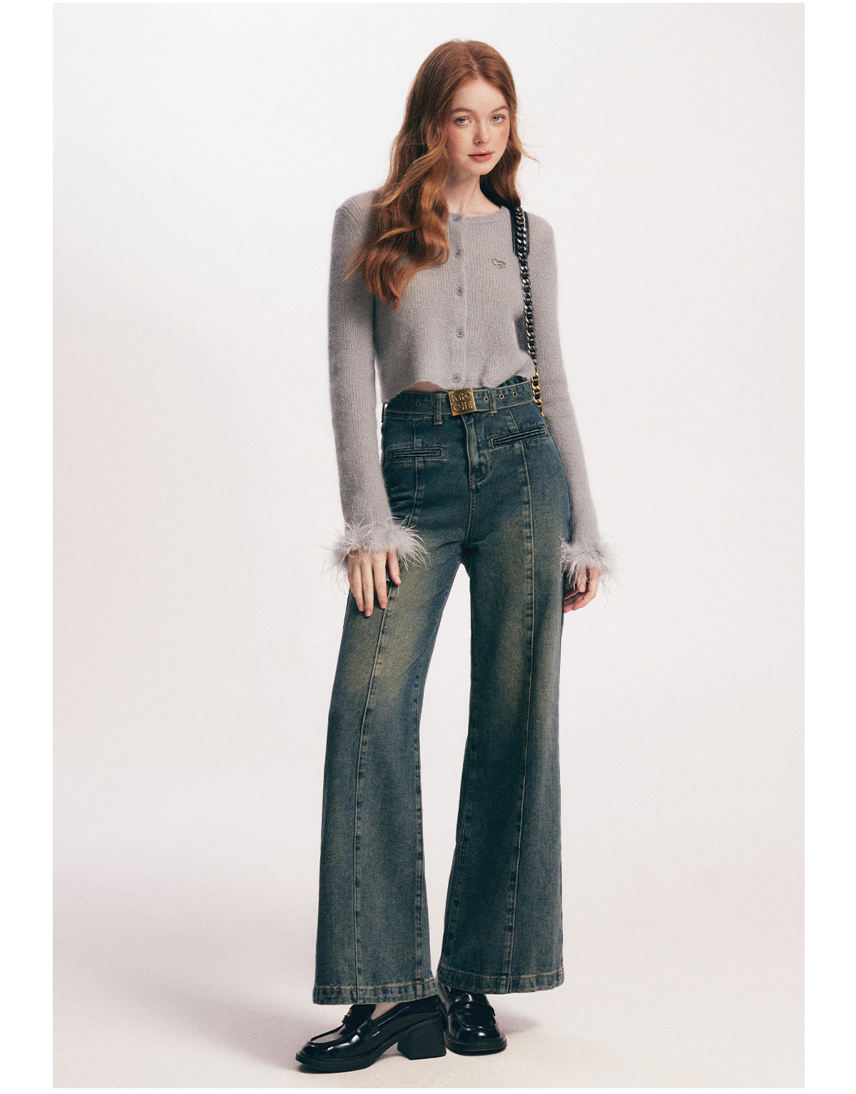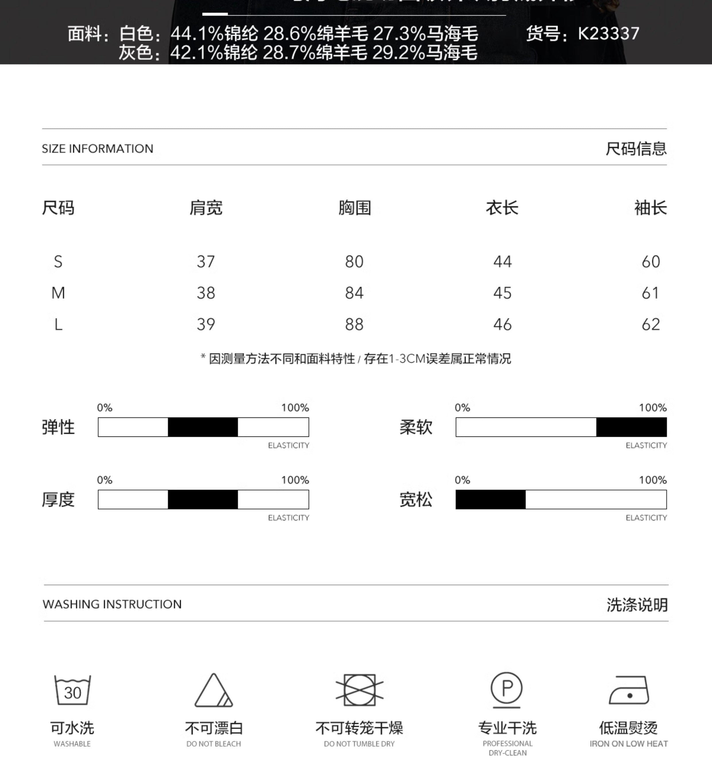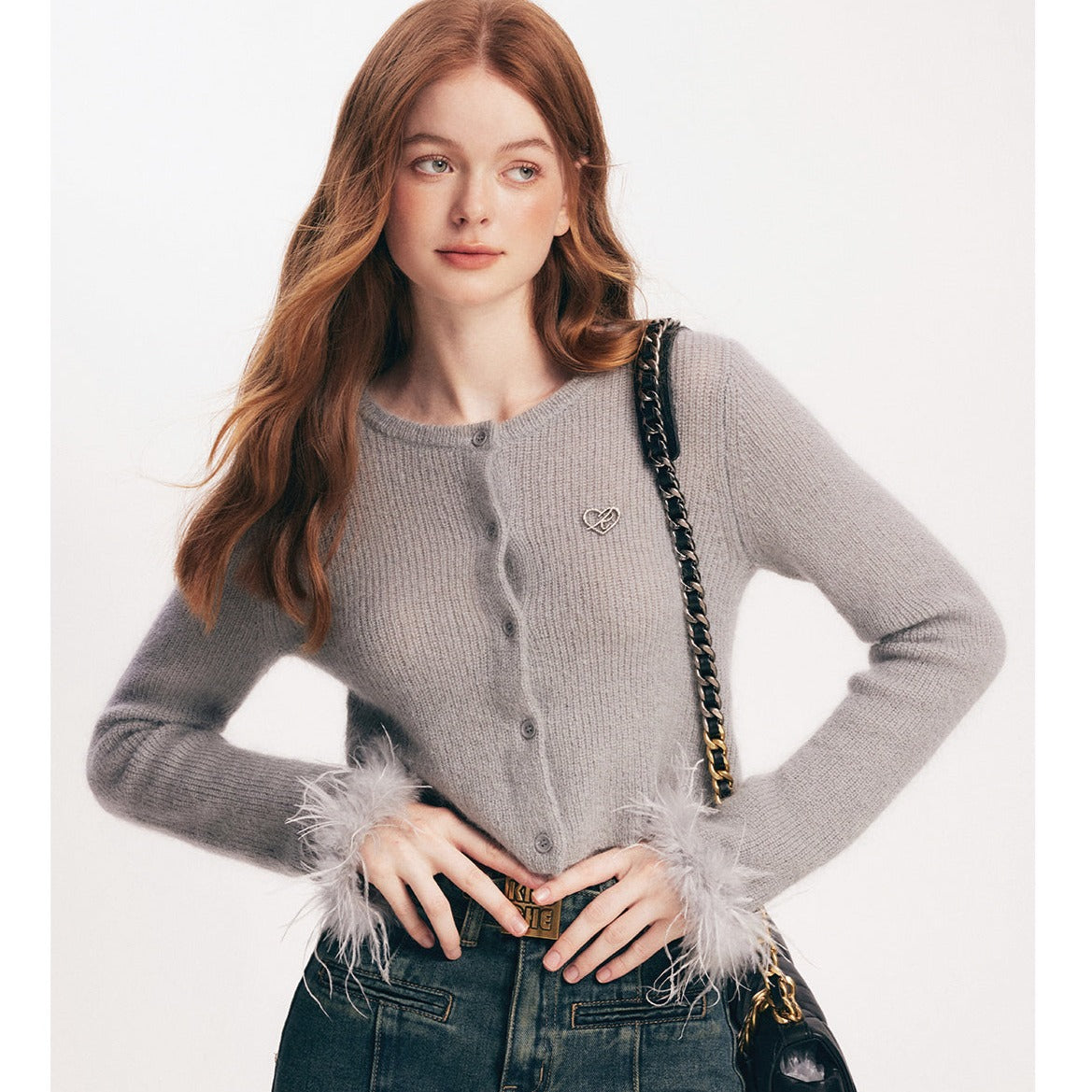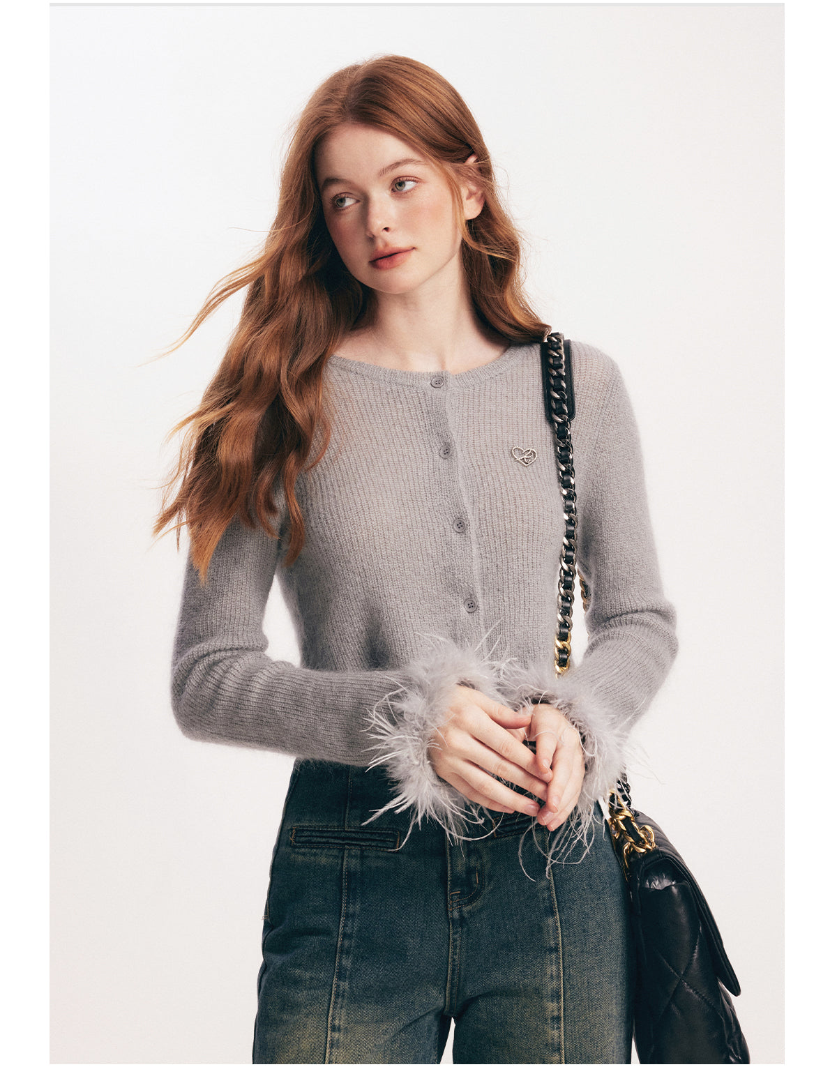 Kroche SS2312 马海毛圆领短款长袖针织衫 灰