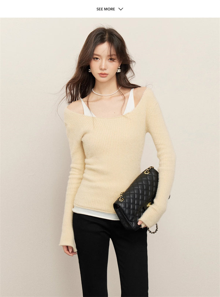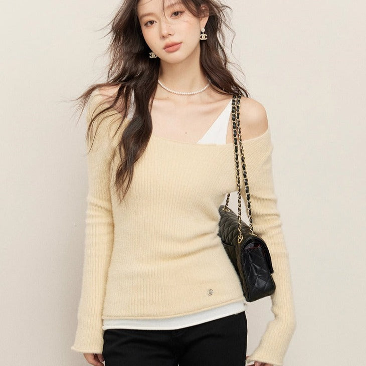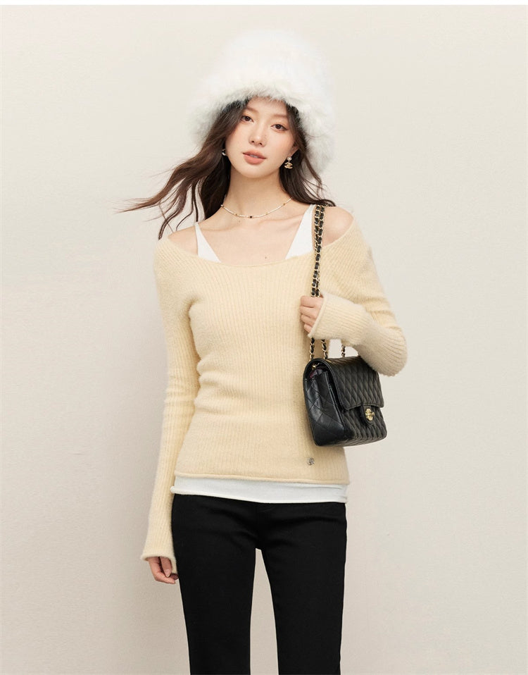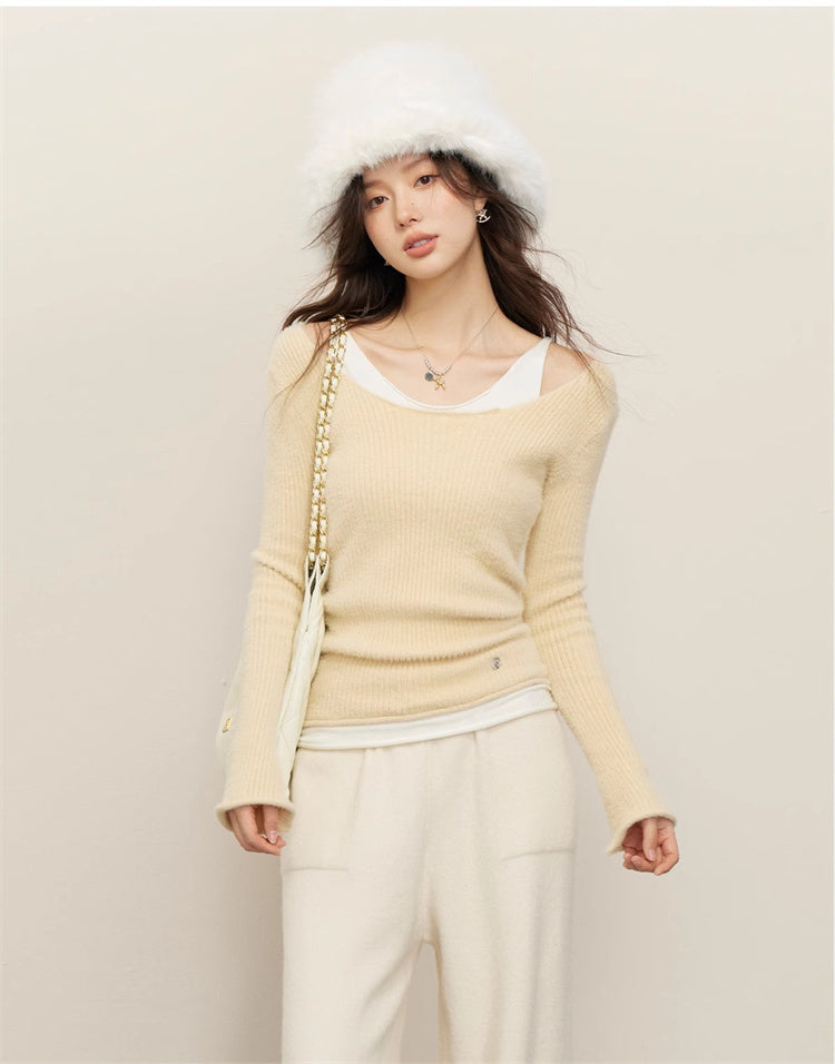 Kroche SS2401 假两件貂绒拼接针织打底 杏