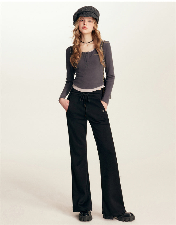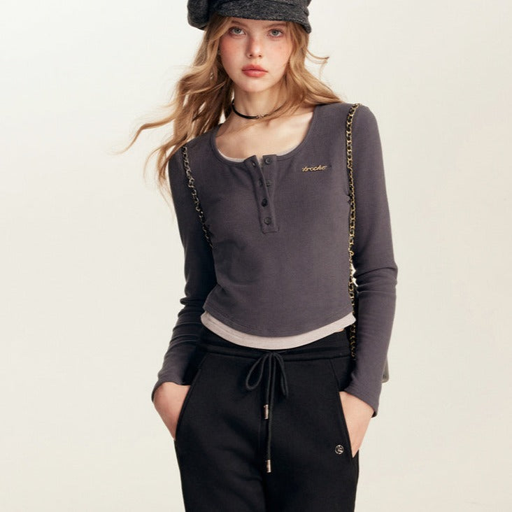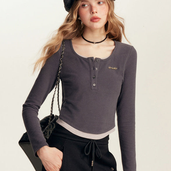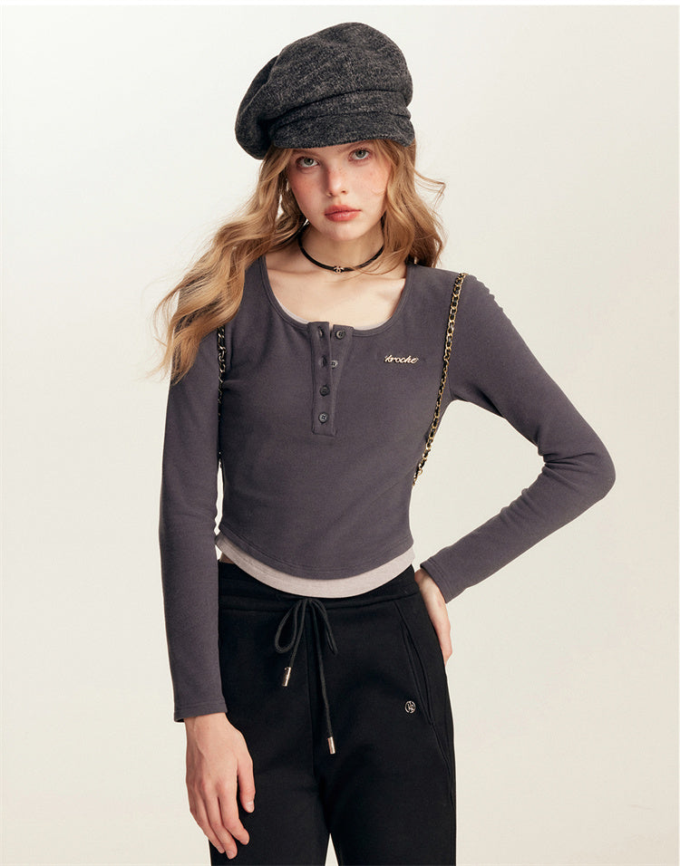 Kroche SS2402 假两件长袖厚实德绒打底衫 深灰