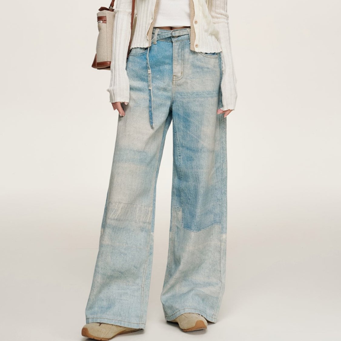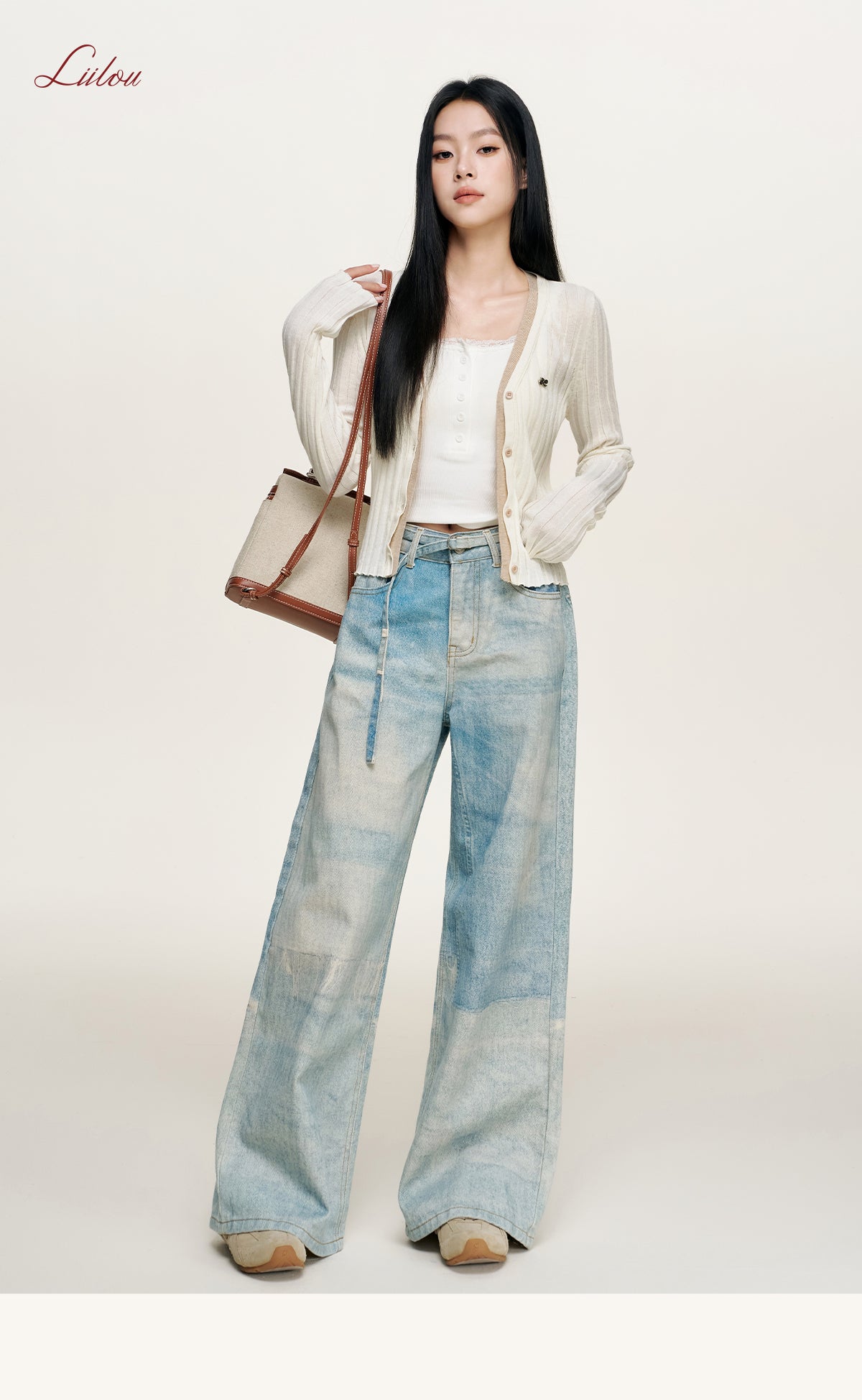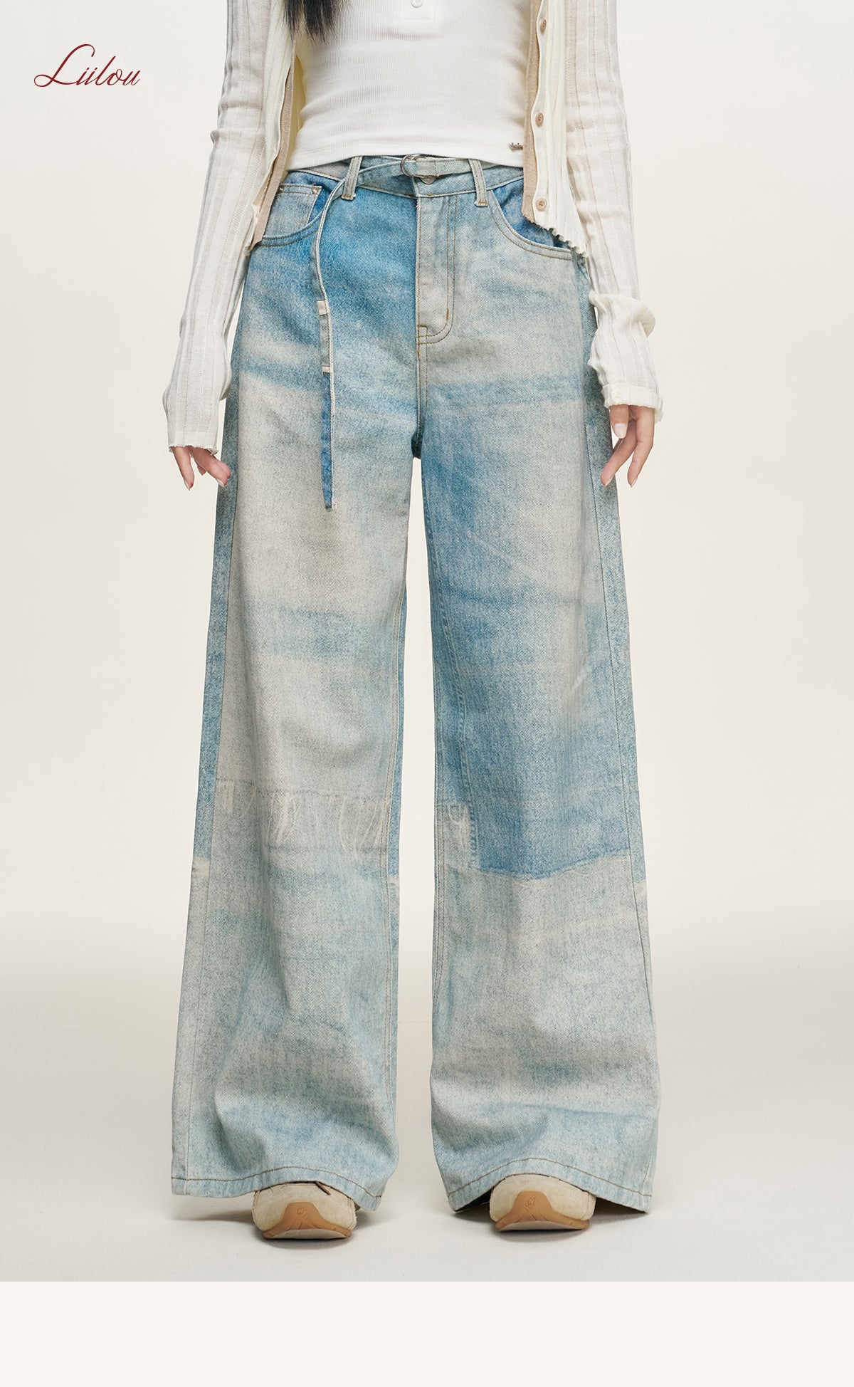 LIILOU 2410 细腰带宽松阔腿牛仔长裤