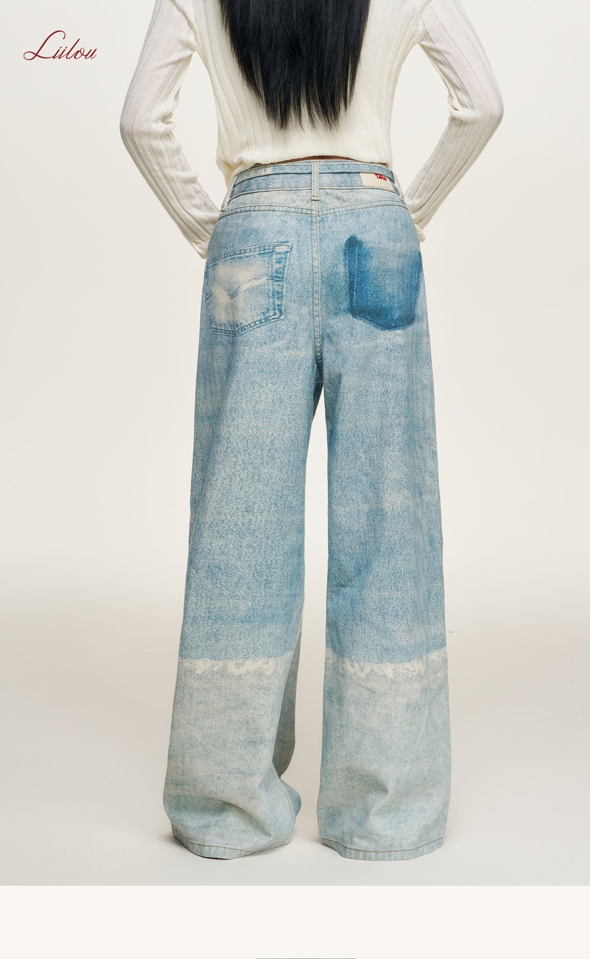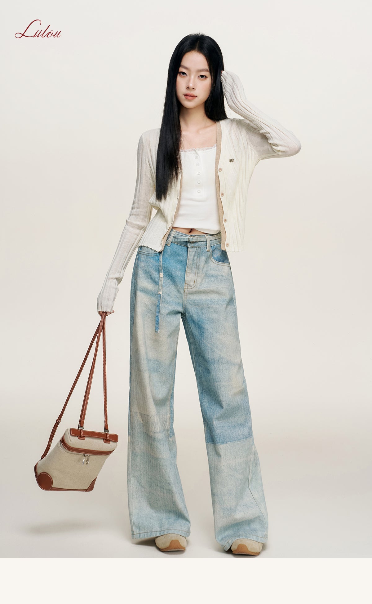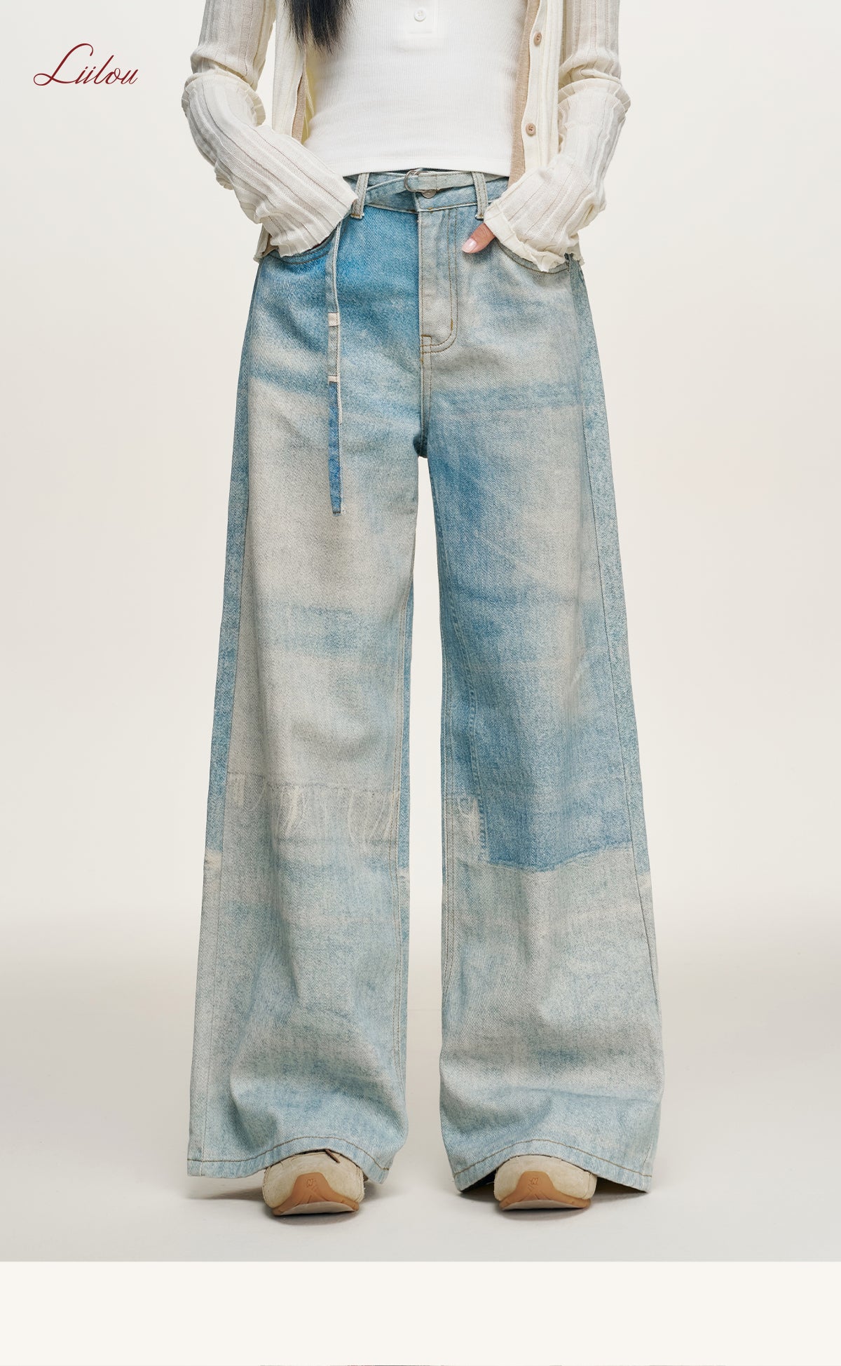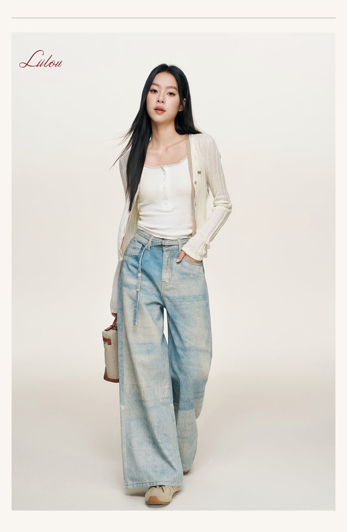 LIILOU 2410 细腰带宽松阔腿牛仔长裤