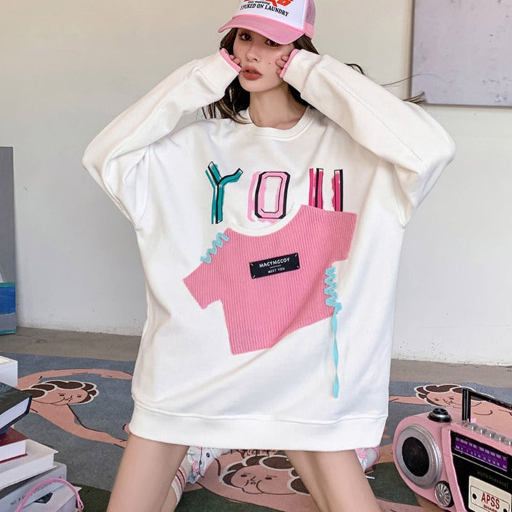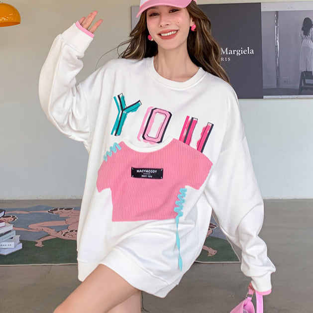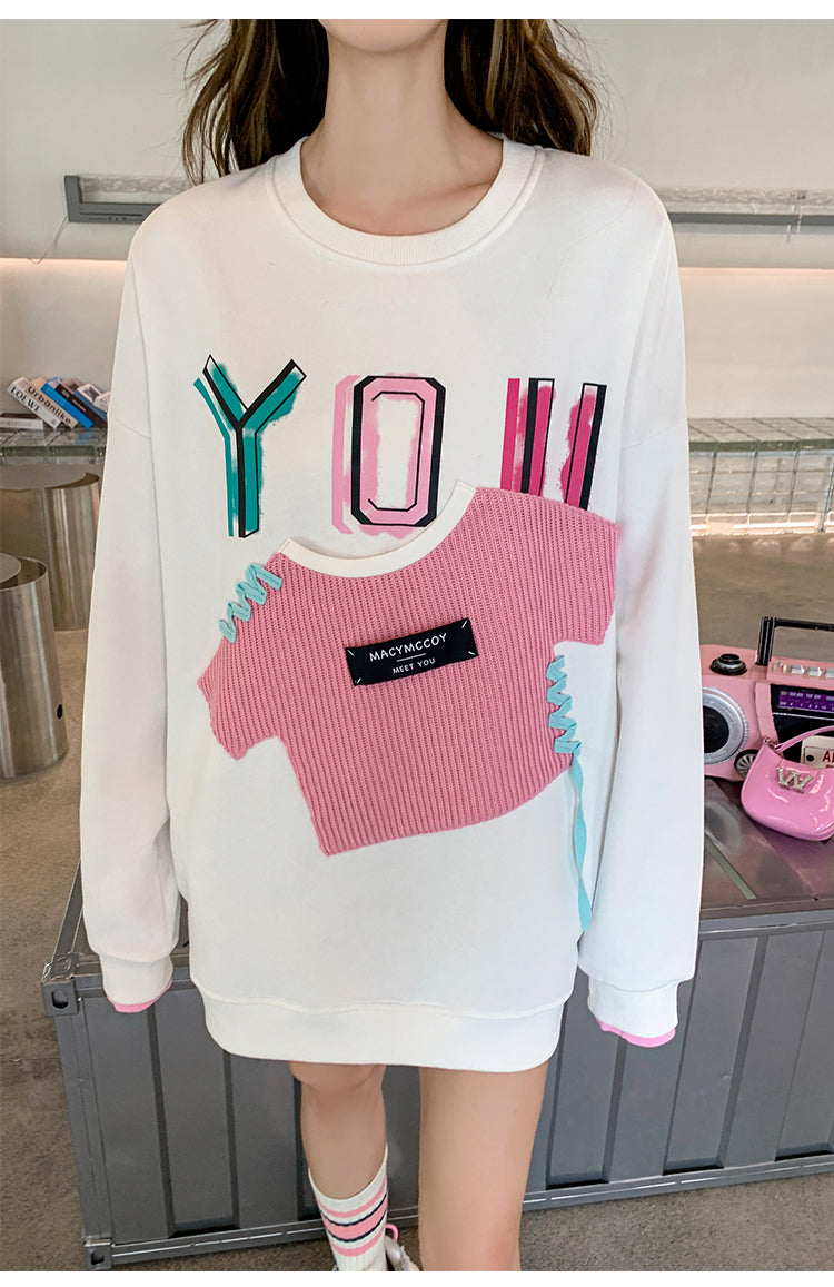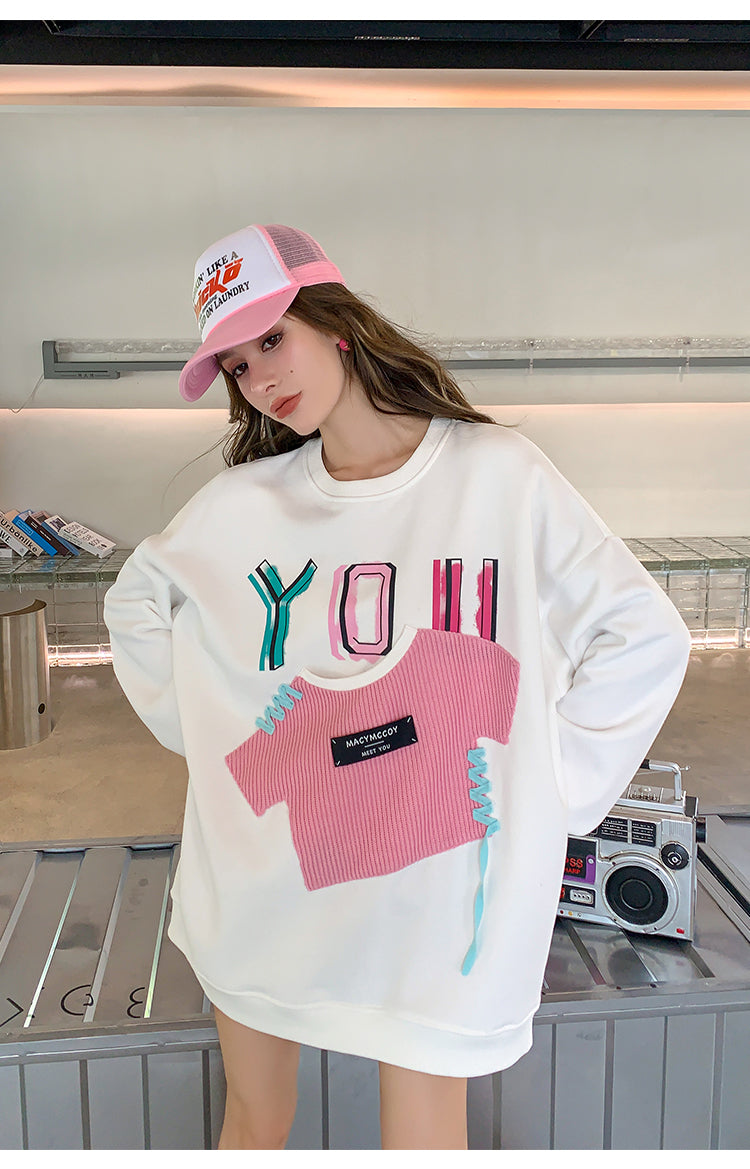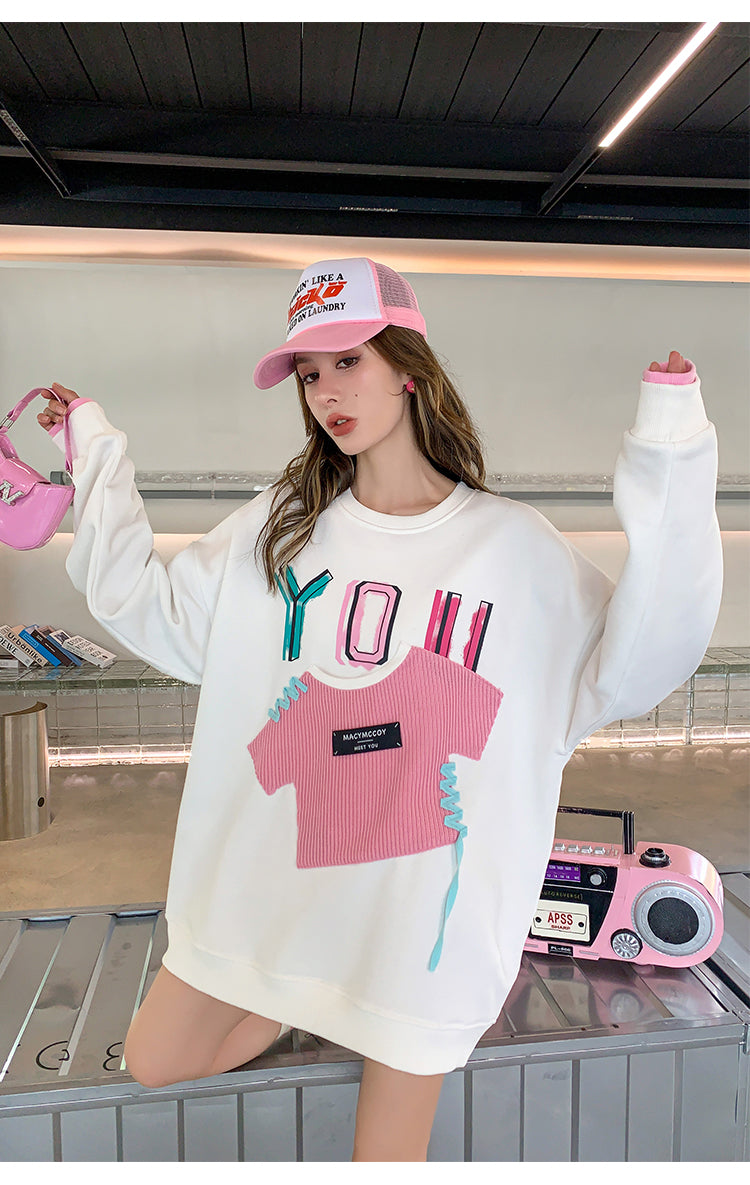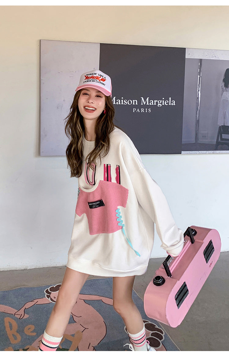 MacyMccoy 假两件贴布口袋卫衣 白