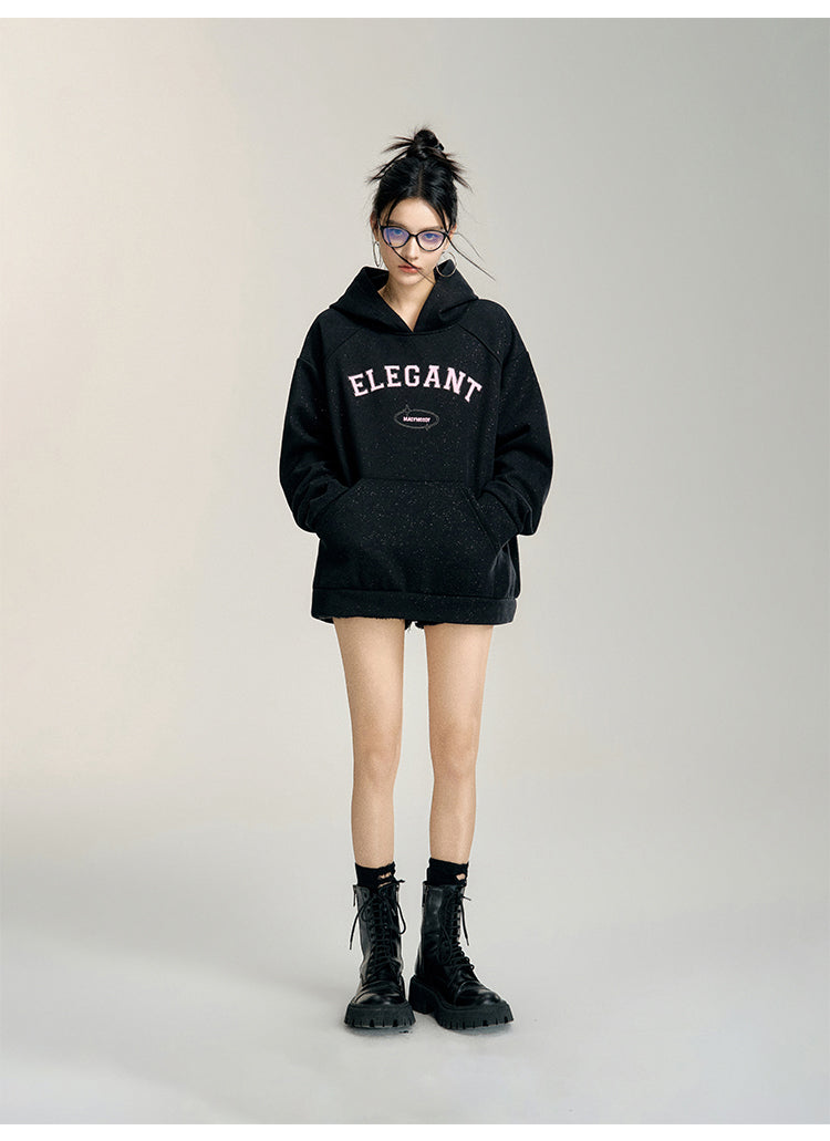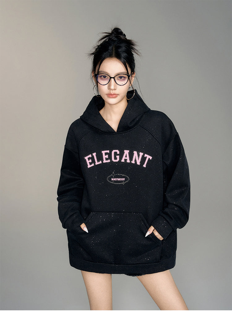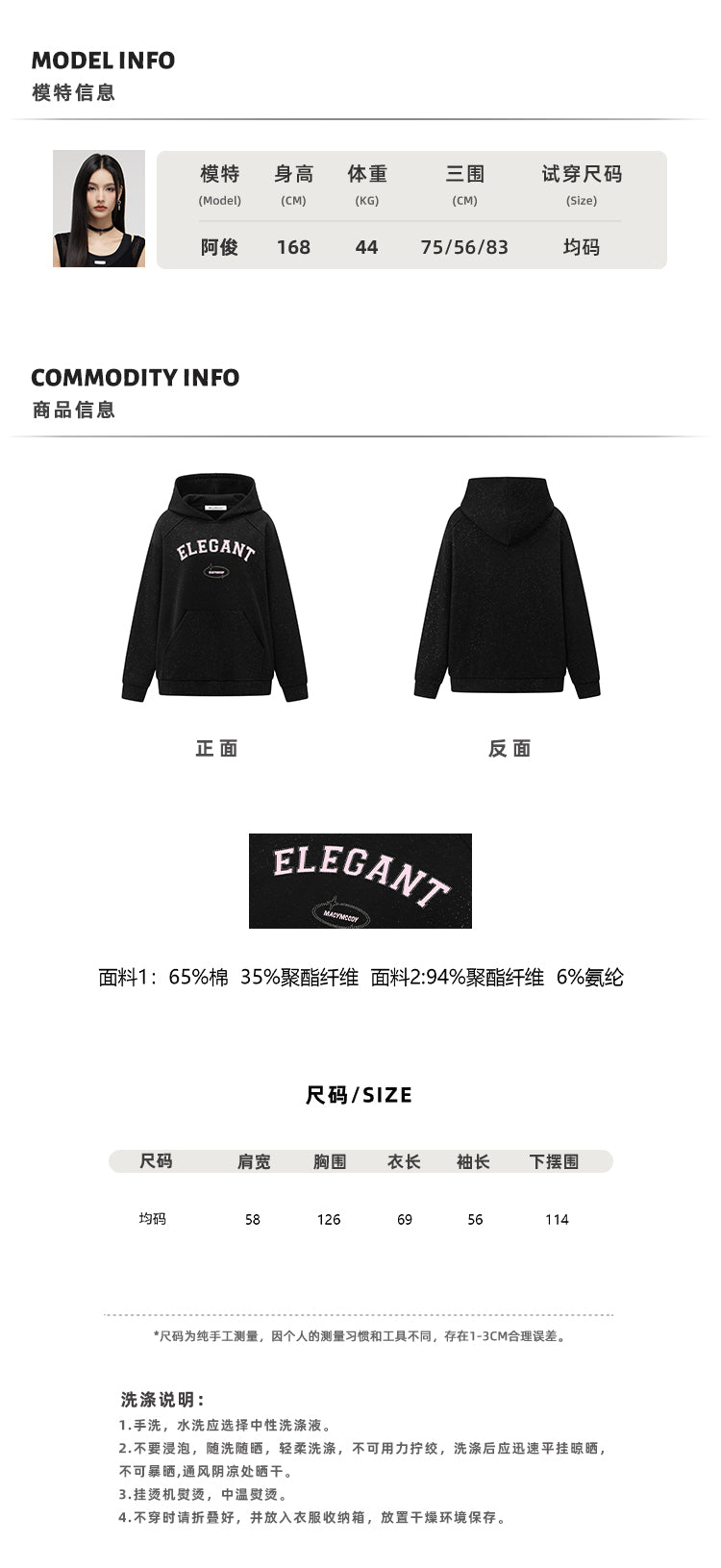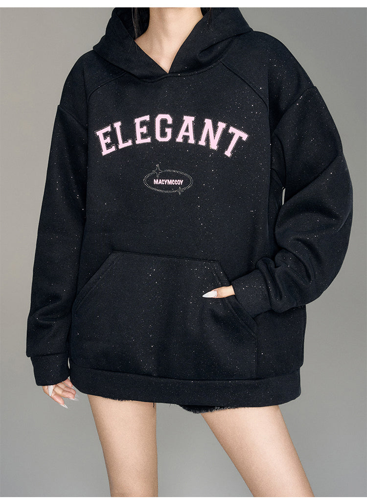 MacyMccoy 2410 亮片烫钻加绒卫衣 黑