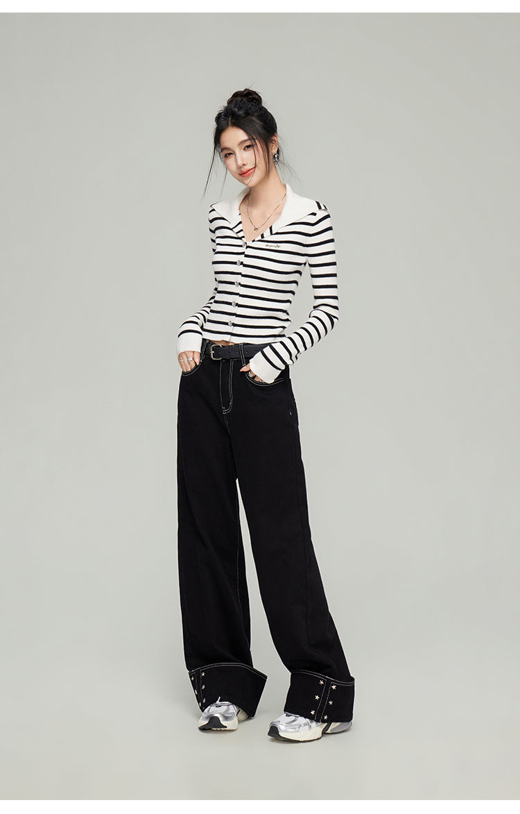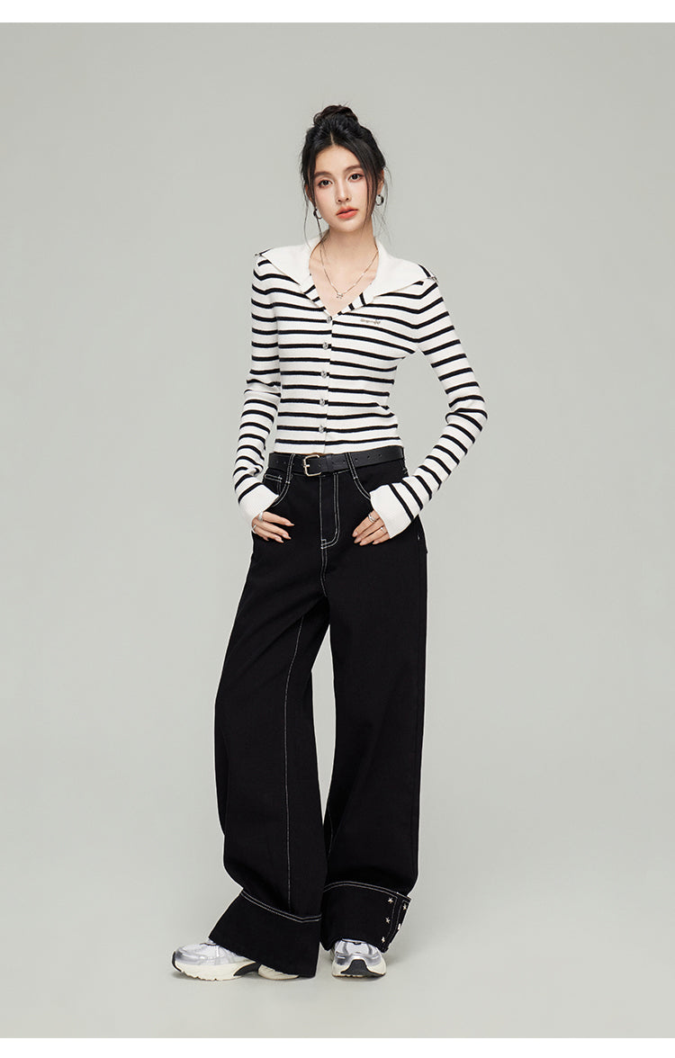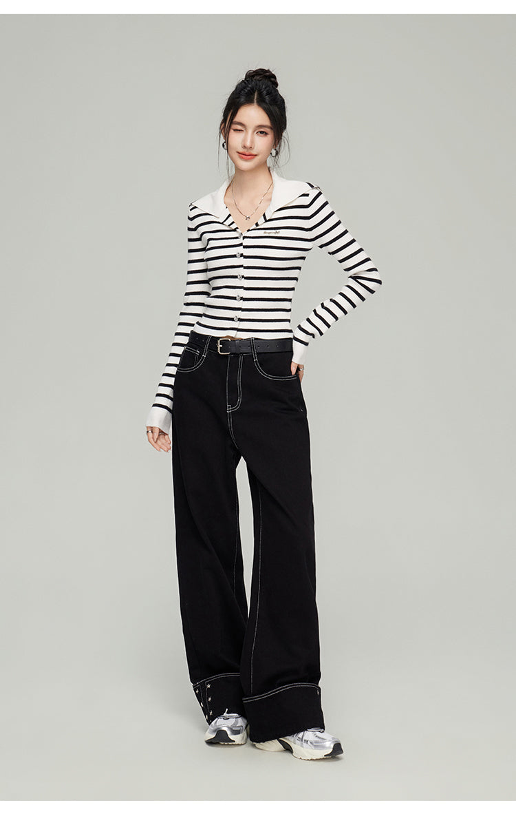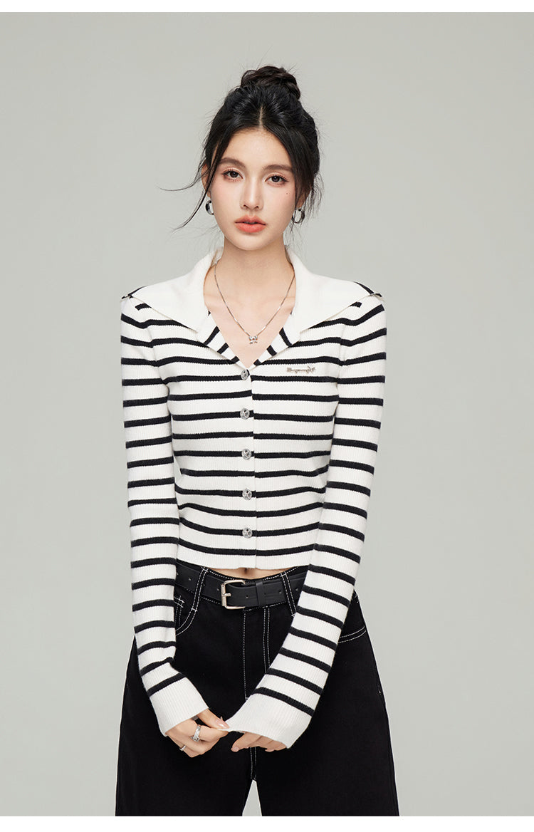 MacyMccoy 2502 大翻领针织开衫 条纹