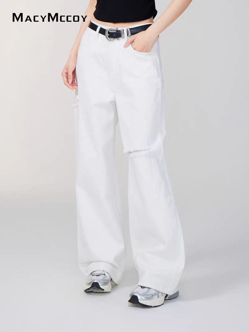 MacyMccoy 2507 刀割破洞牛仔裤 白