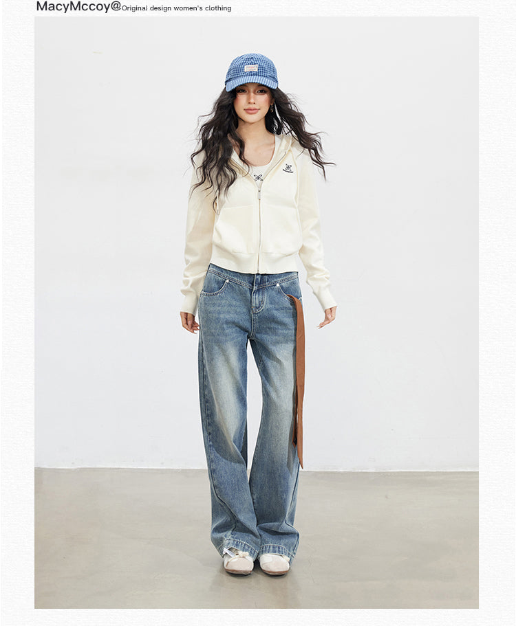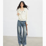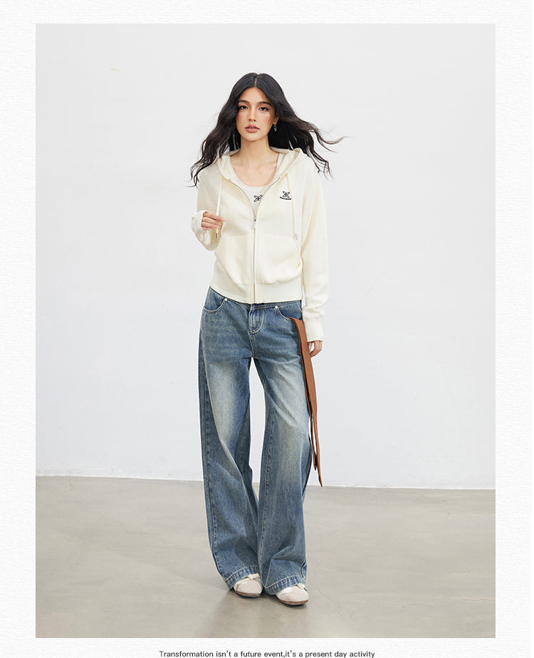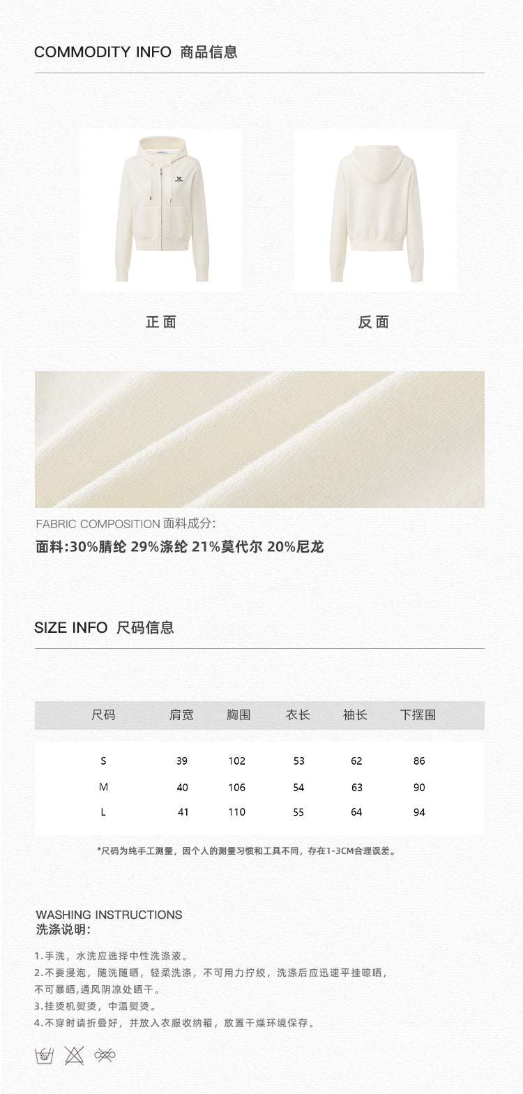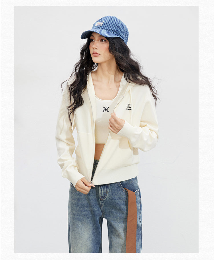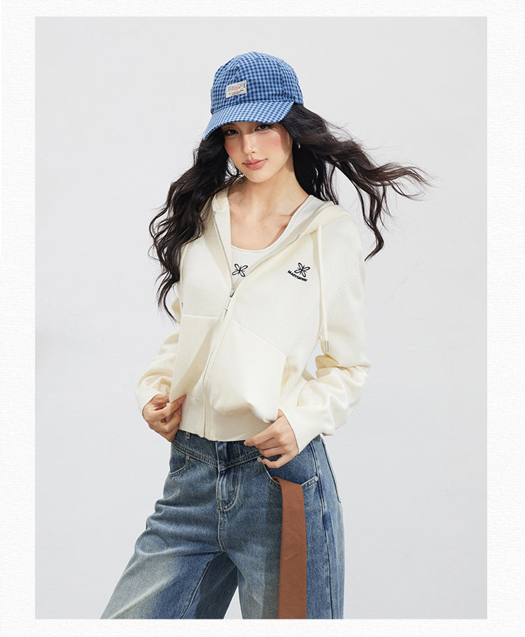 MacyMccoy 2510 连帽刺绣针织开衫 米白