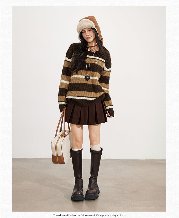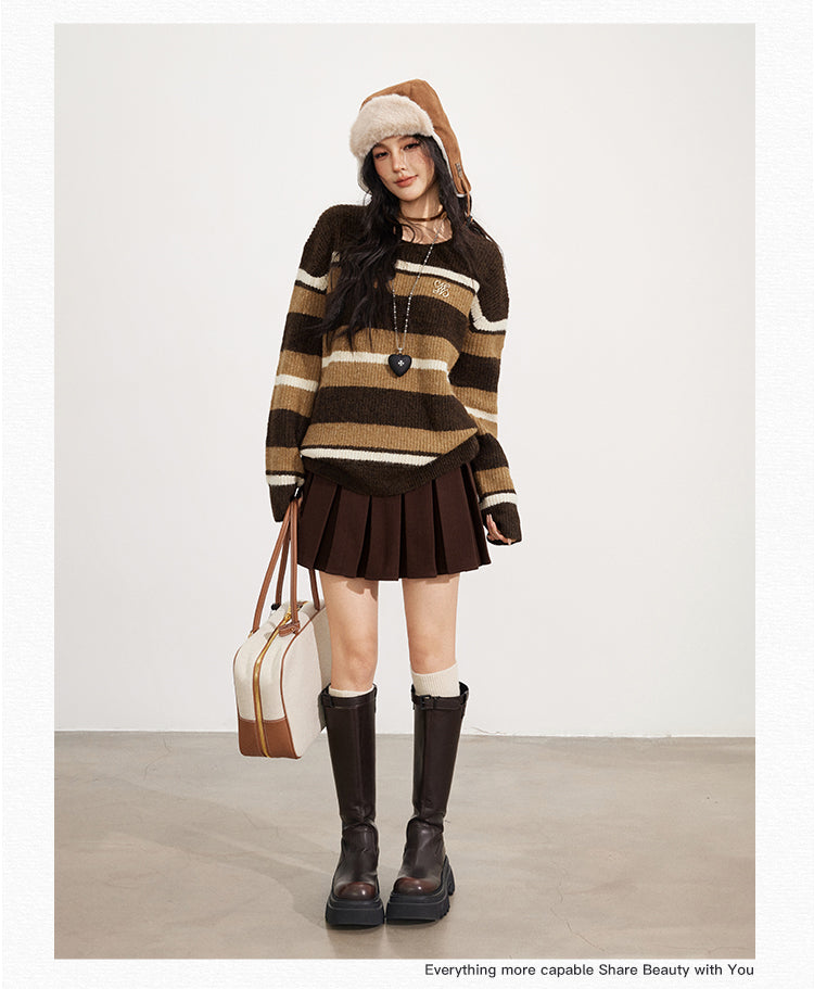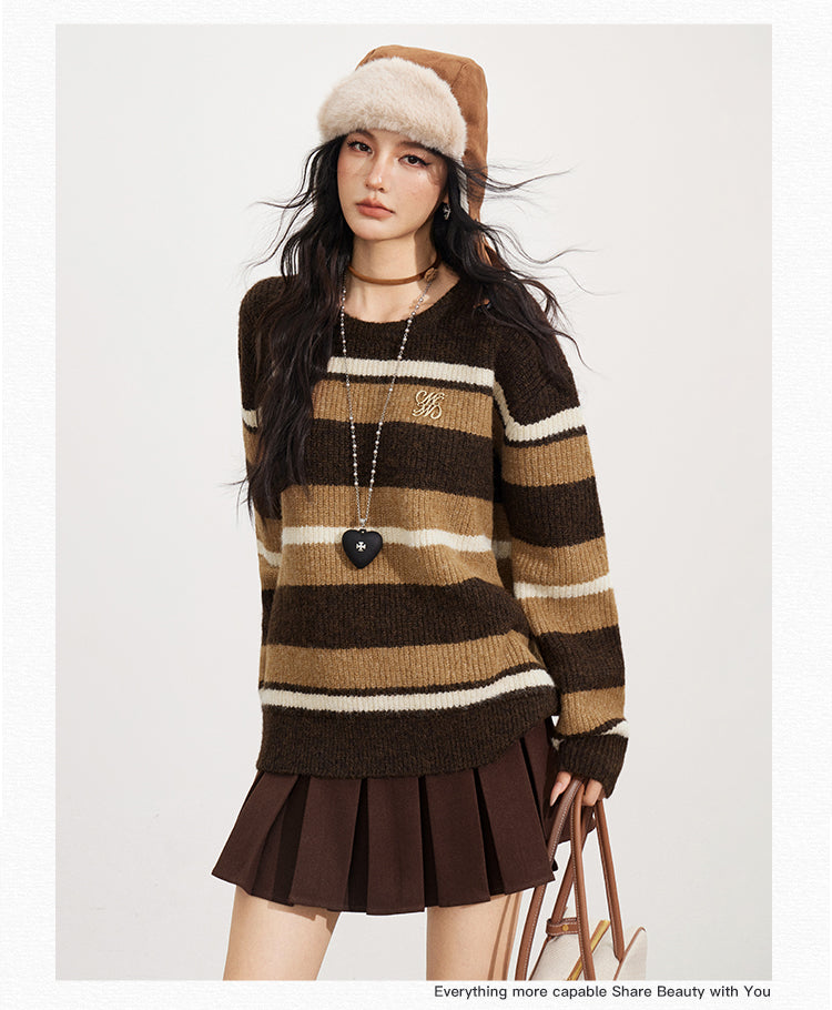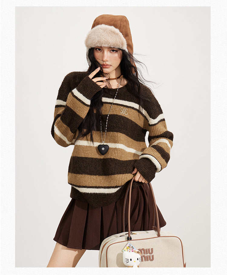 MacyMccoy 2511 复古条纹宽松毛衣