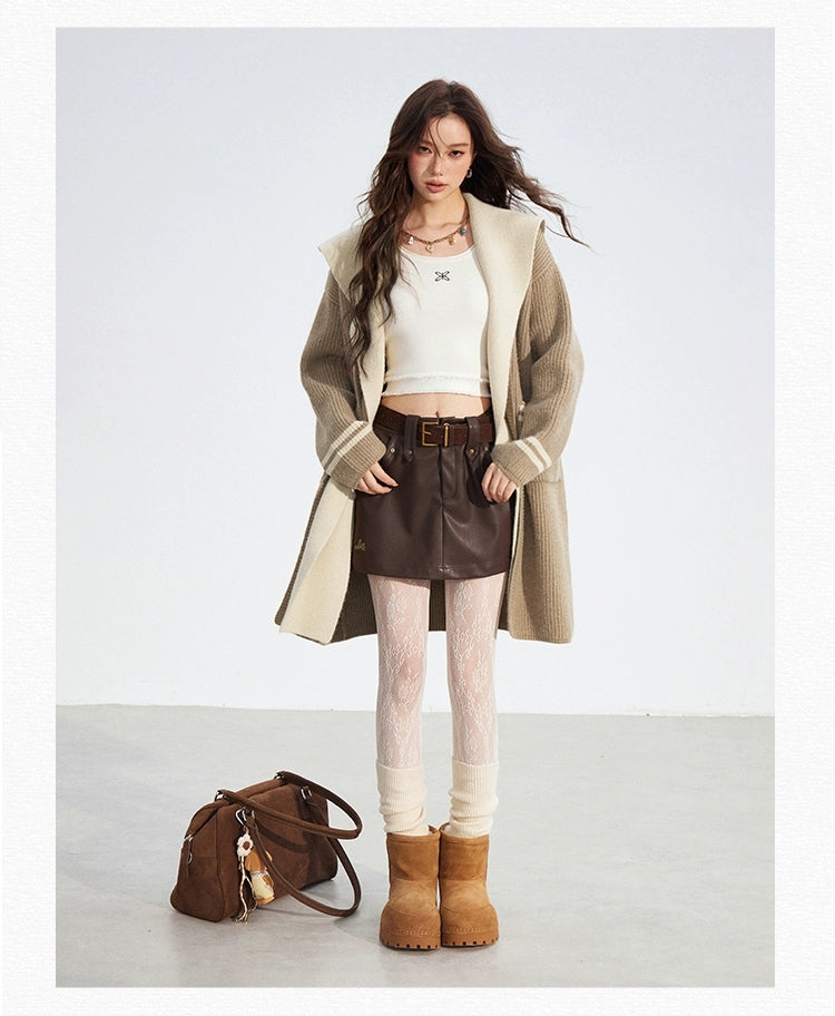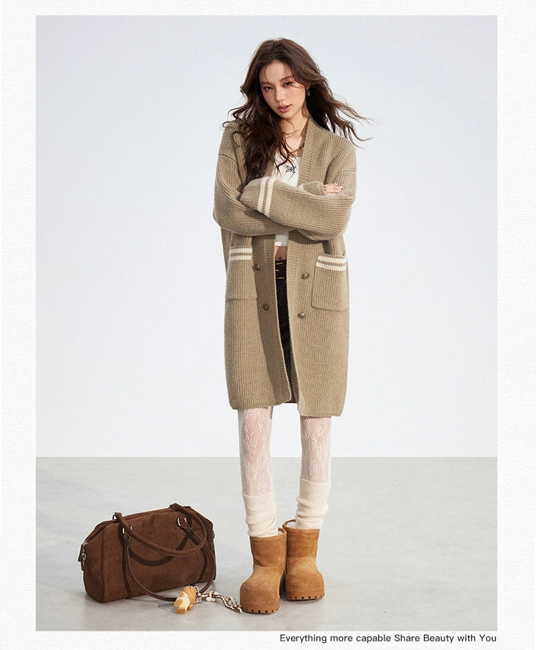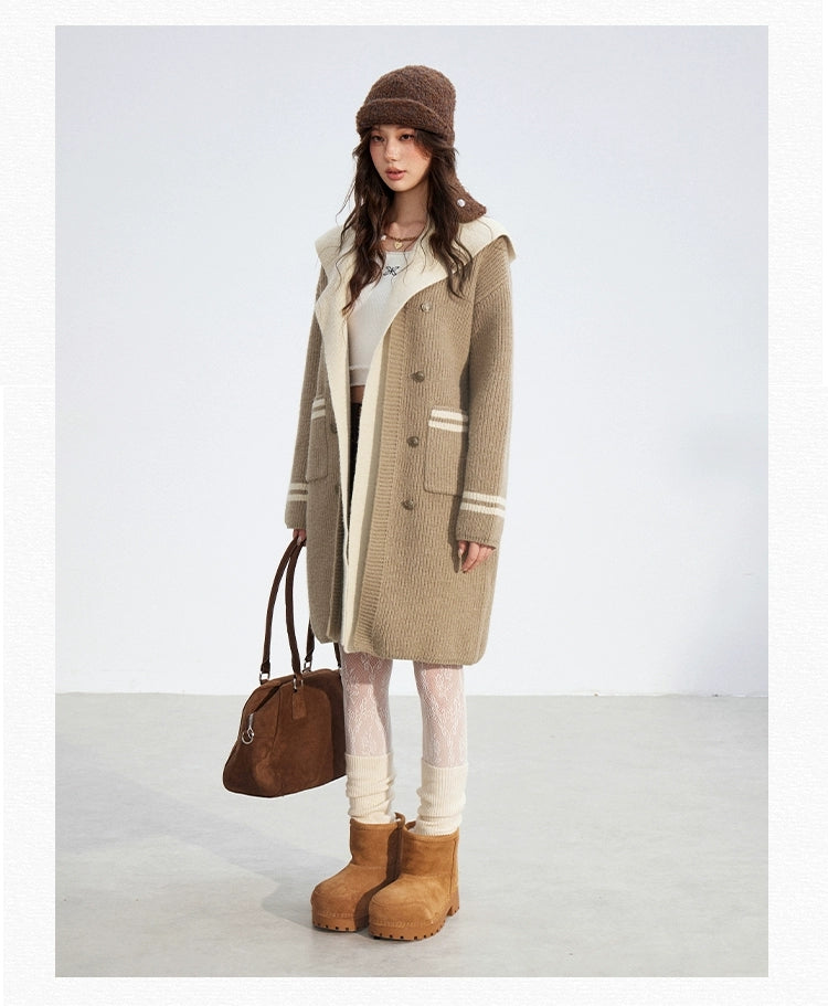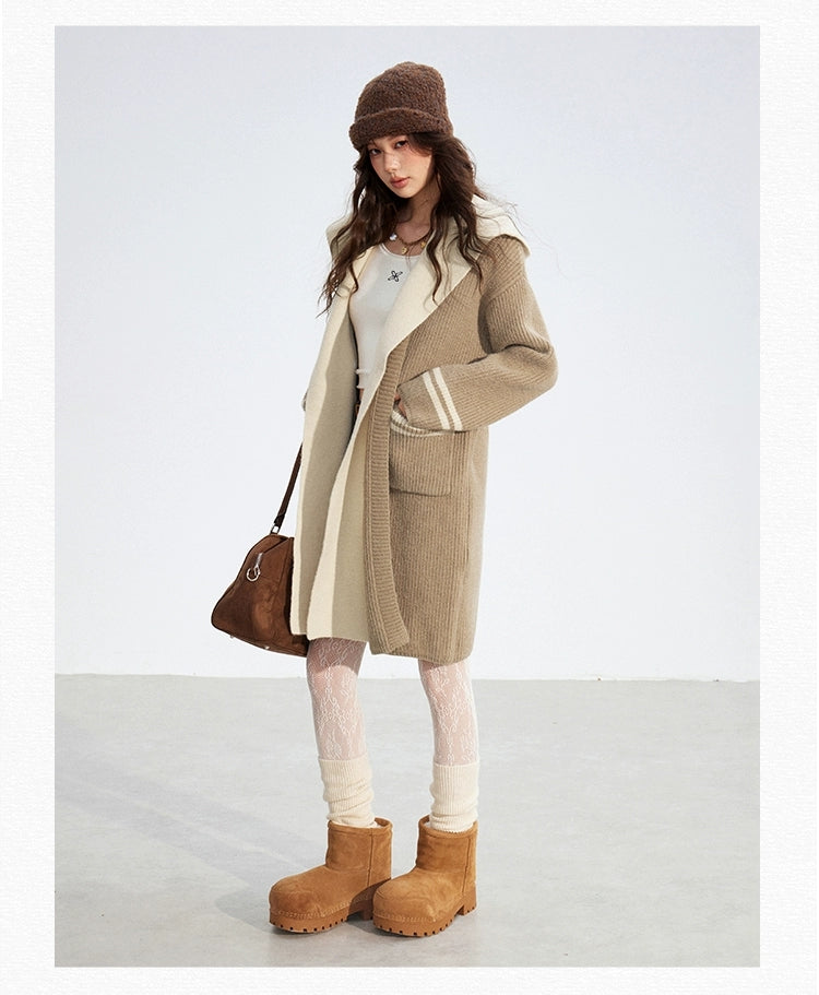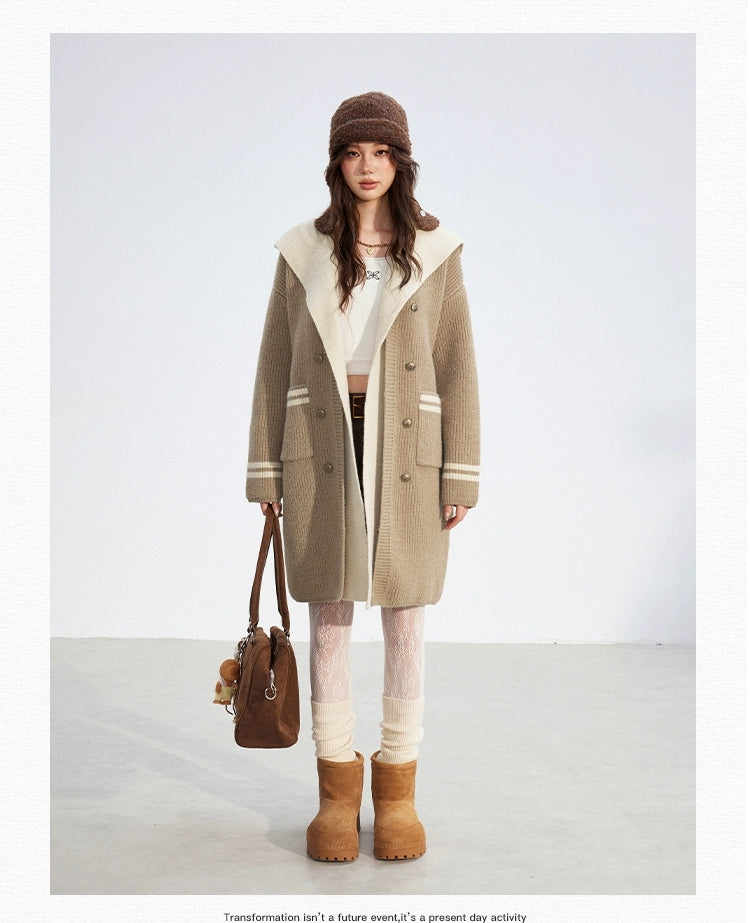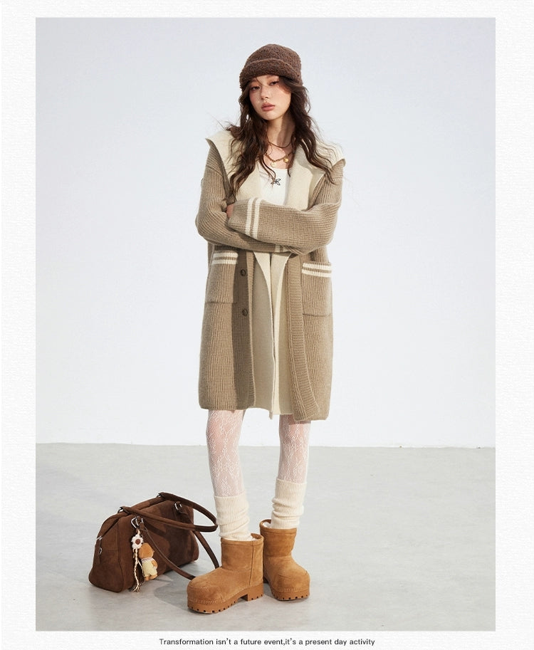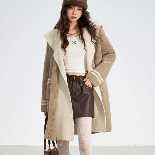 MacyMccoy 2512 连帽长款毛衣外套 卡其