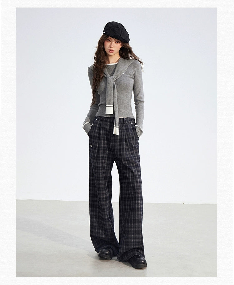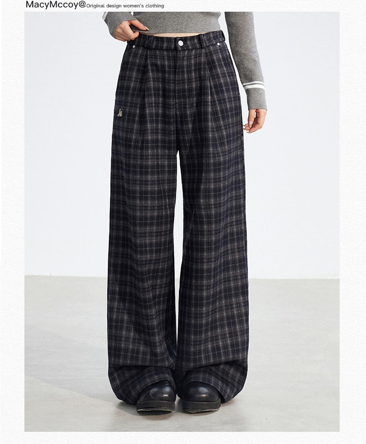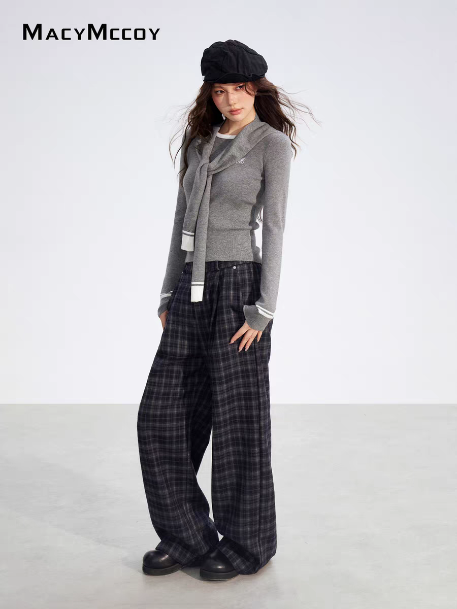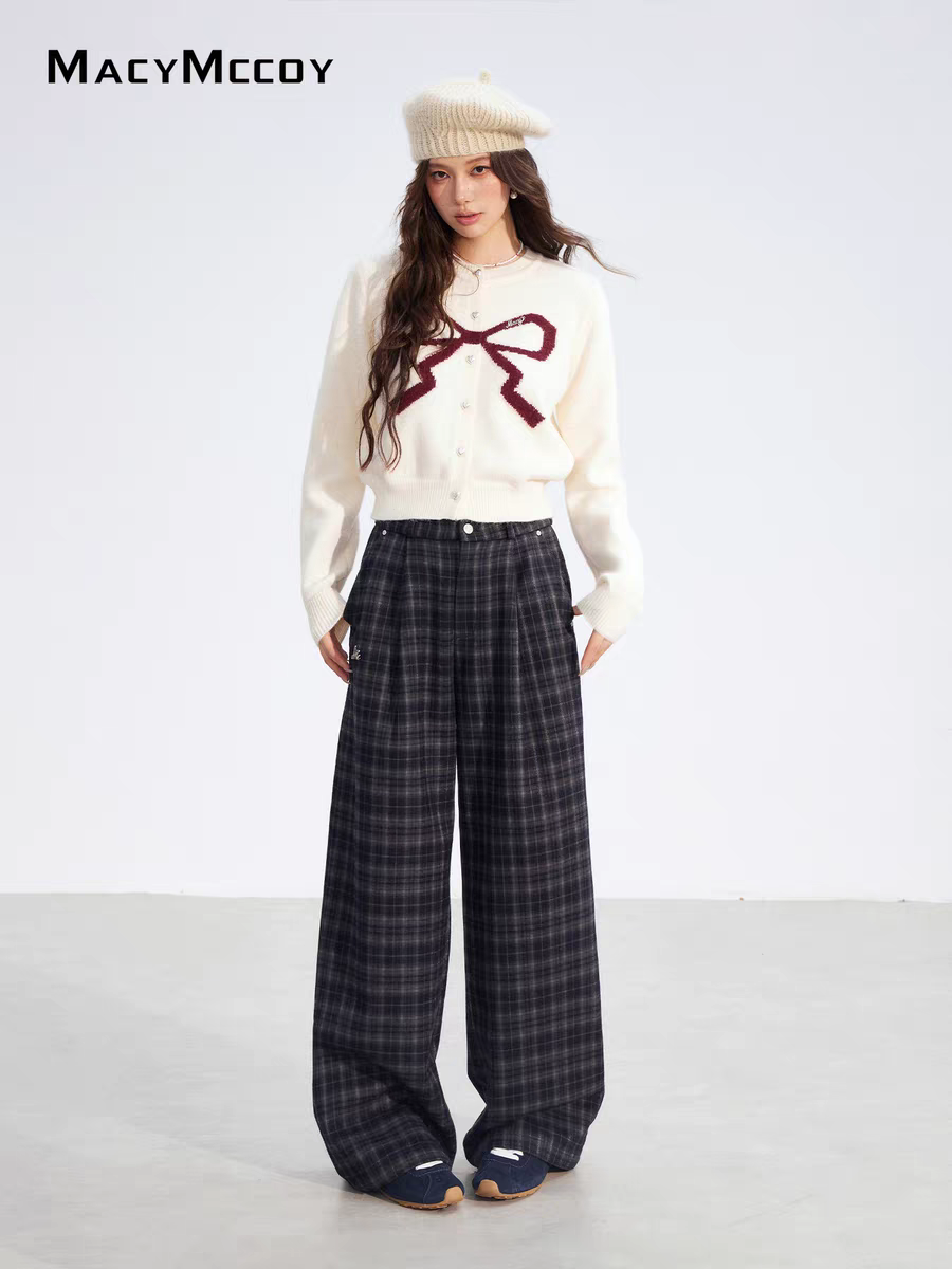 MacyMccoy 2512 加绒格子阔腿裤