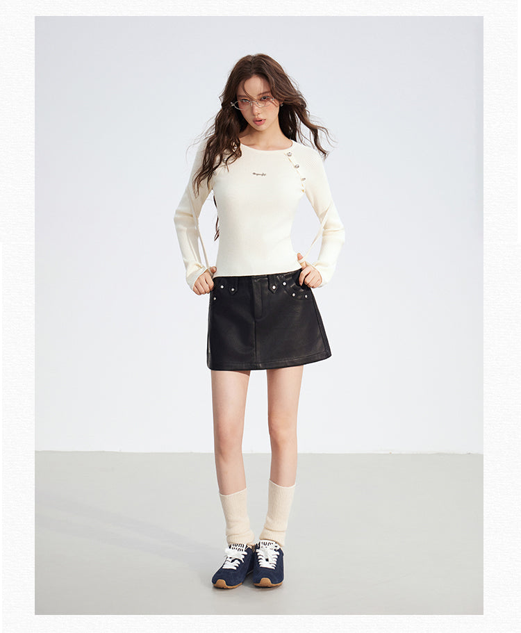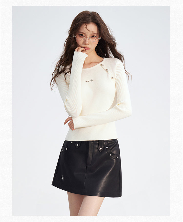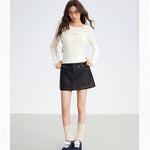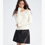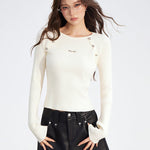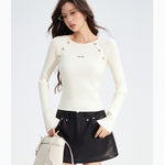 MacyMccoy 2512 竖条纹插肩假两件拼接针织打底 白