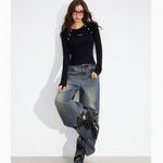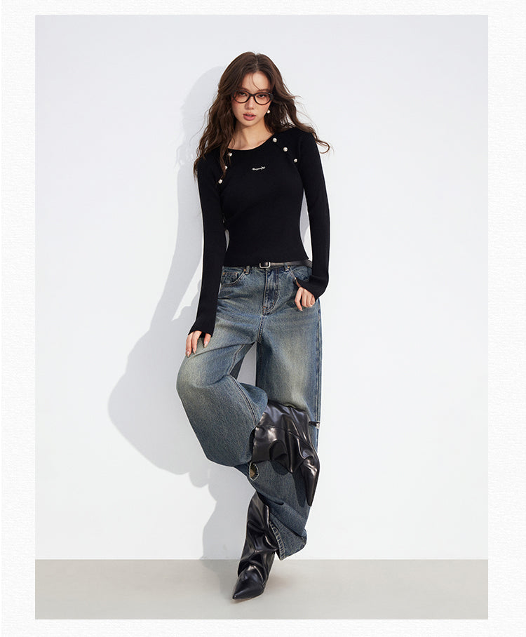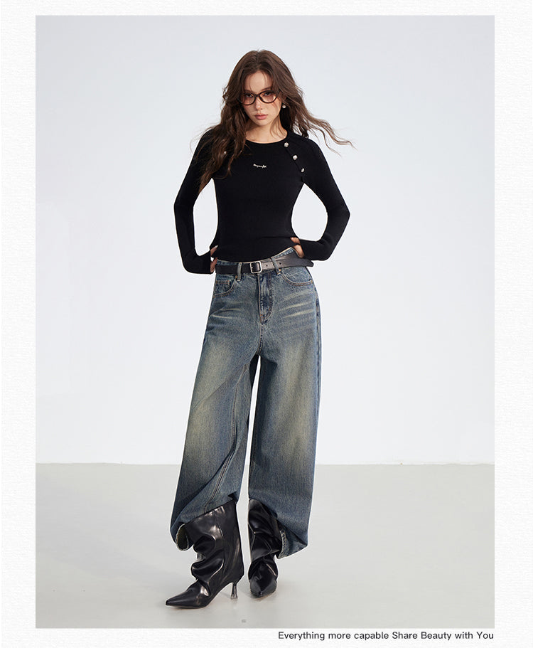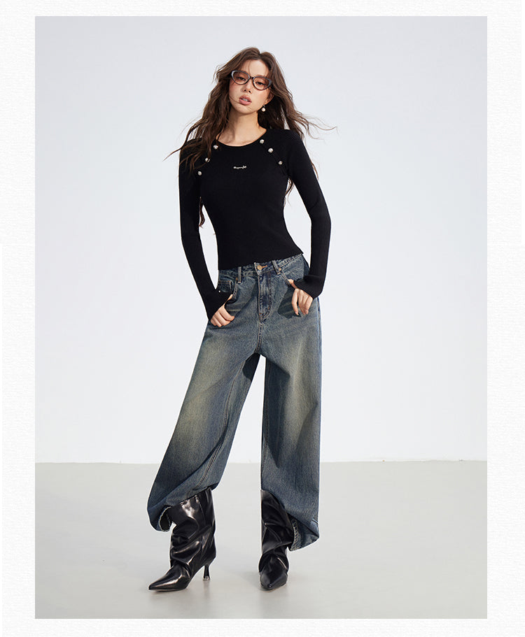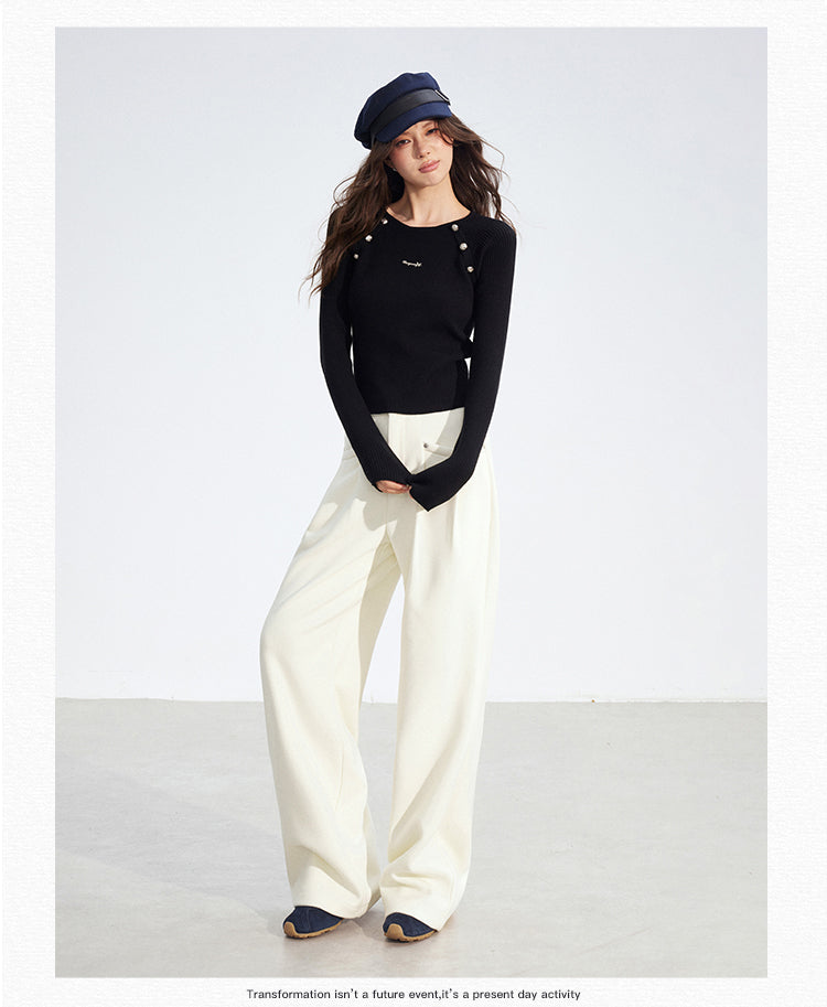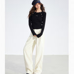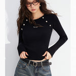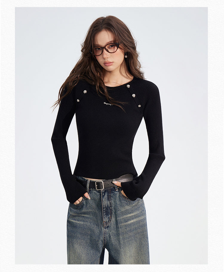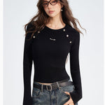 MacyMccoy 2512 竖条纹插肩假两件拼接针织打底 黑