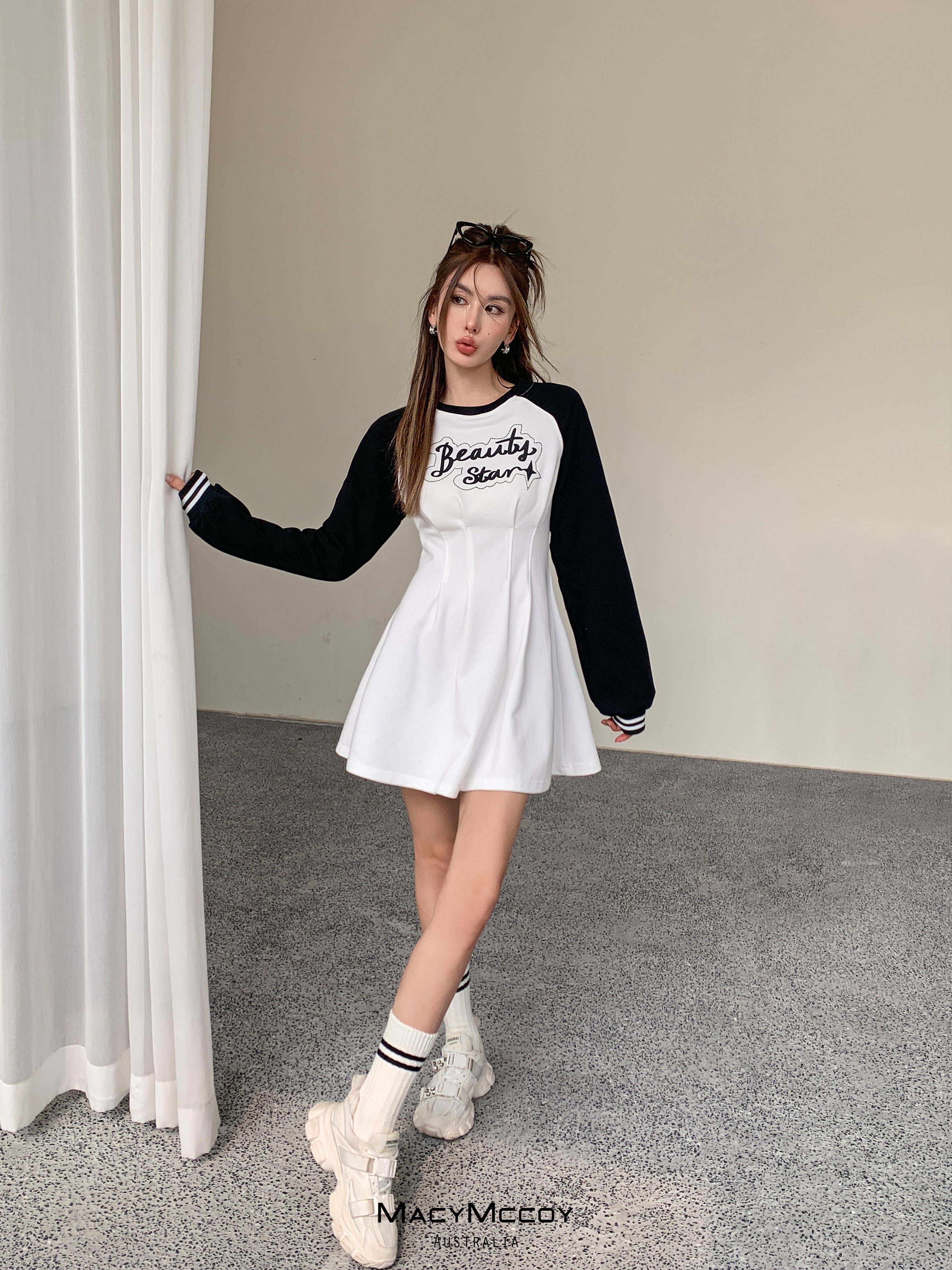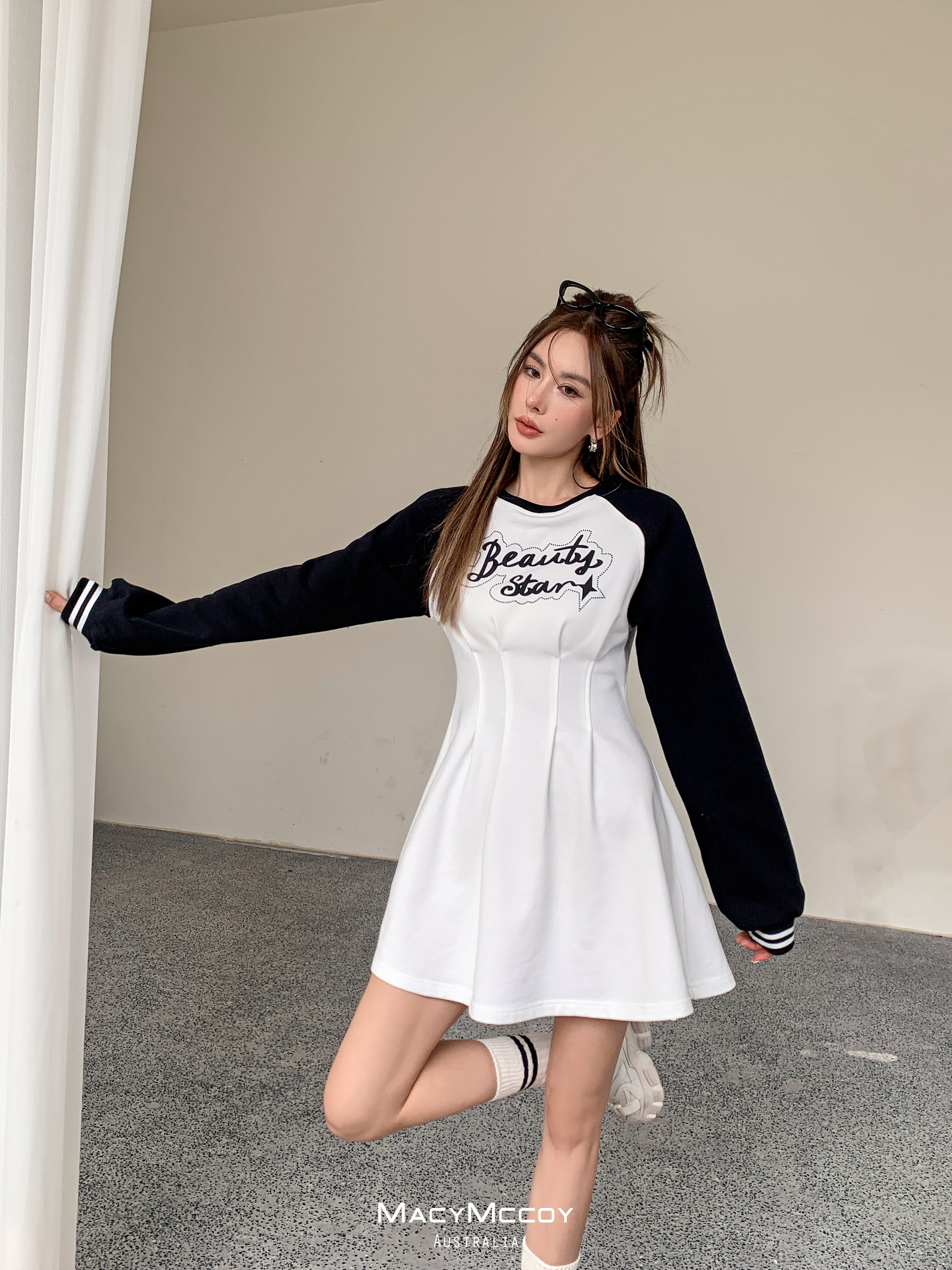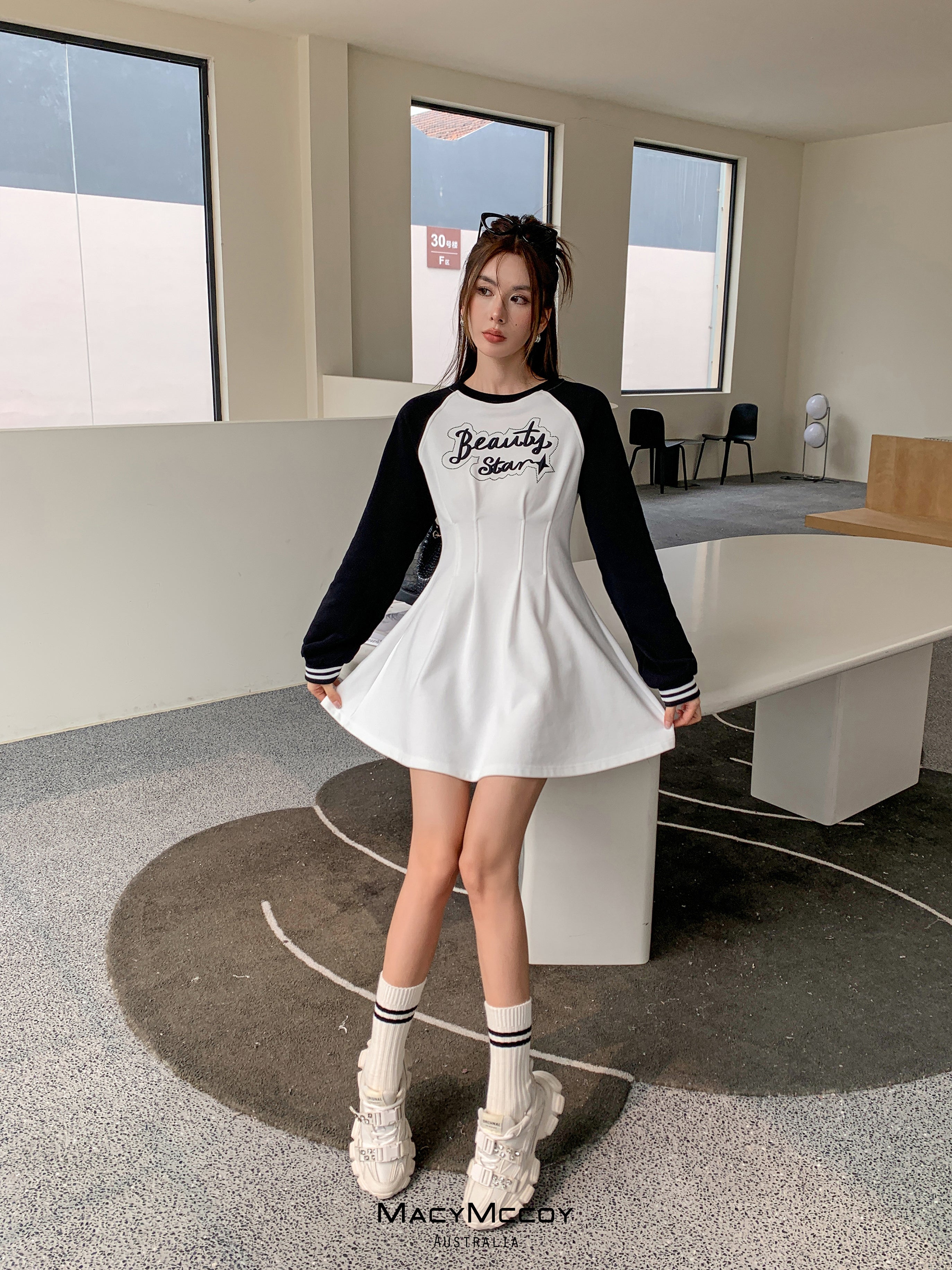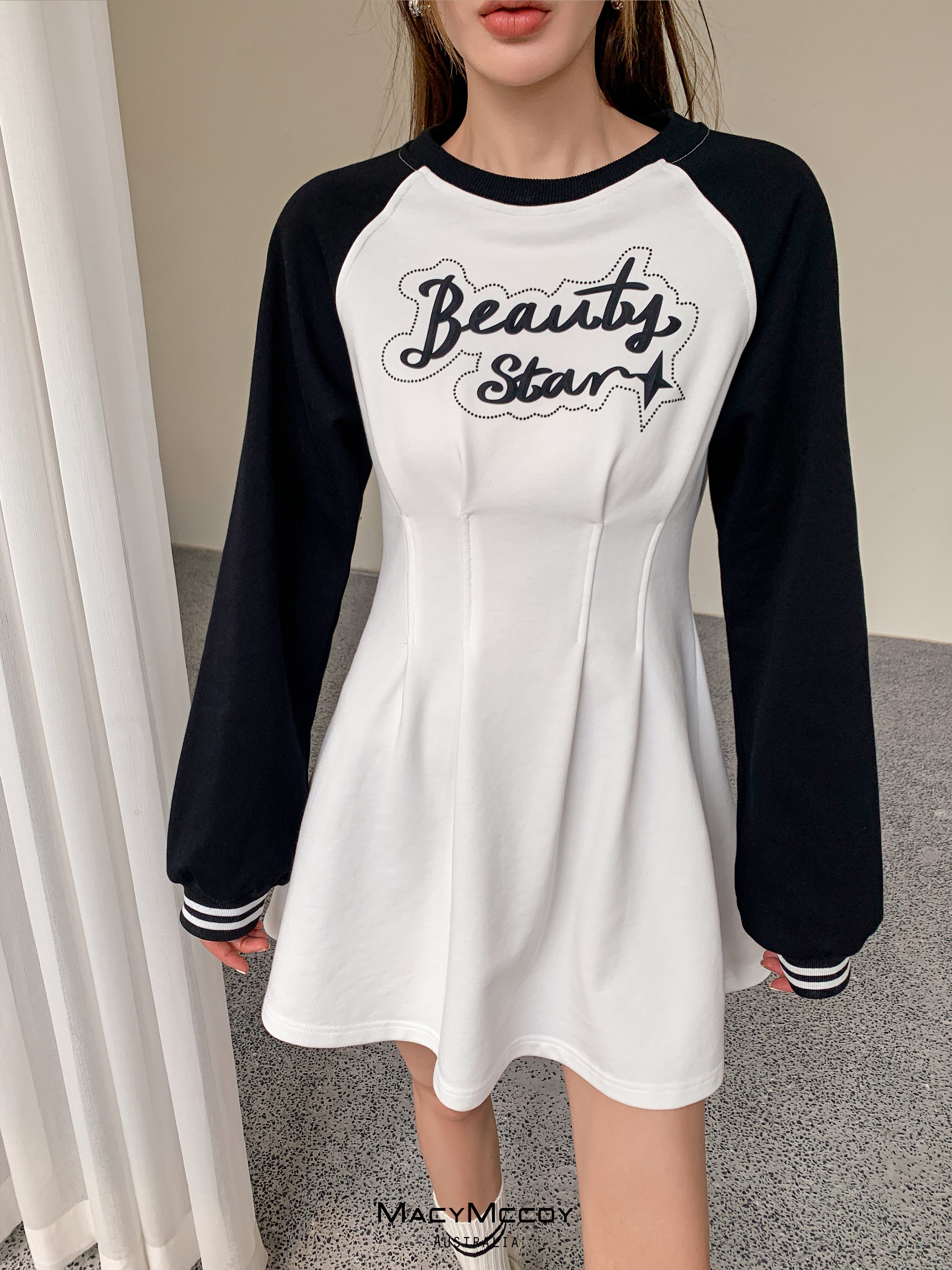 MacyMccoy SS2303 撞色露腰卫衣裙