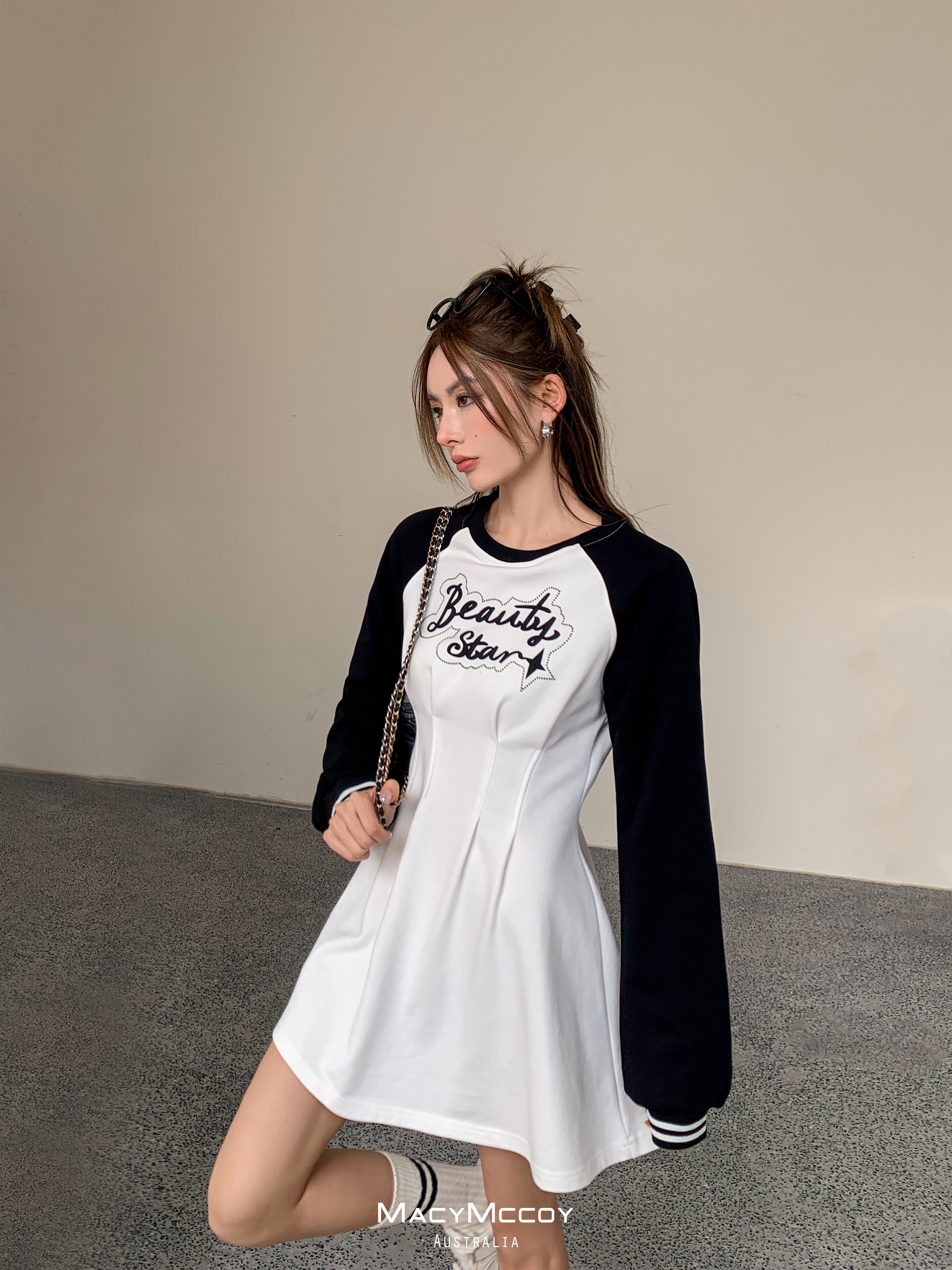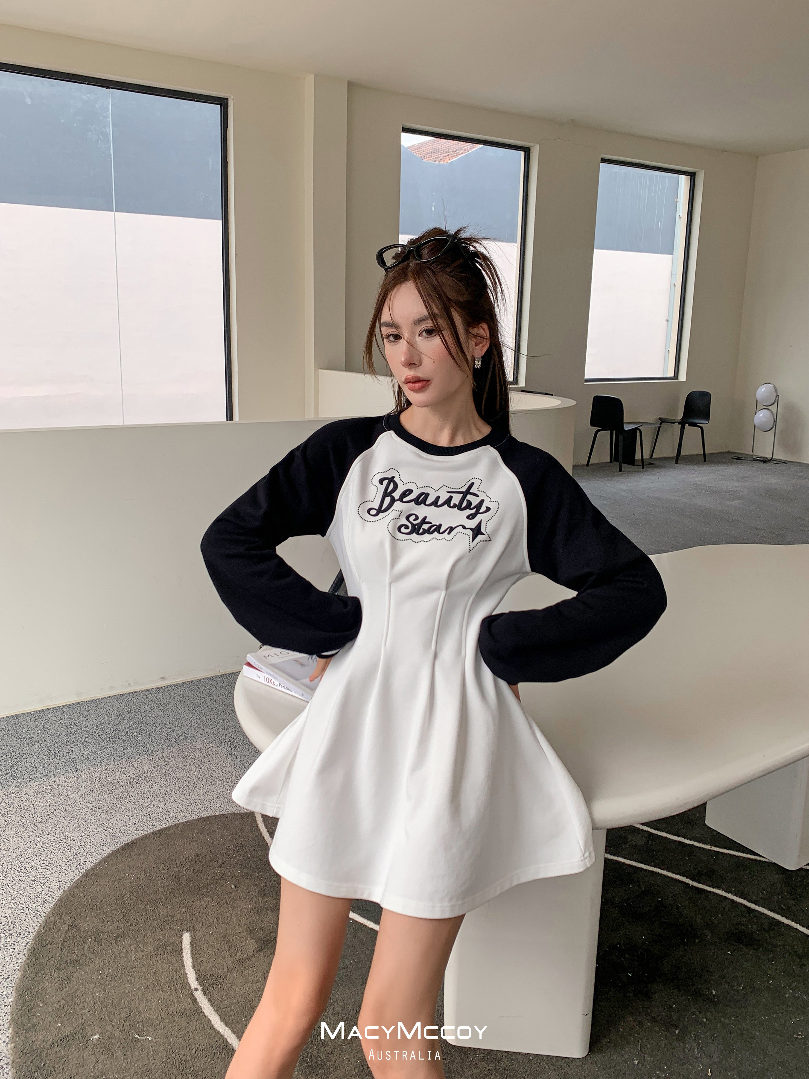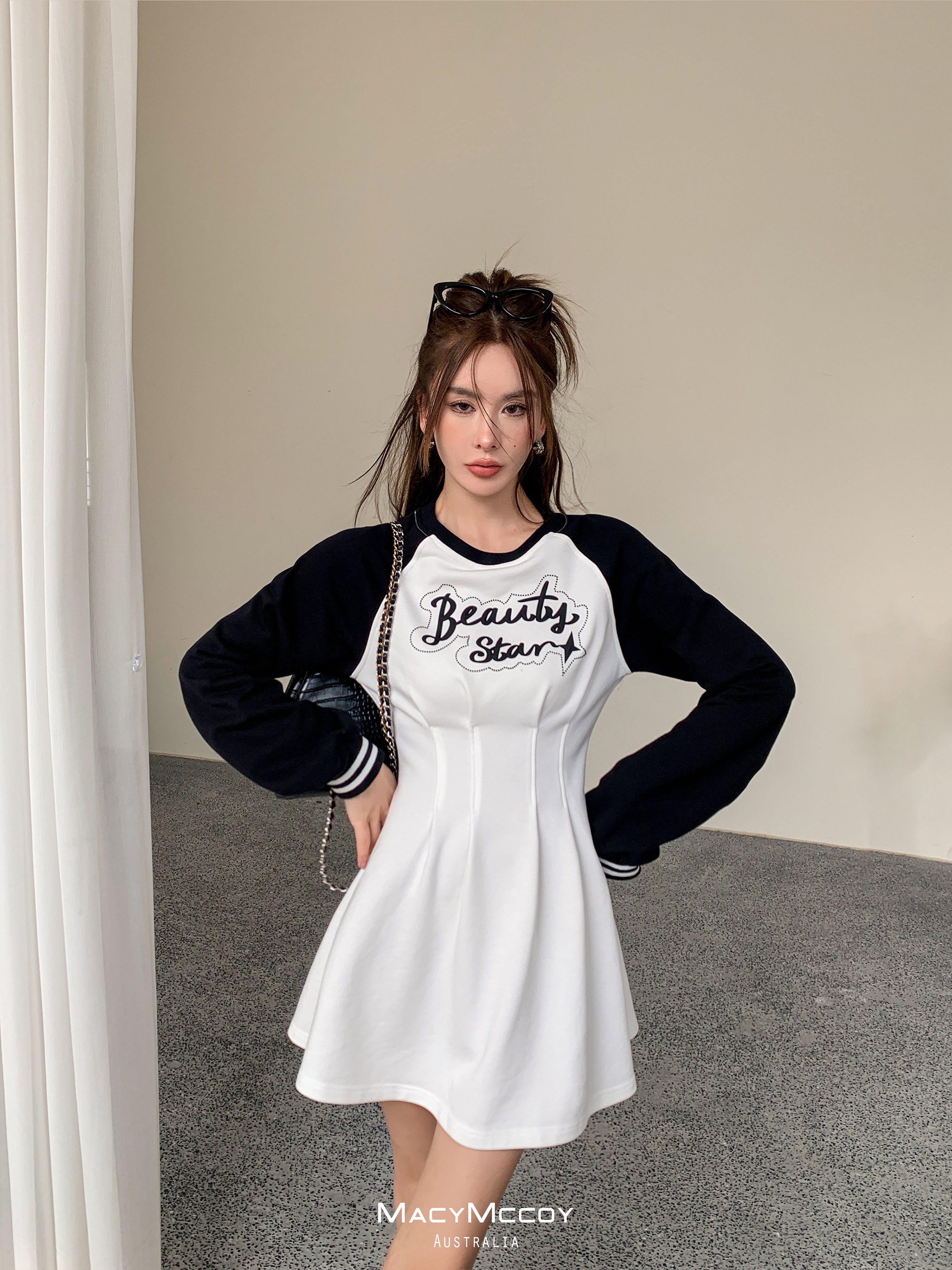 MacyMccoy SS2303 撞色露腰卫衣裙