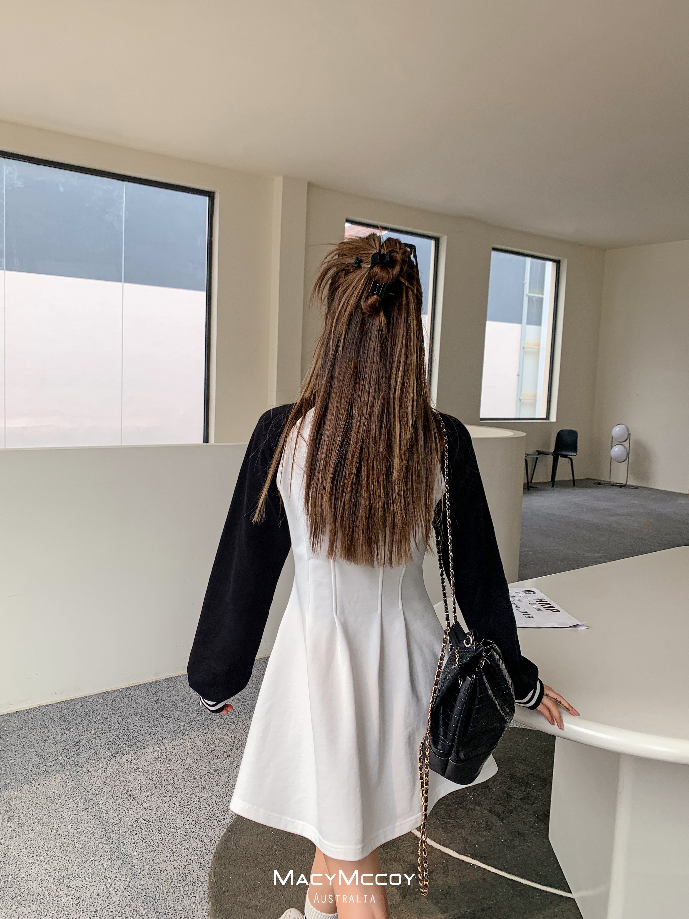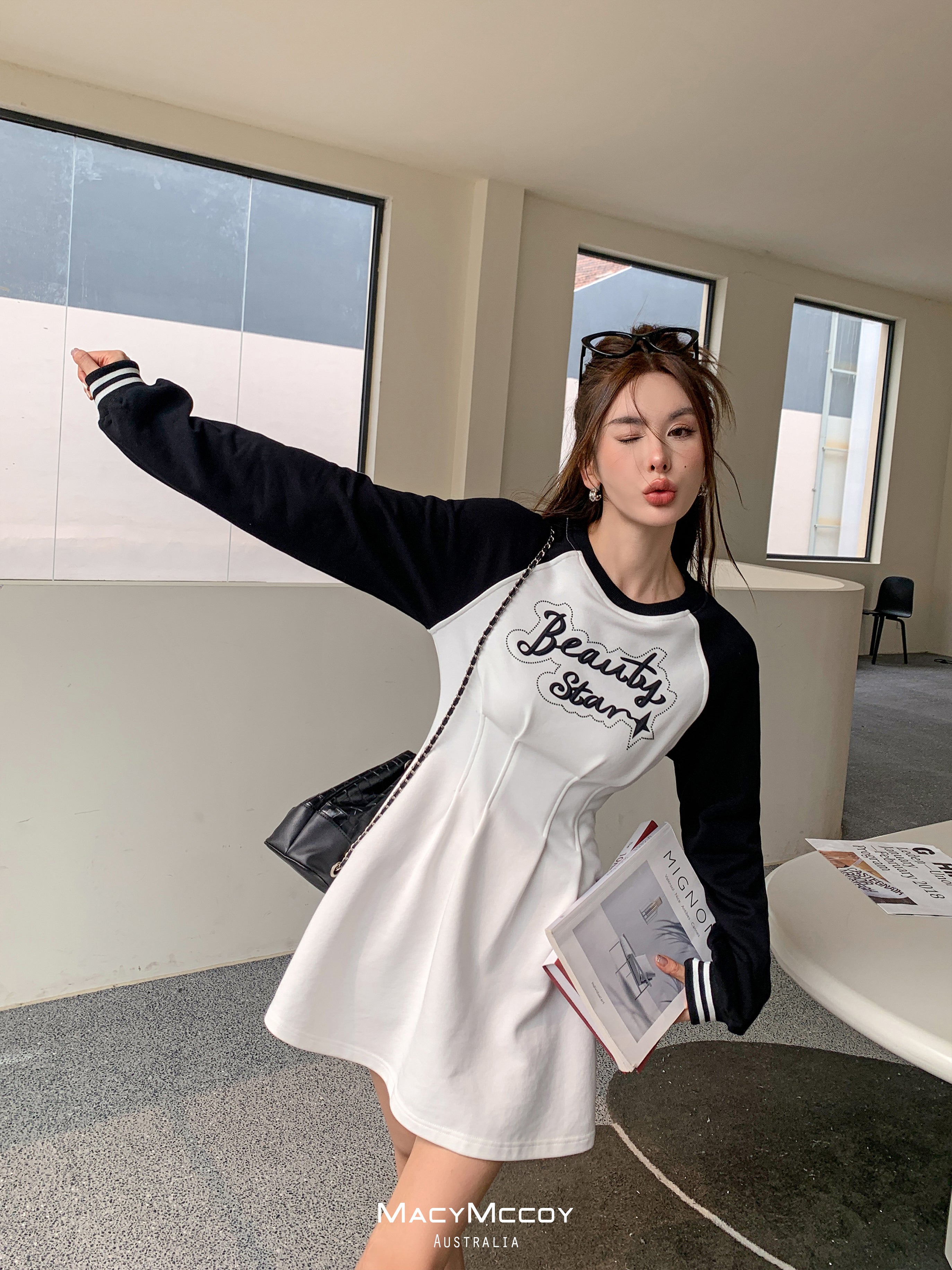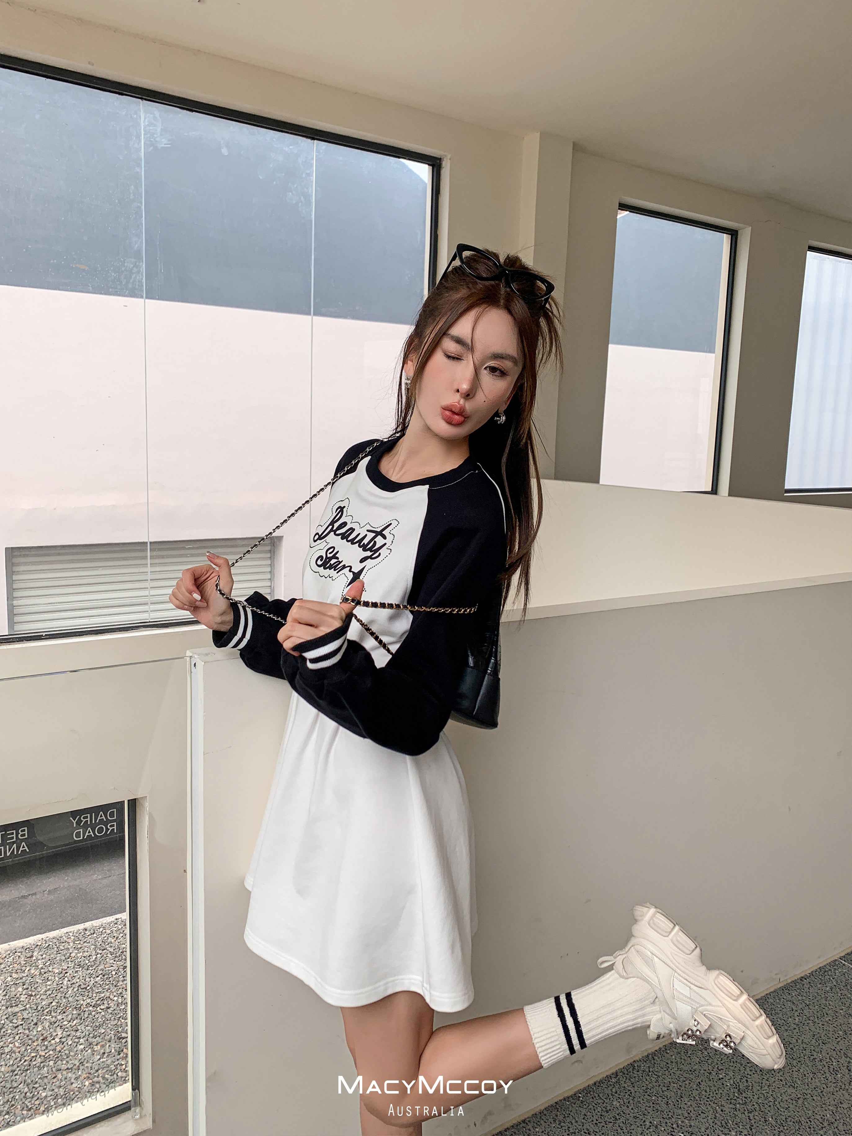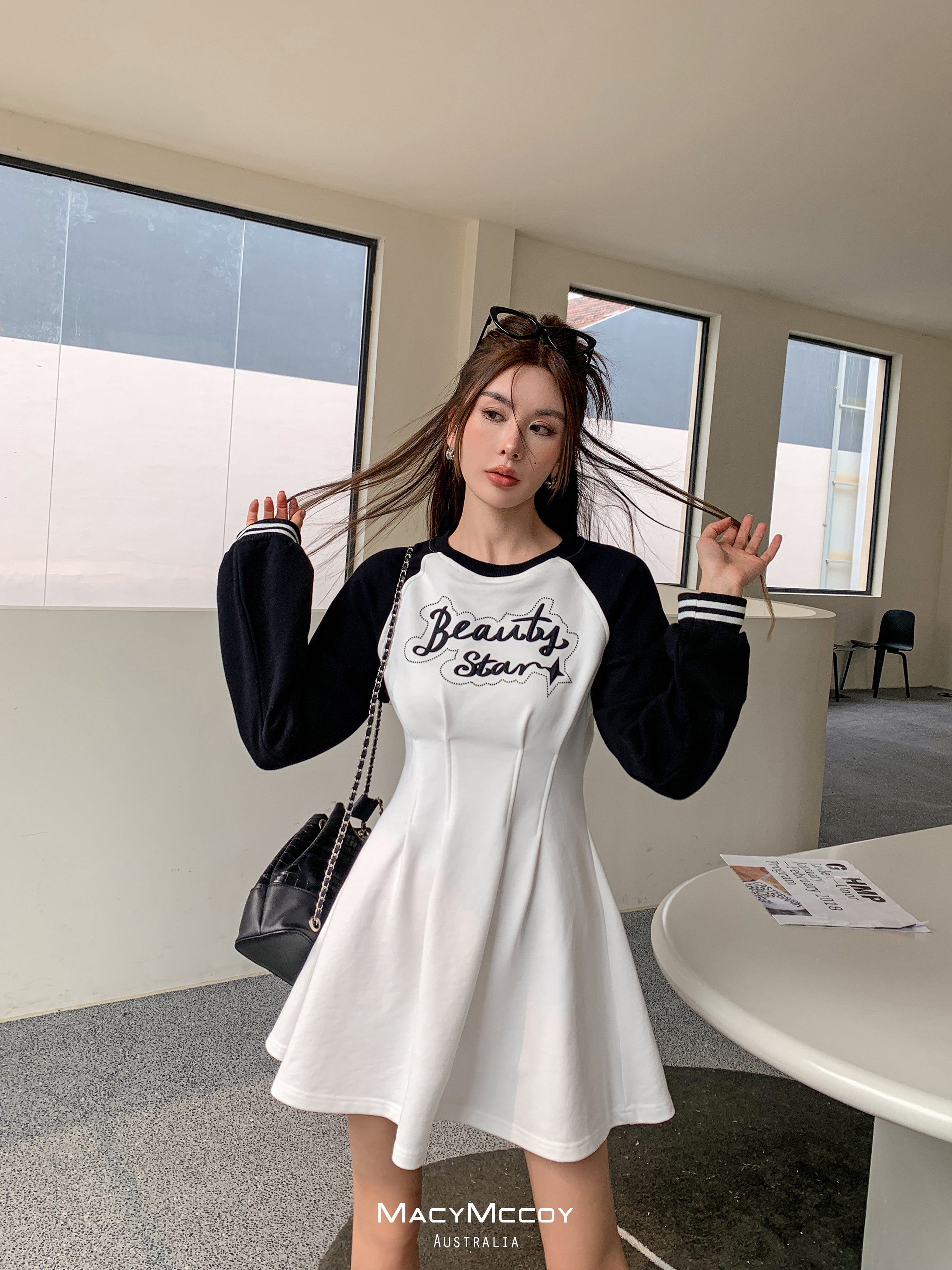 MacyMccoy SS2303 撞色露腰卫衣裙