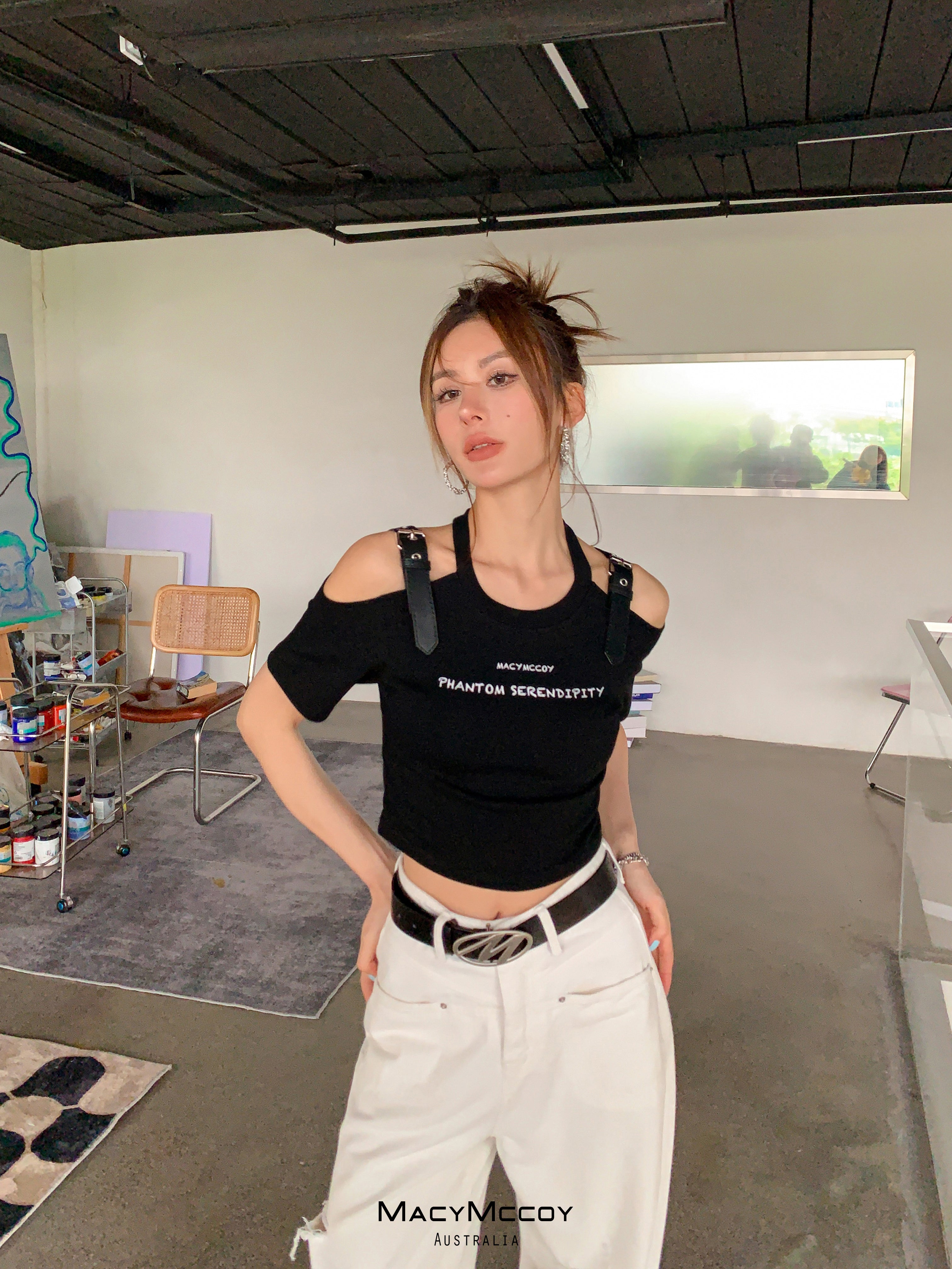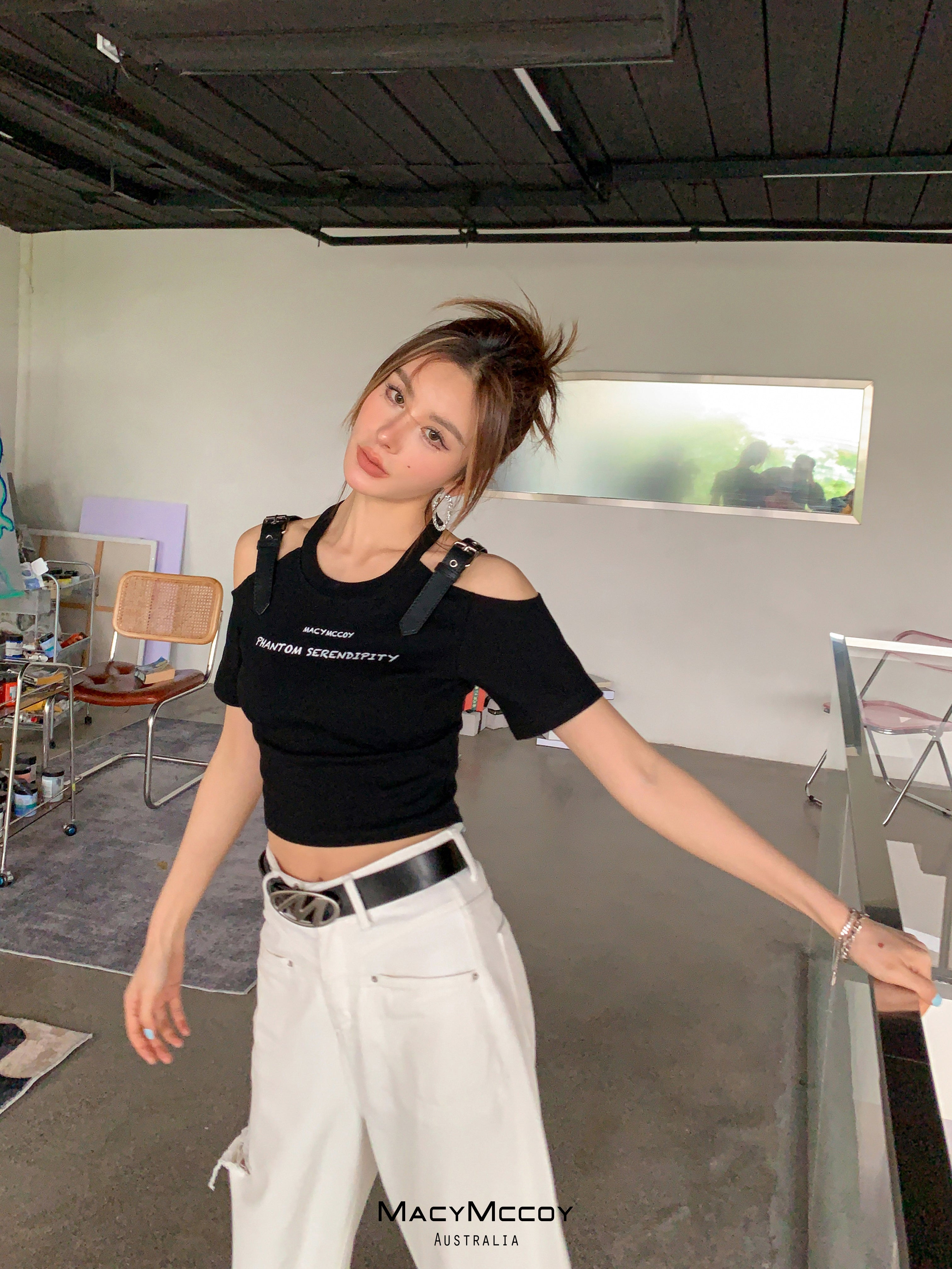 MacyMccoy SS2305 工装风露肩短袖 黑