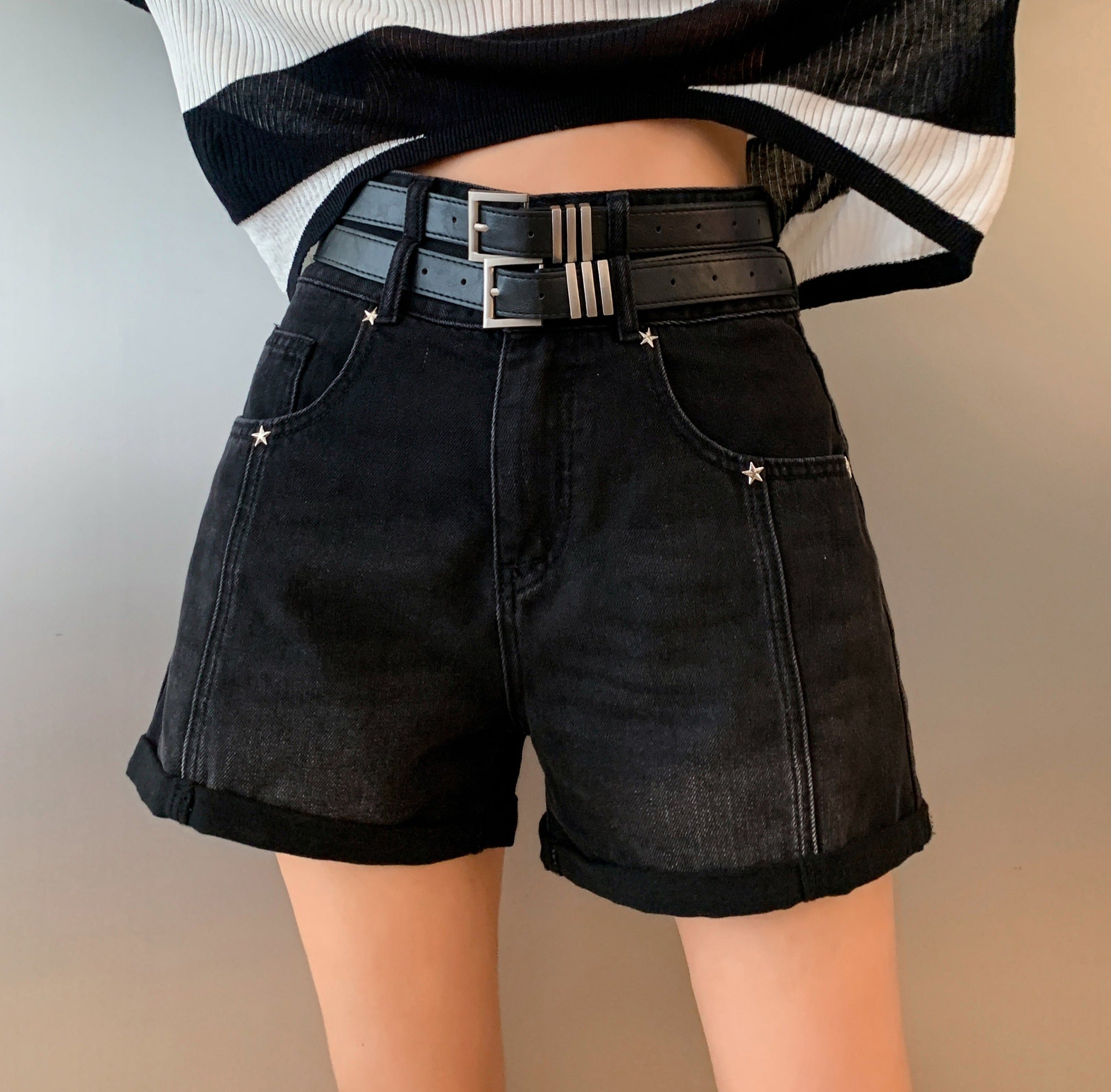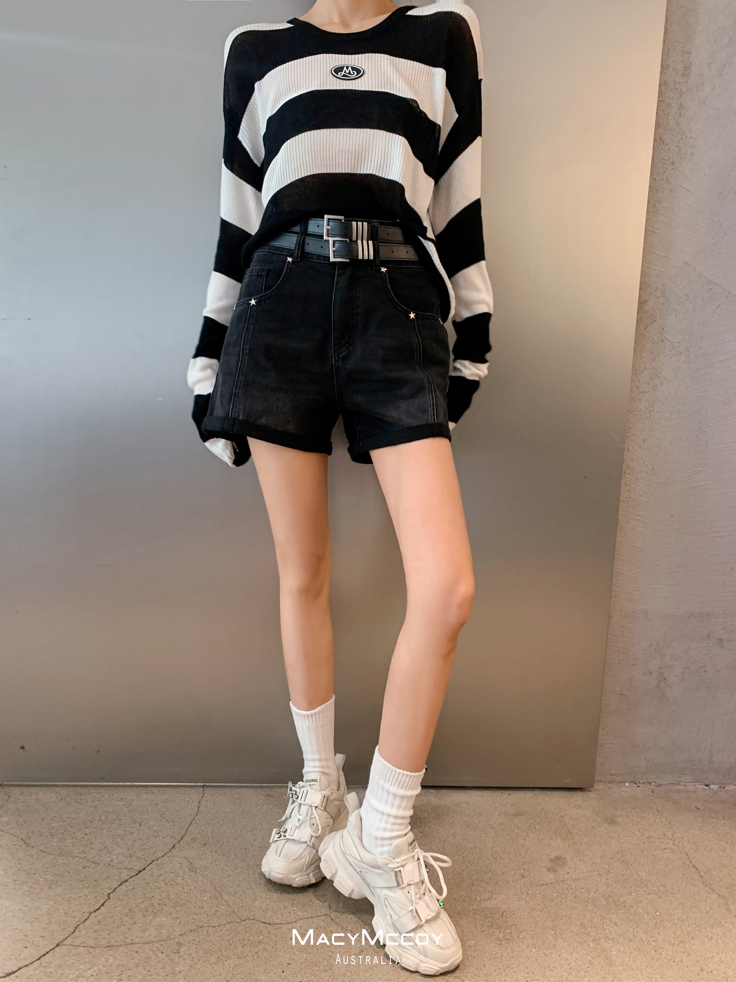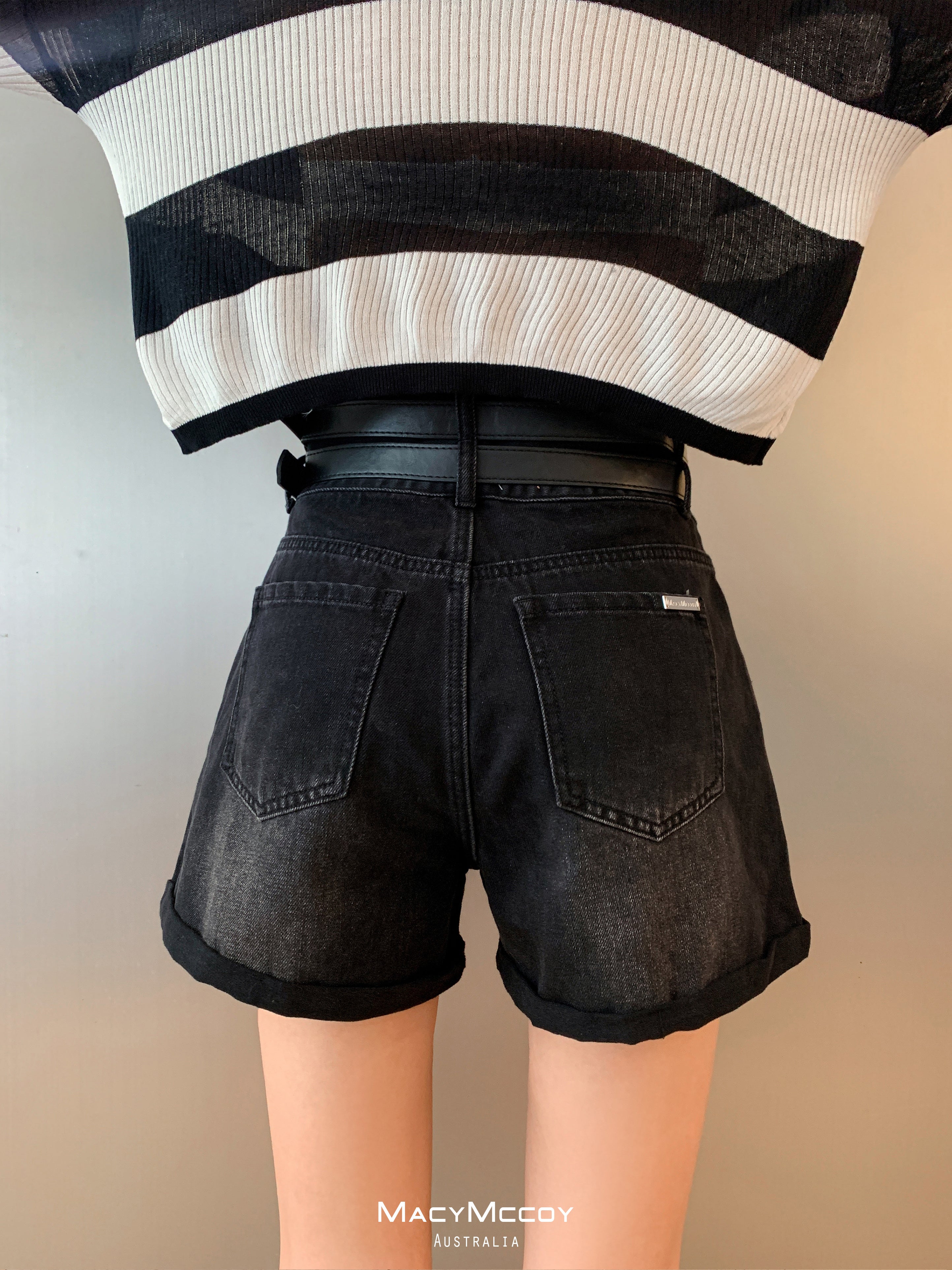 MacyMccoy SS2305 腰带牛仔短裤 黑