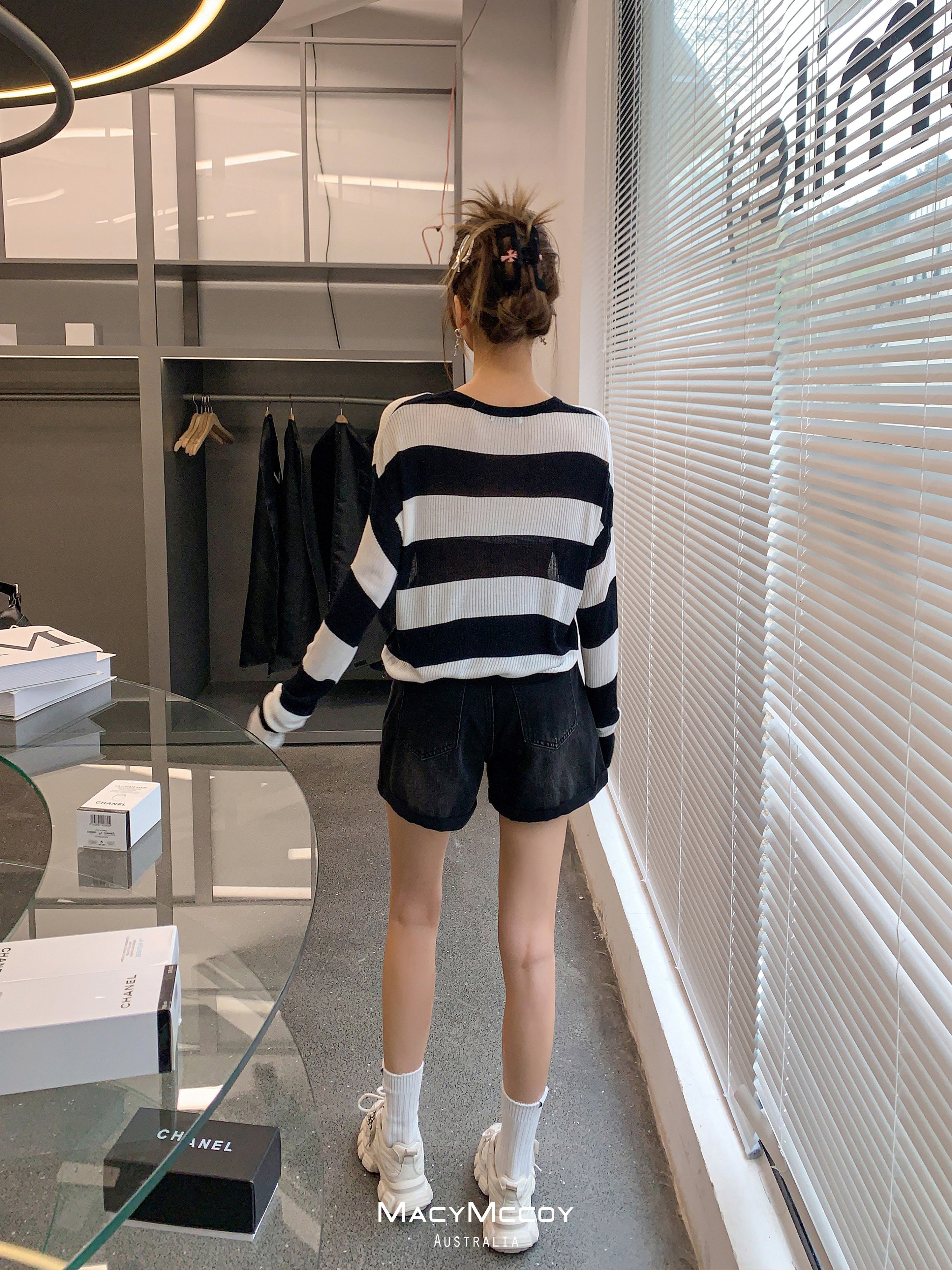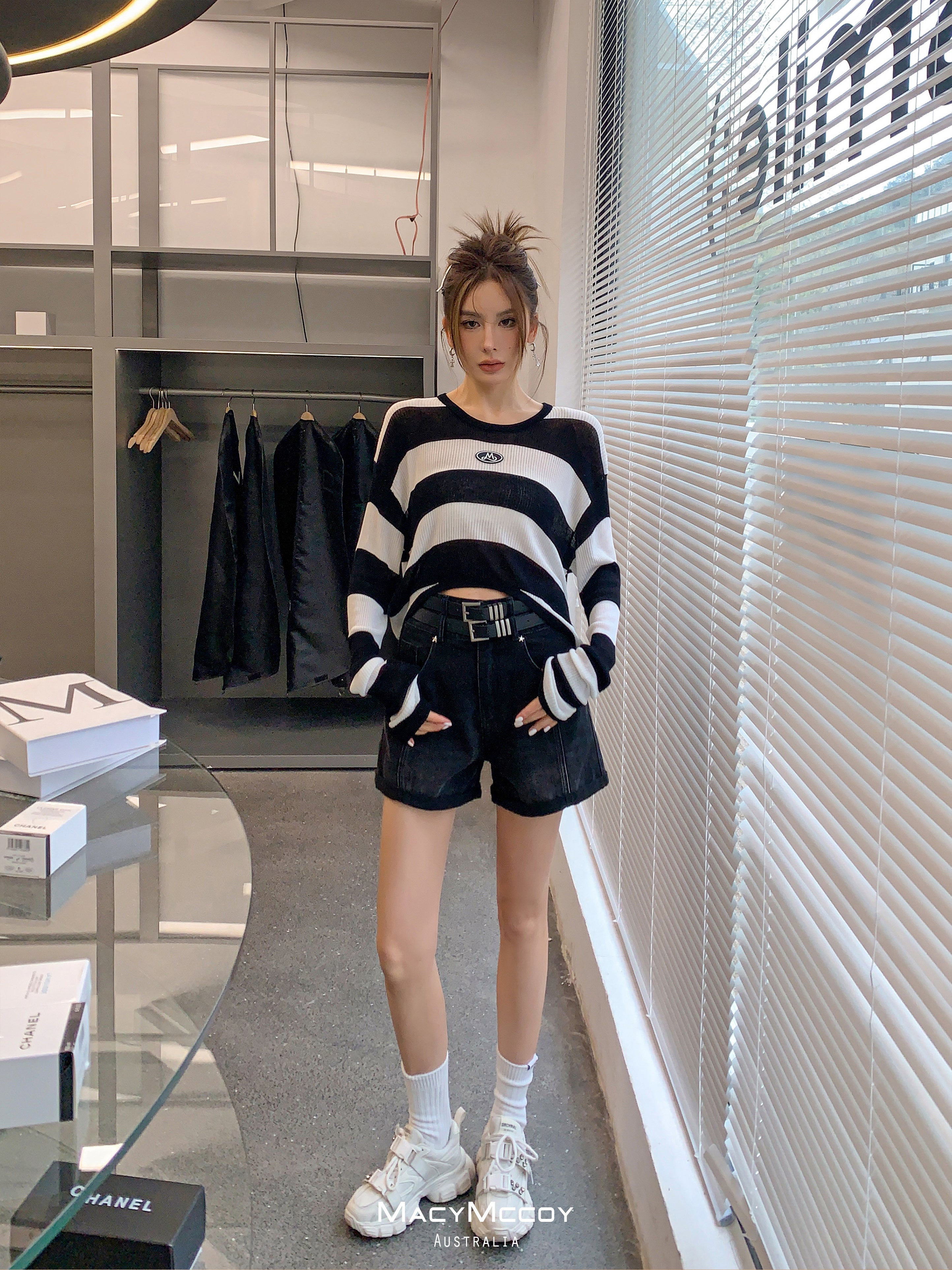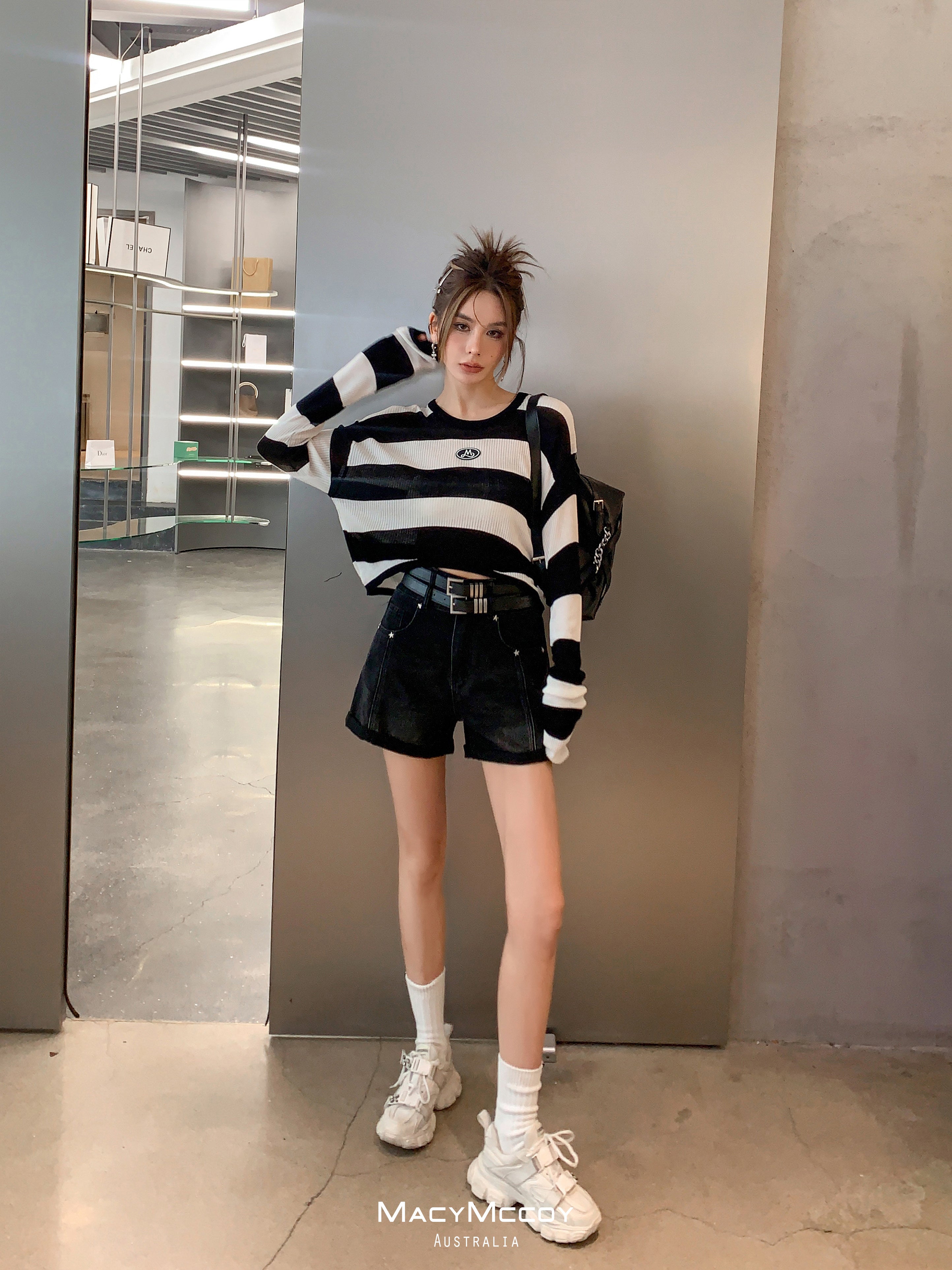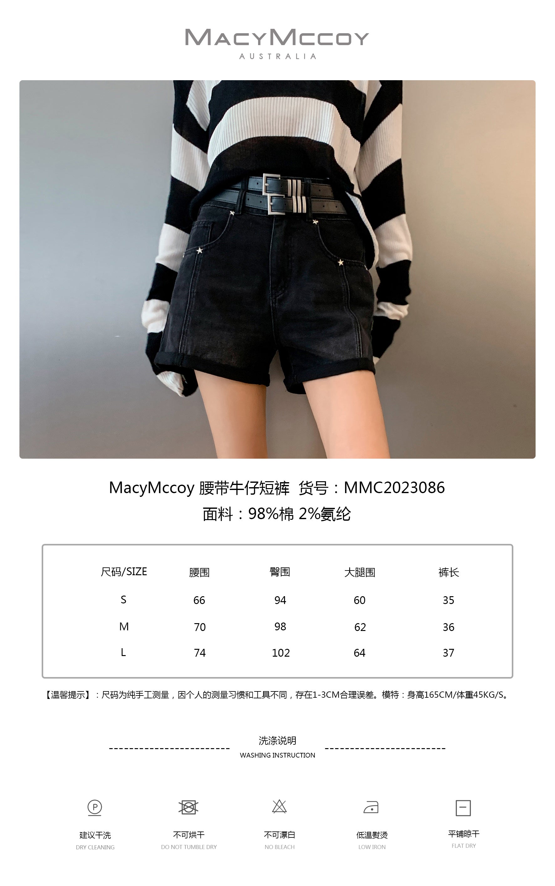 MacyMccoy SS2305 腰带牛仔短裤 黑