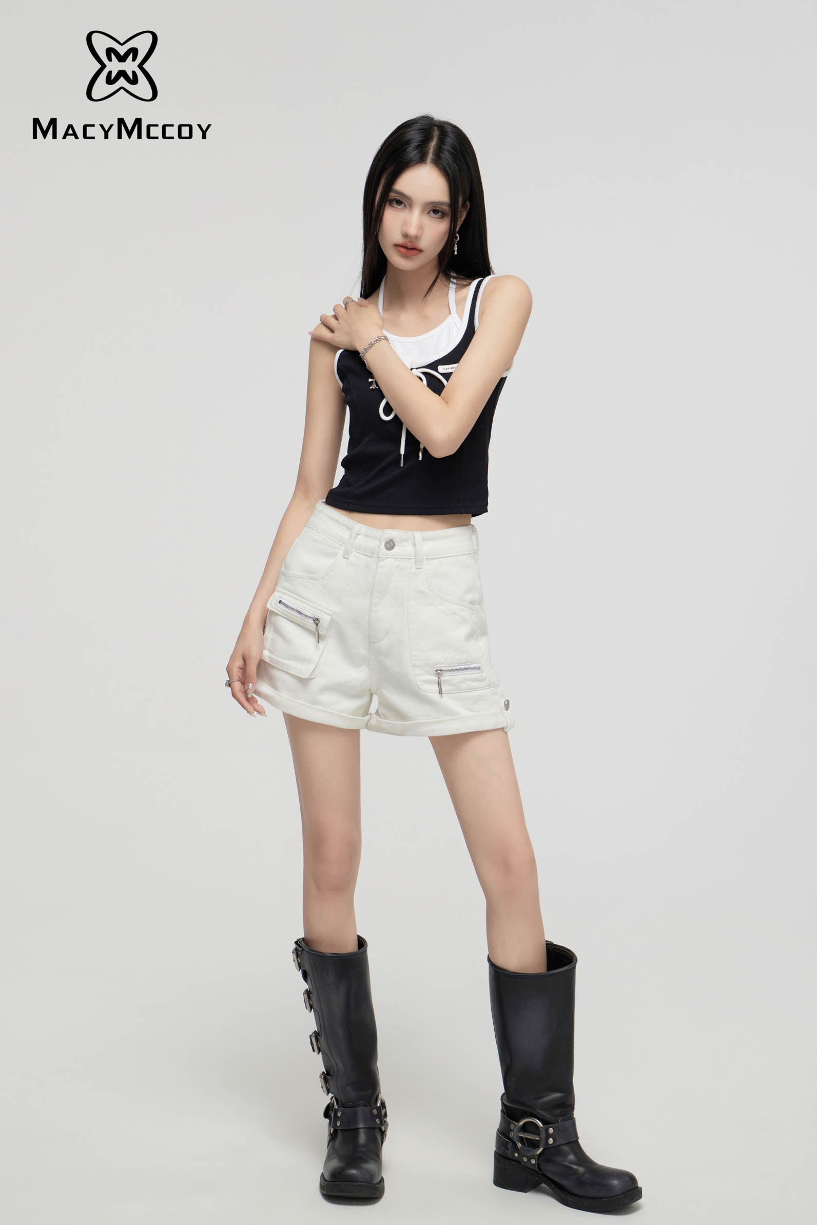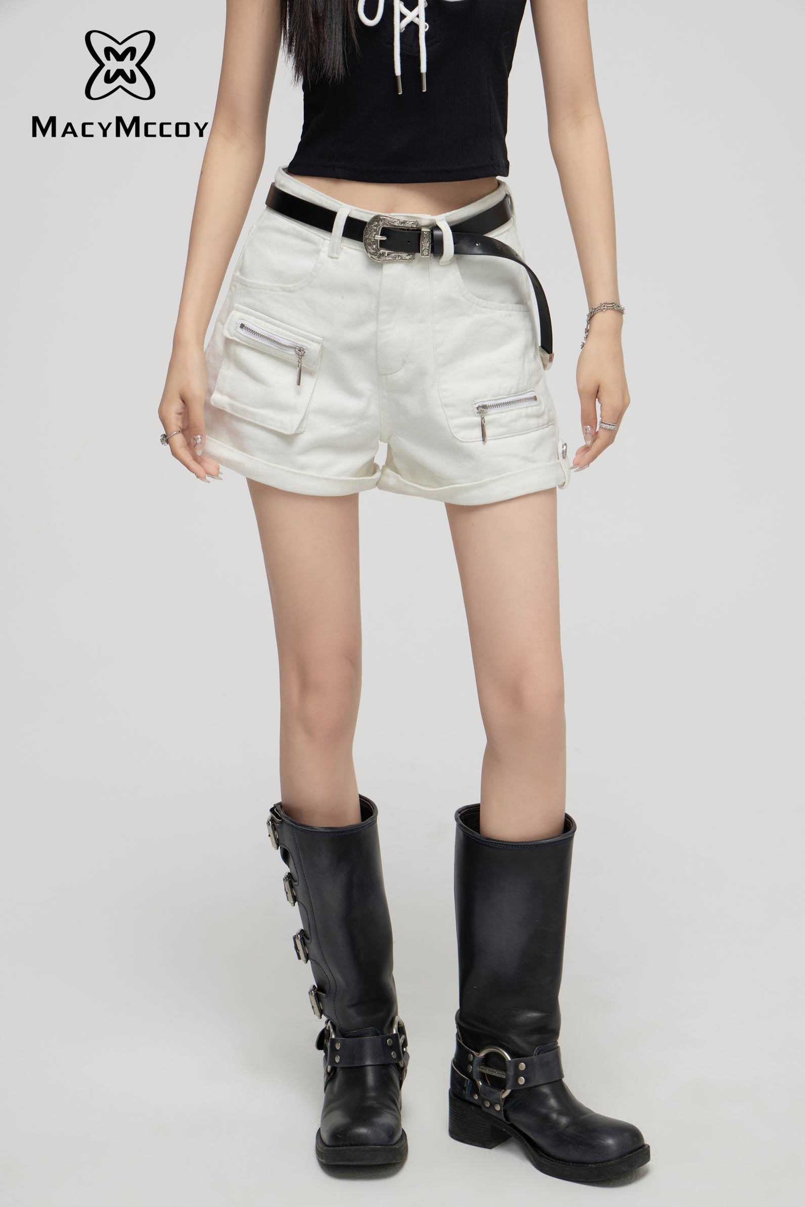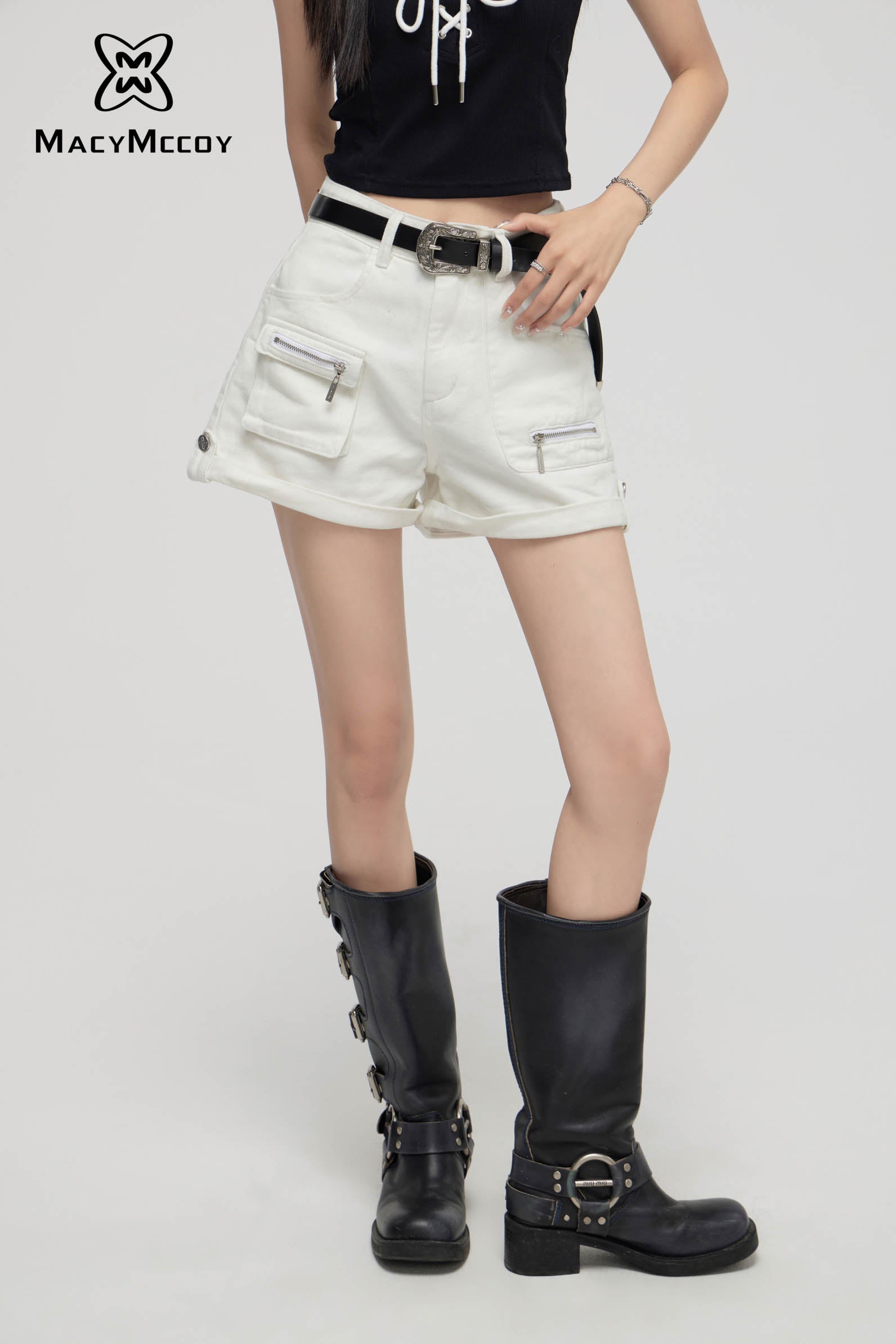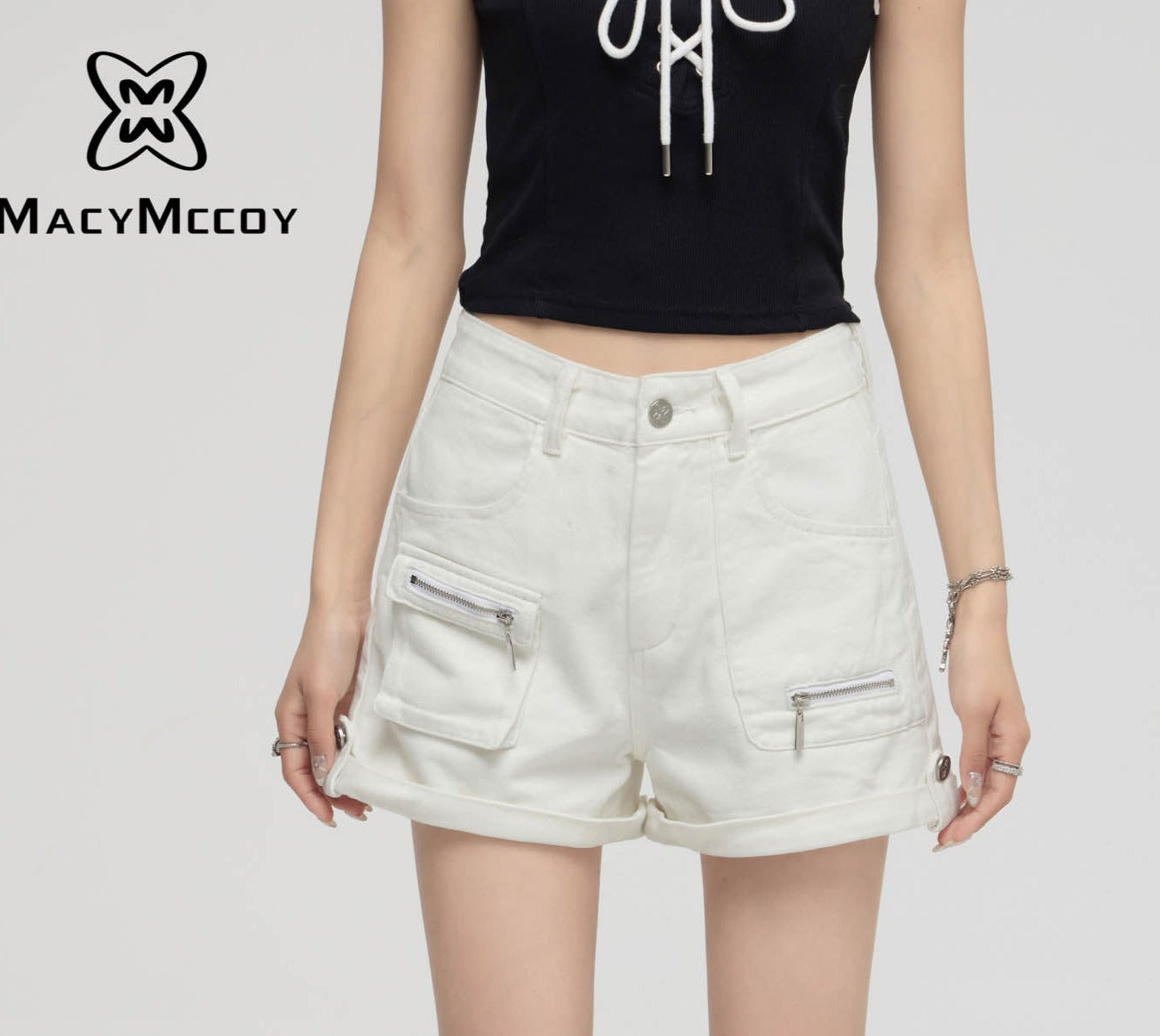 MacyMccoy SS2307 翻边工装牛仔短裤 白
