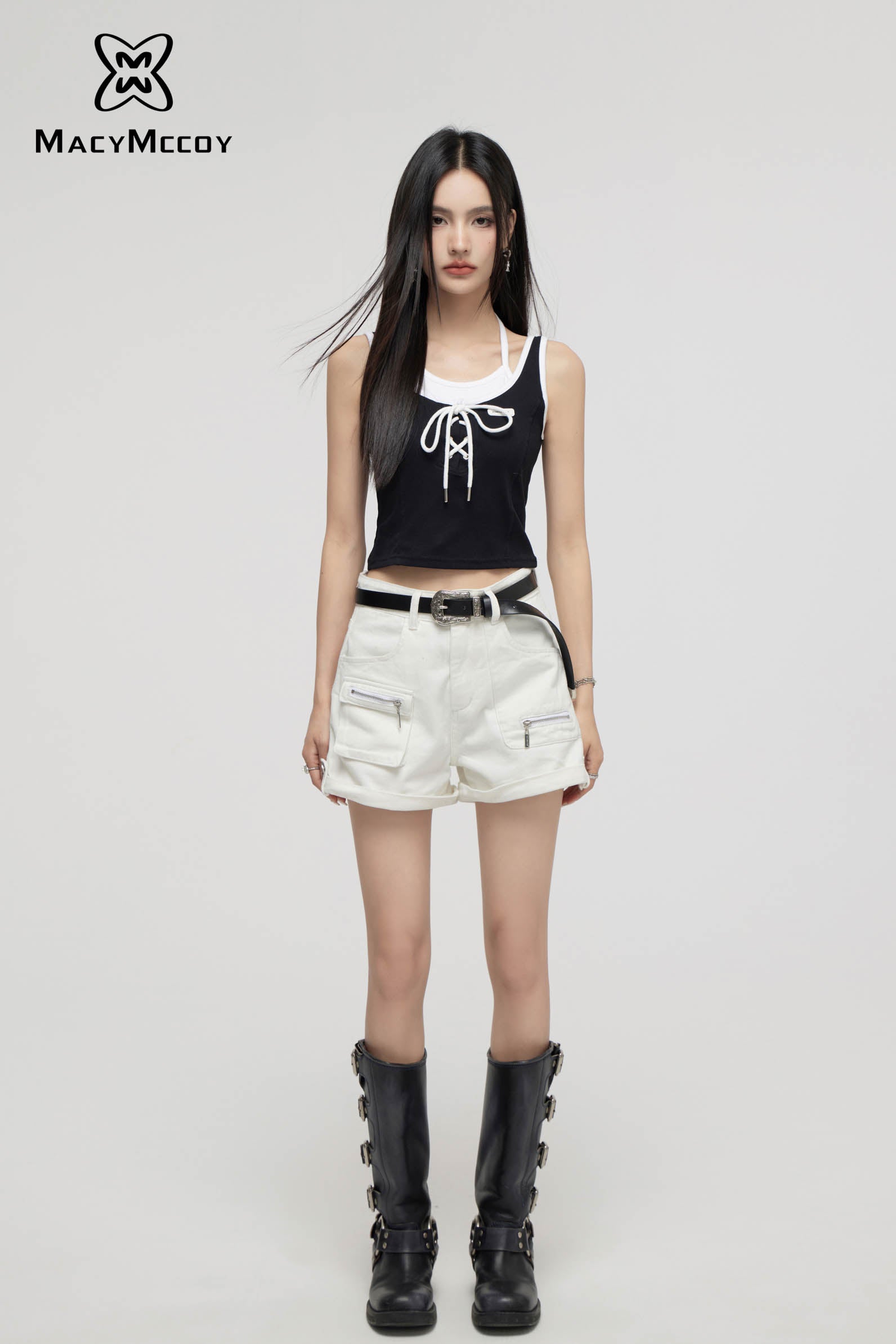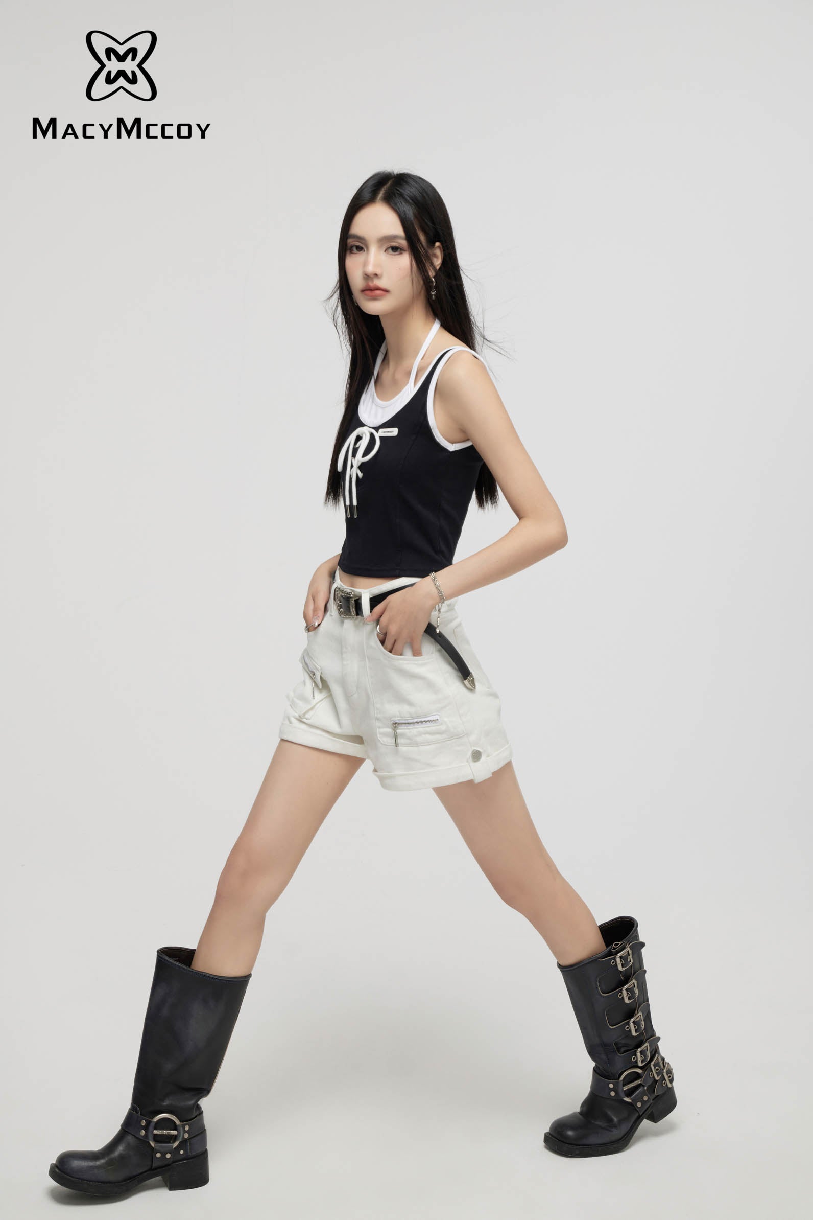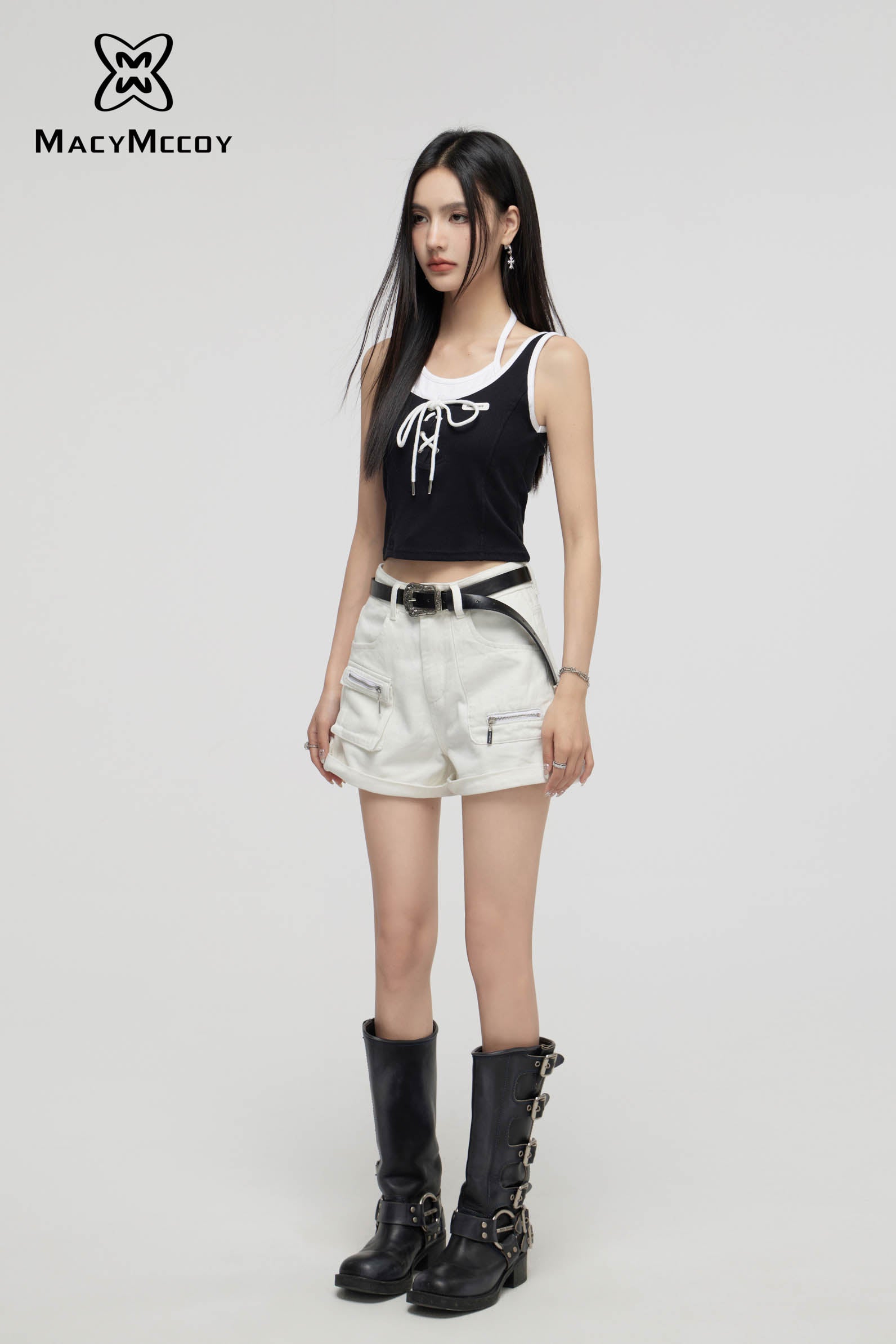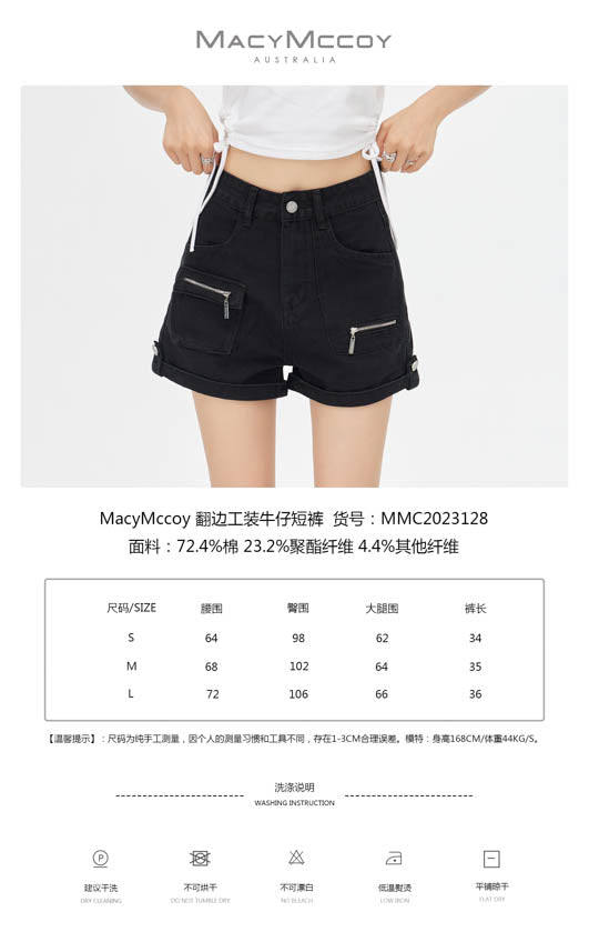 MacyMccoy SS2307 翻边工装牛仔短裤 白
