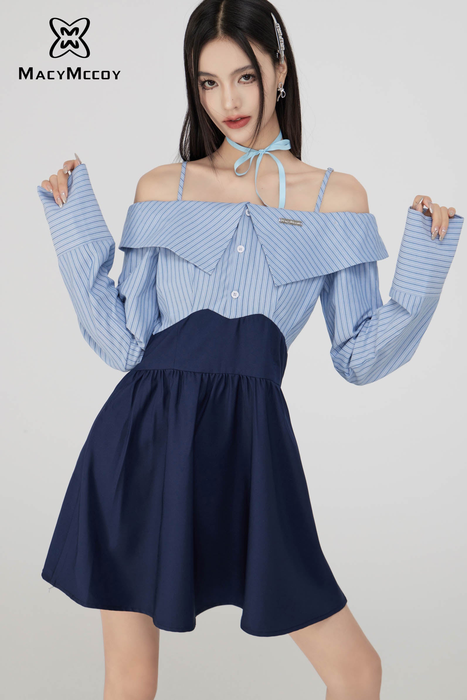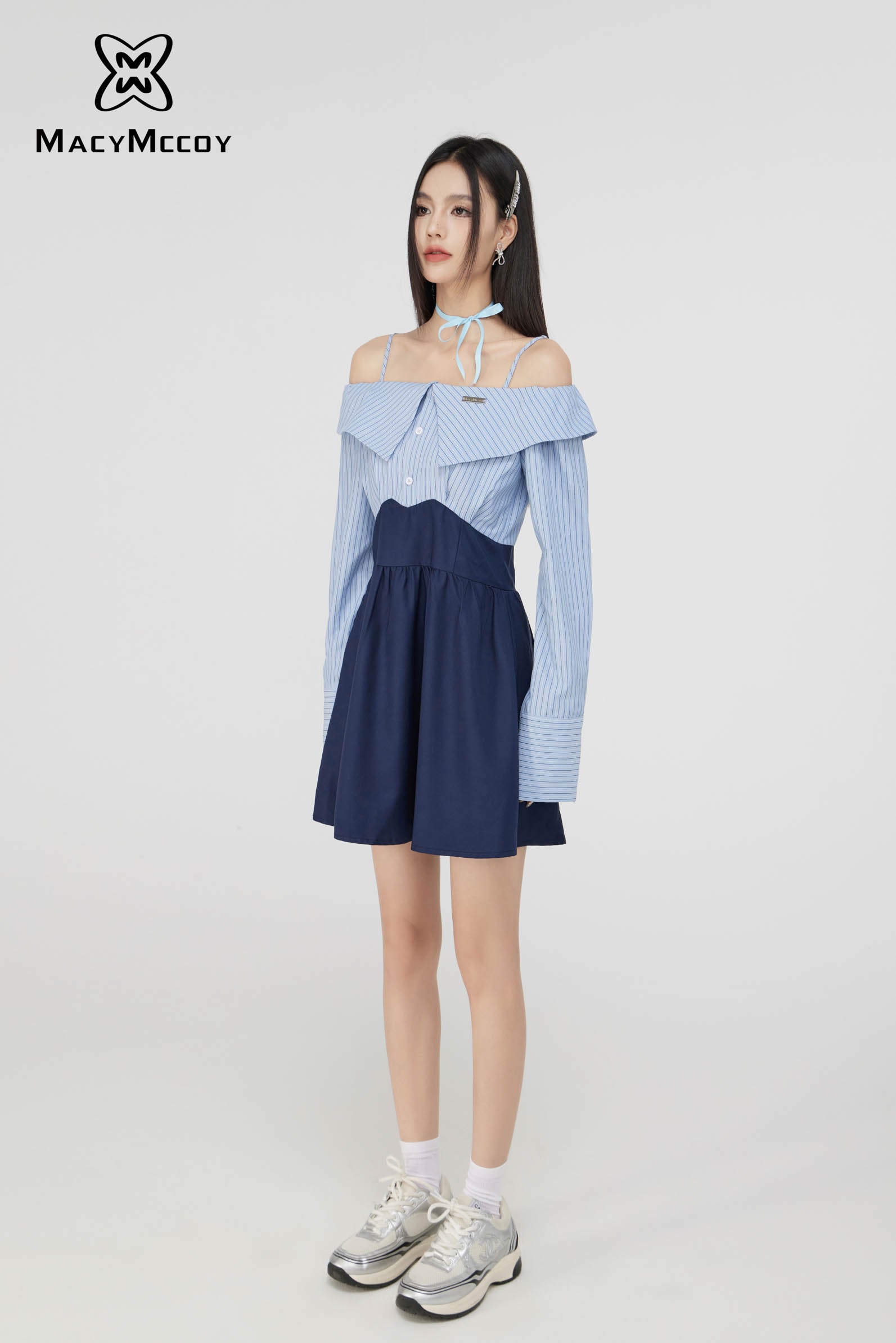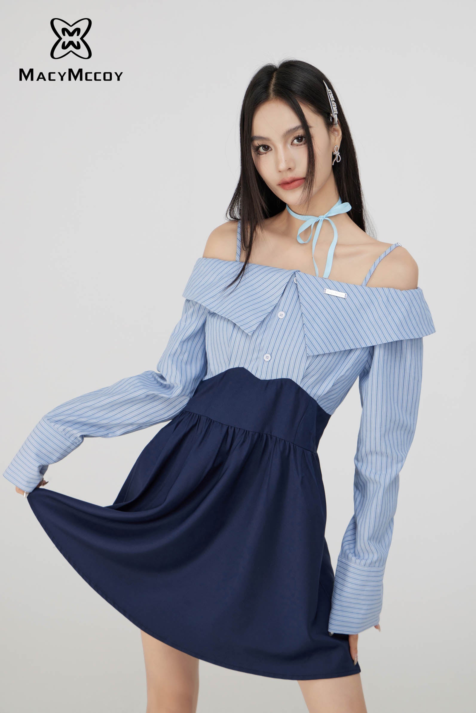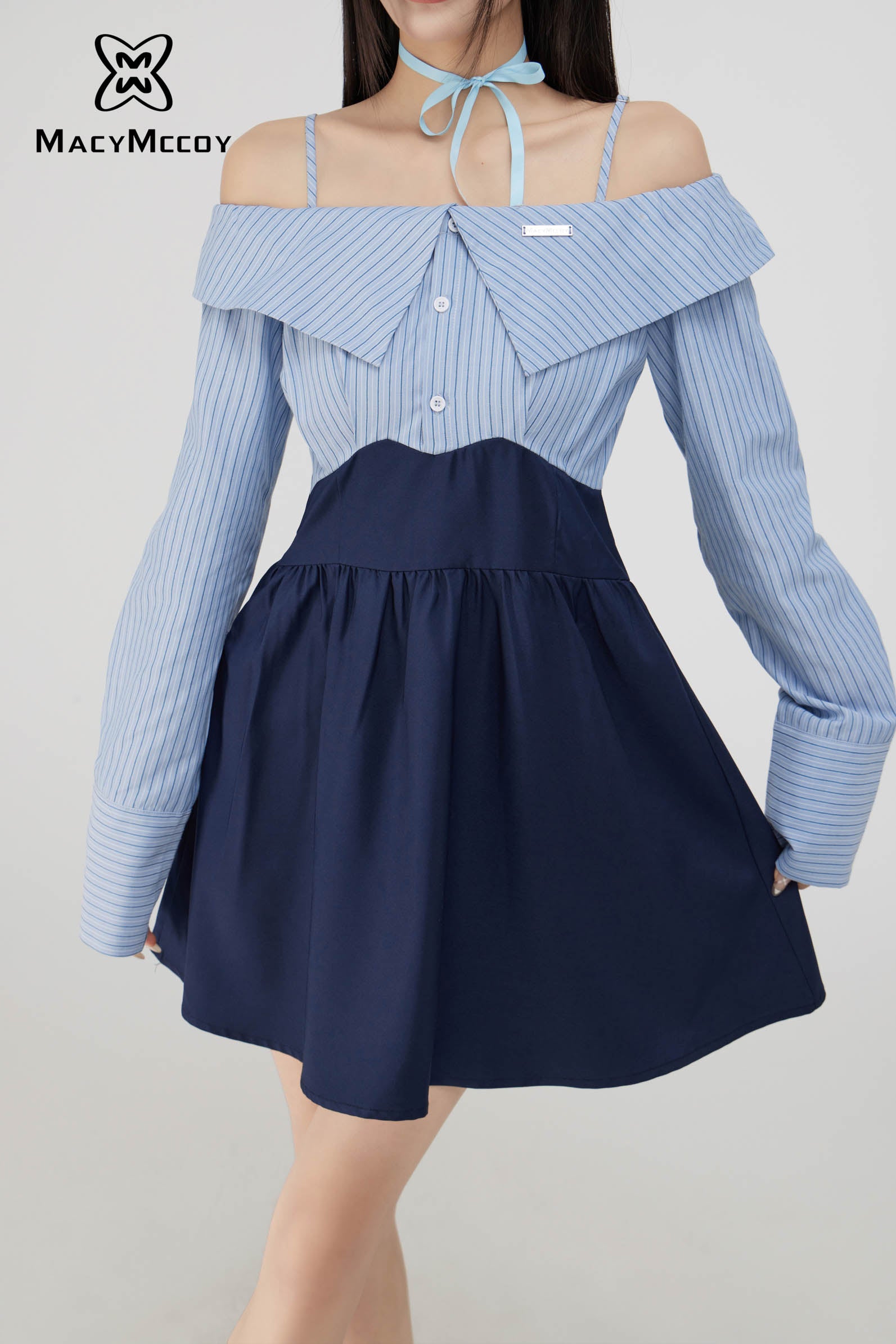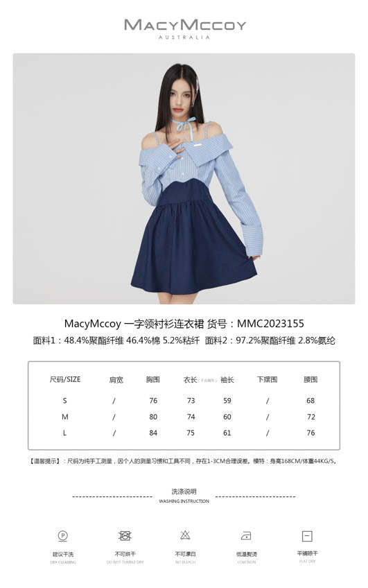 MacyMccoy SS2308 一字领衬衫连衣裙