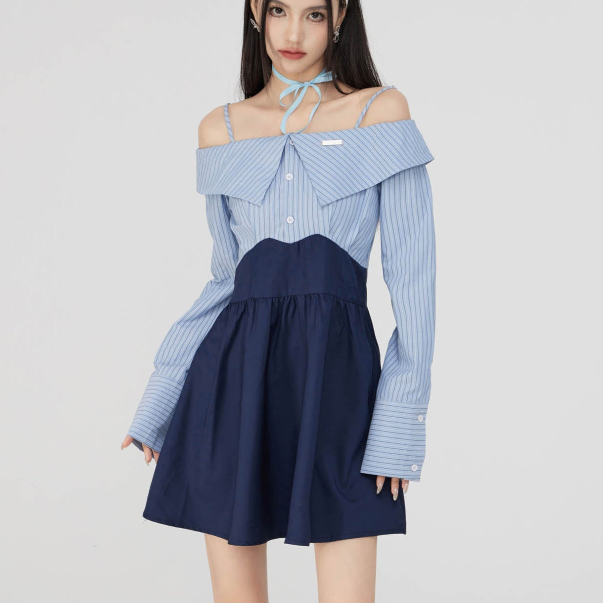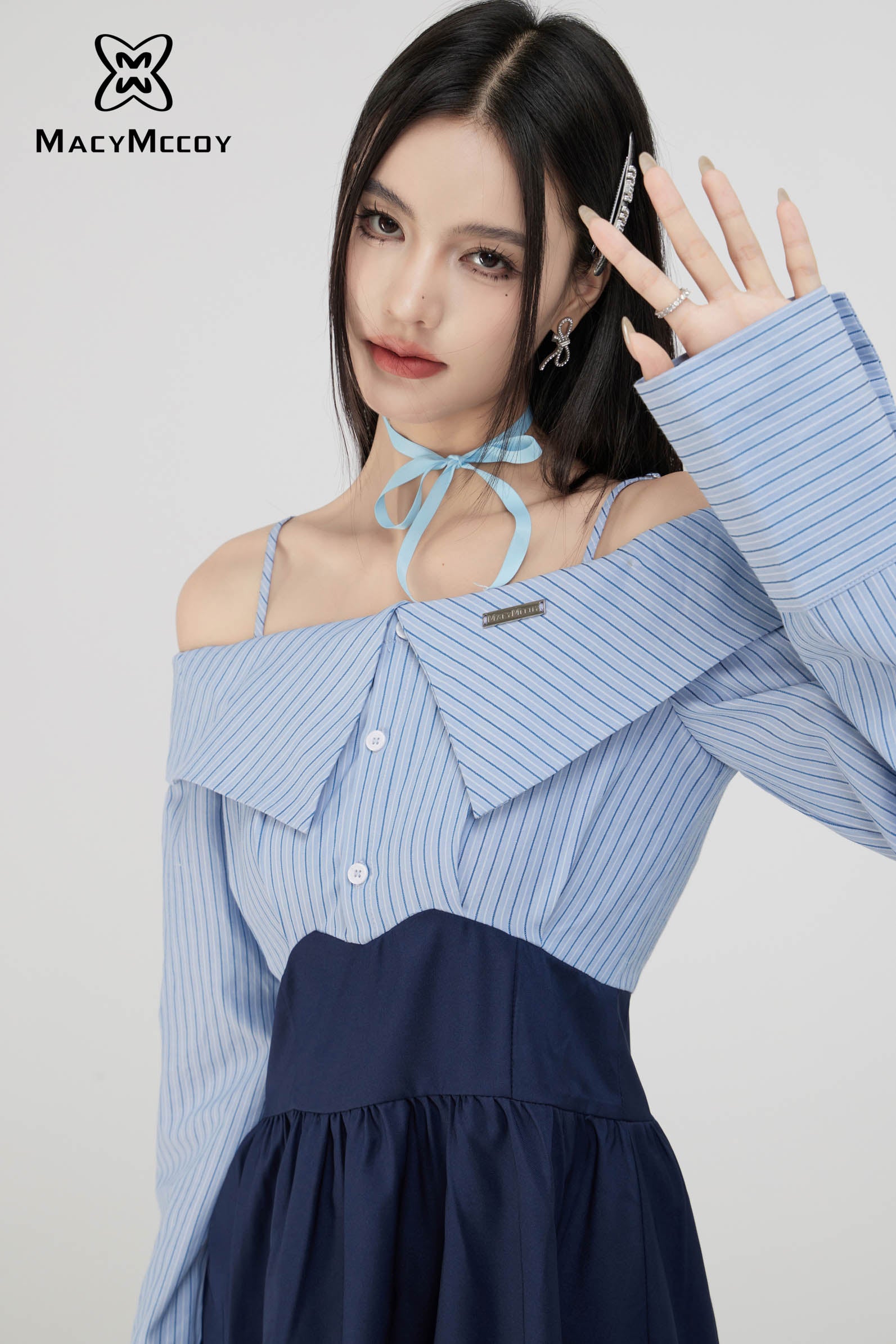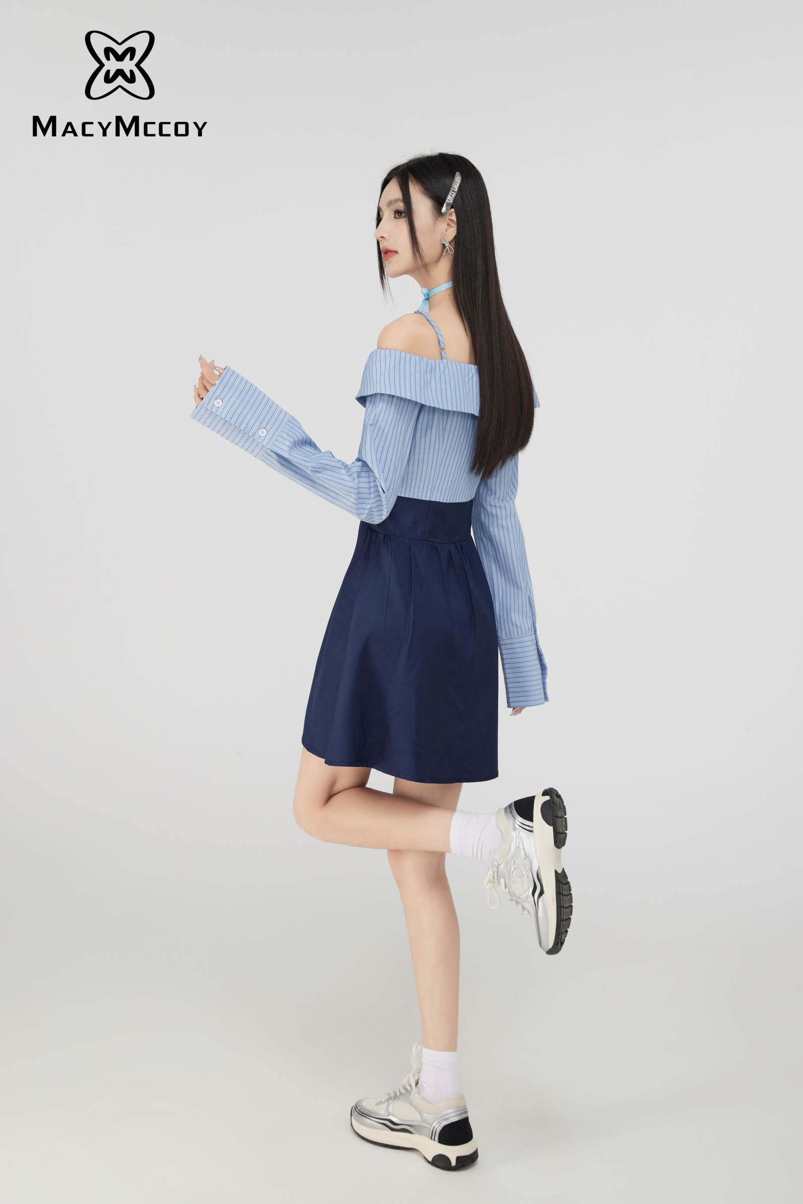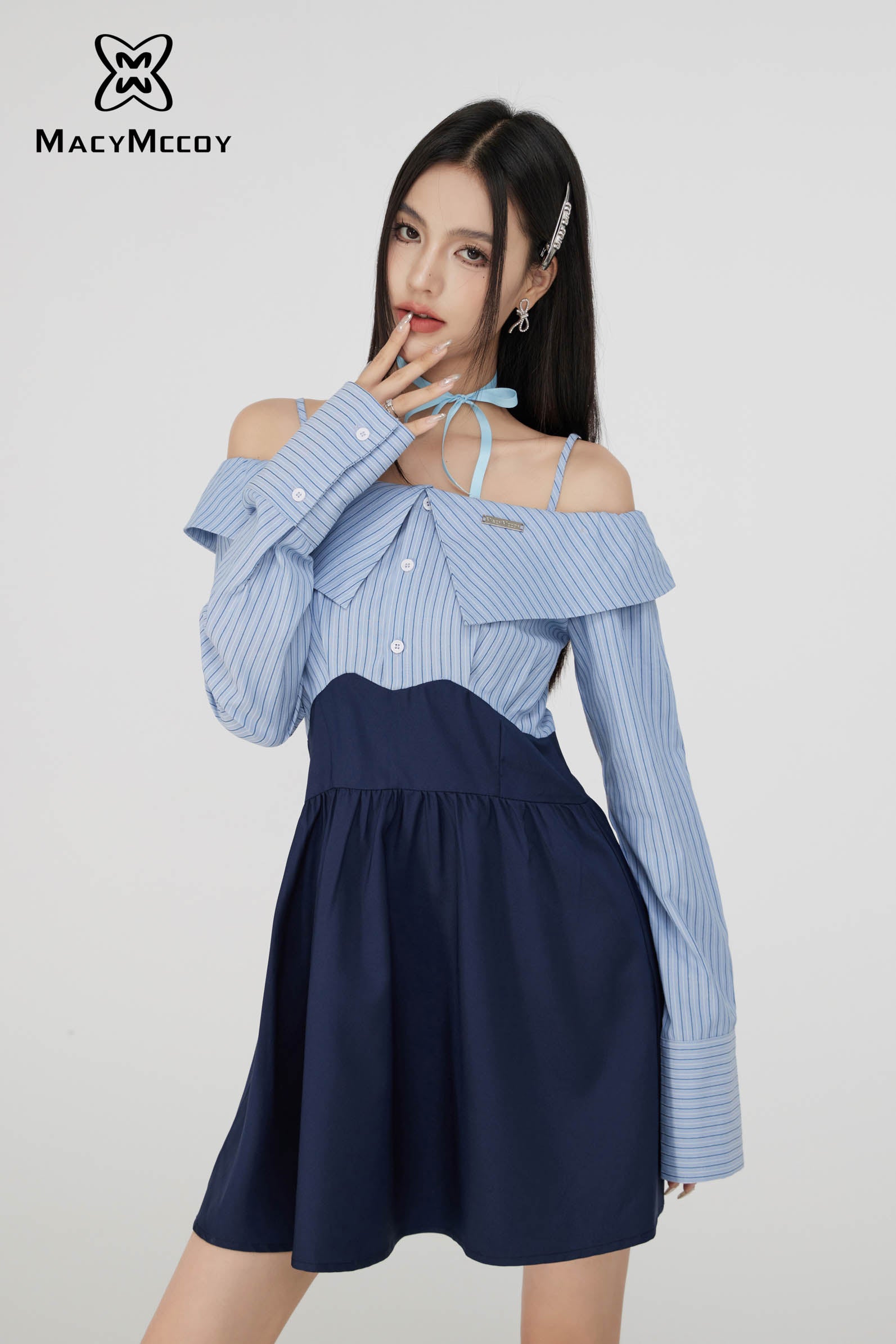 MacyMccoy SS2308 一字领衬衫连衣裙