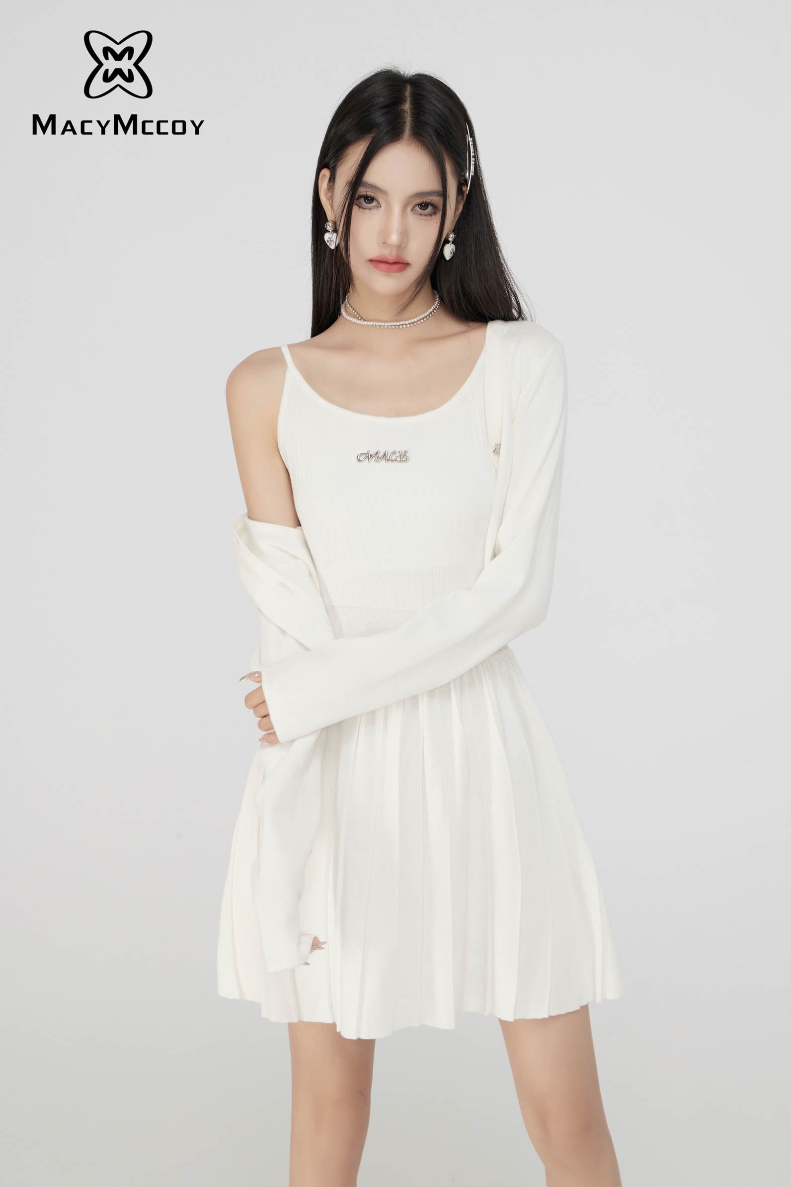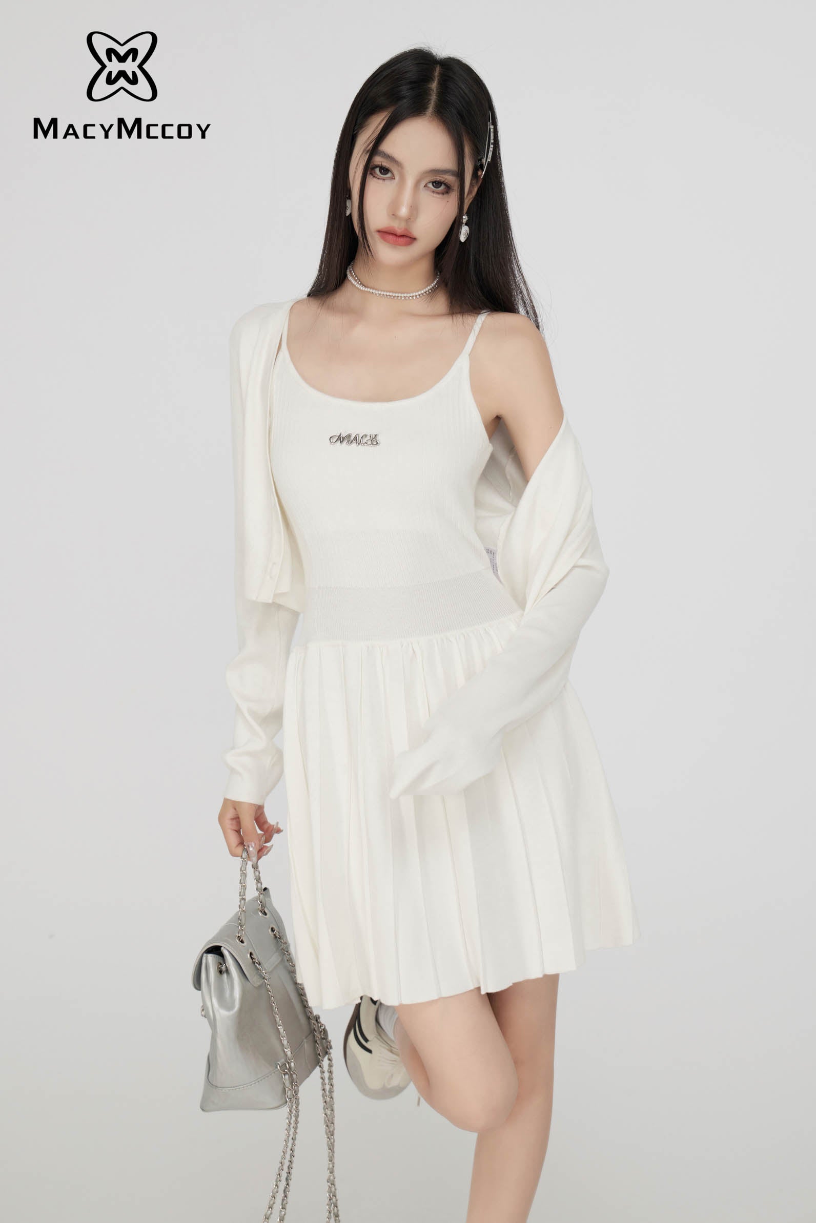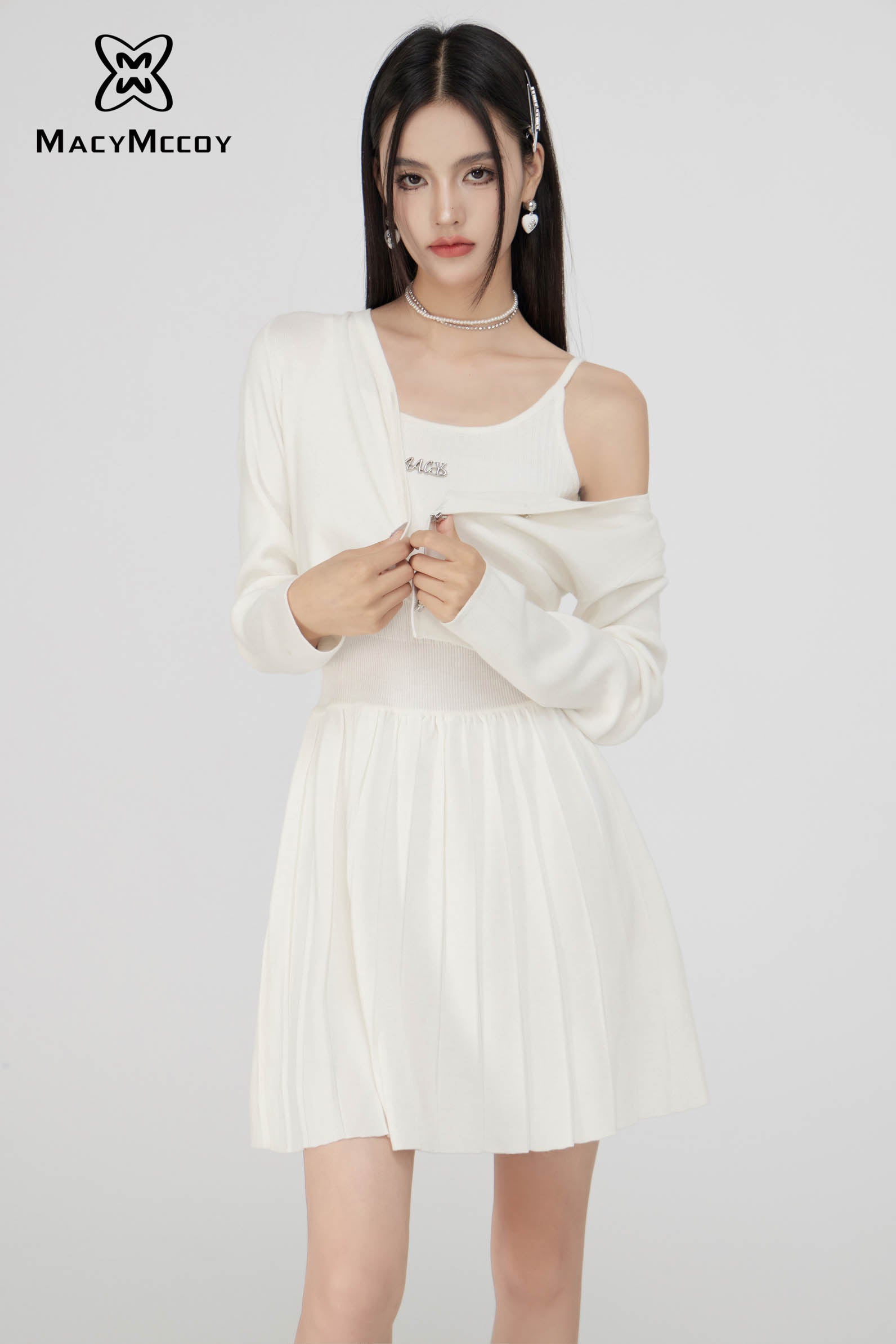 MacyMccoy SS2308 吊带裙针织两件套 白