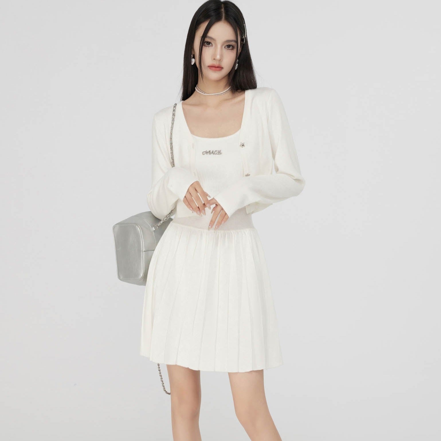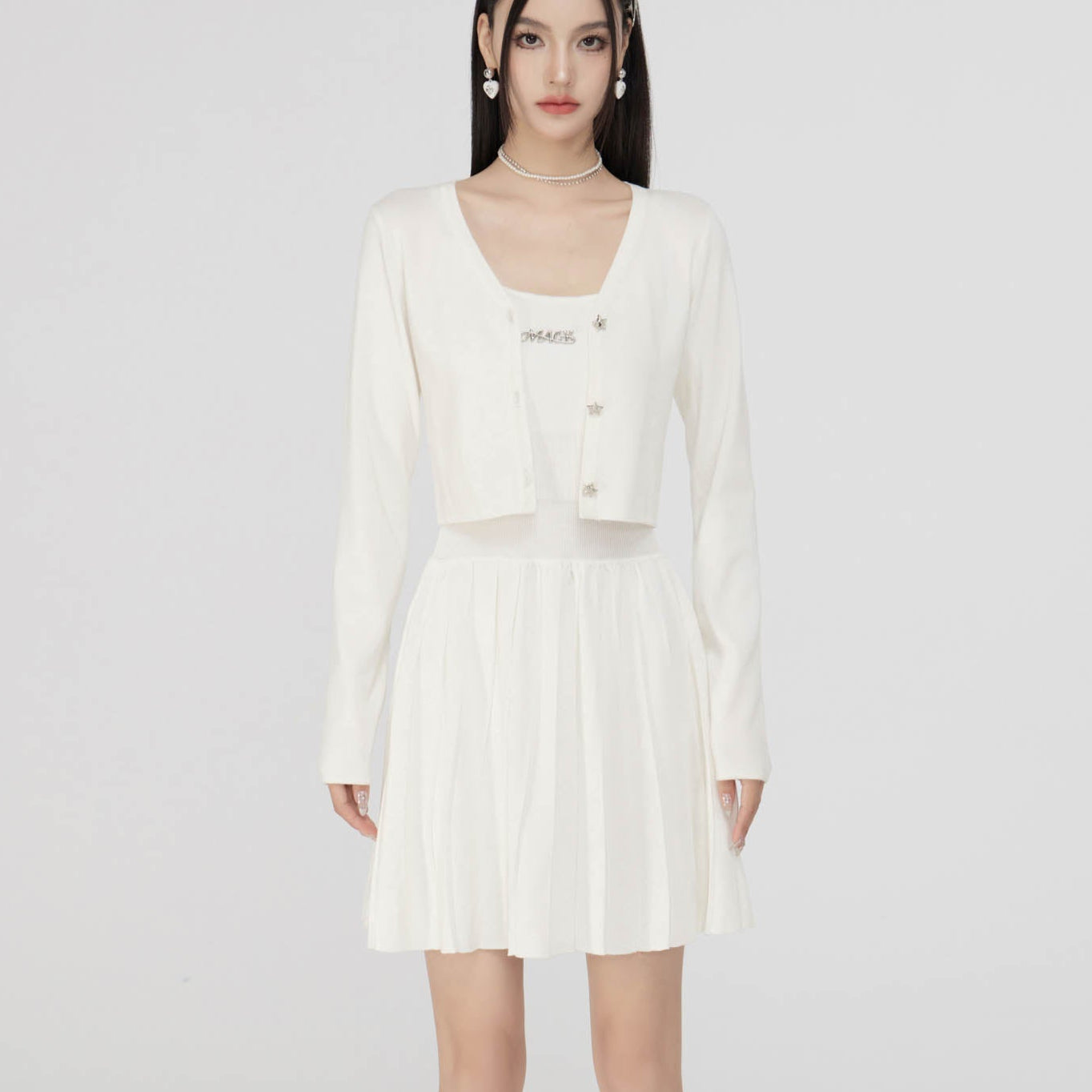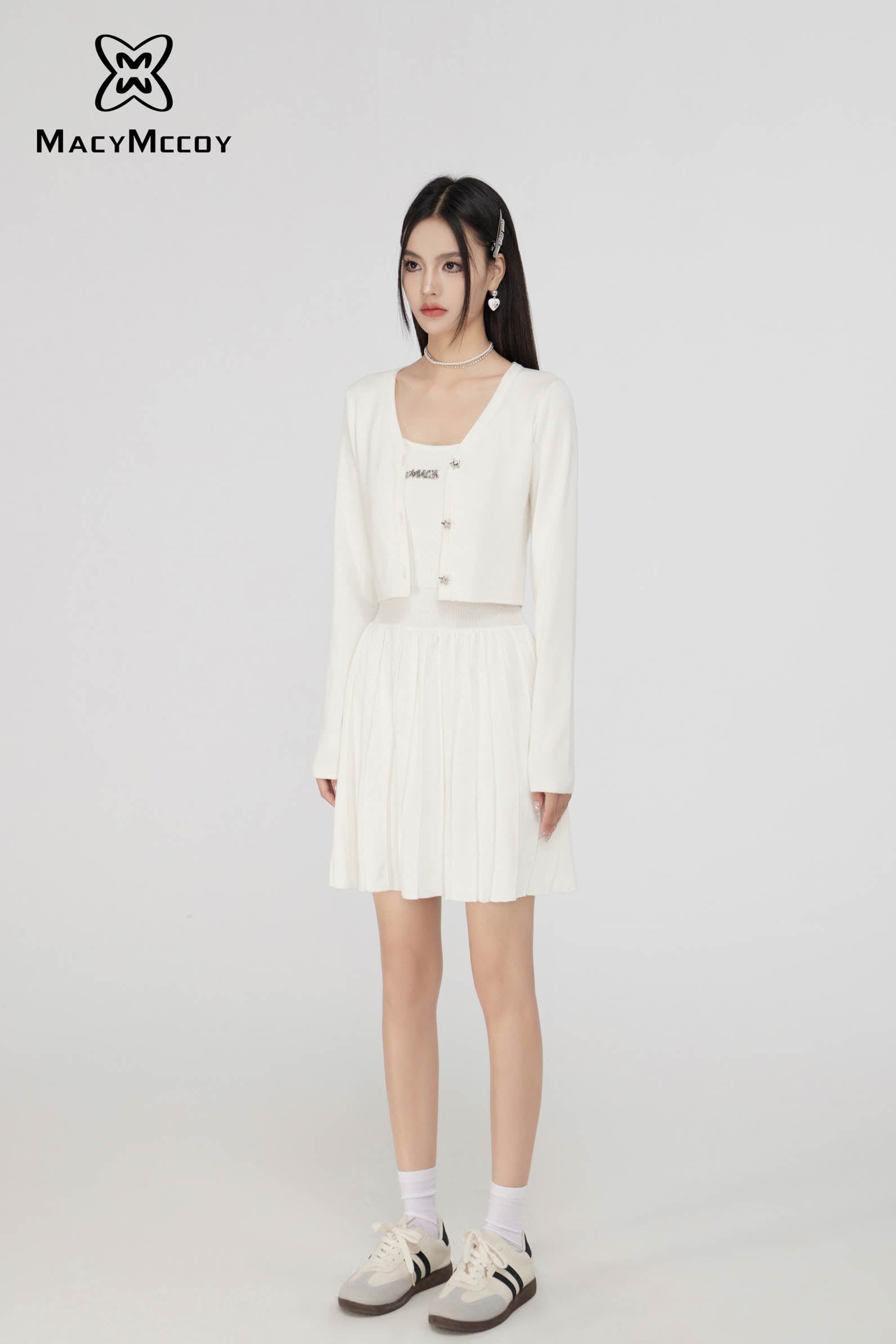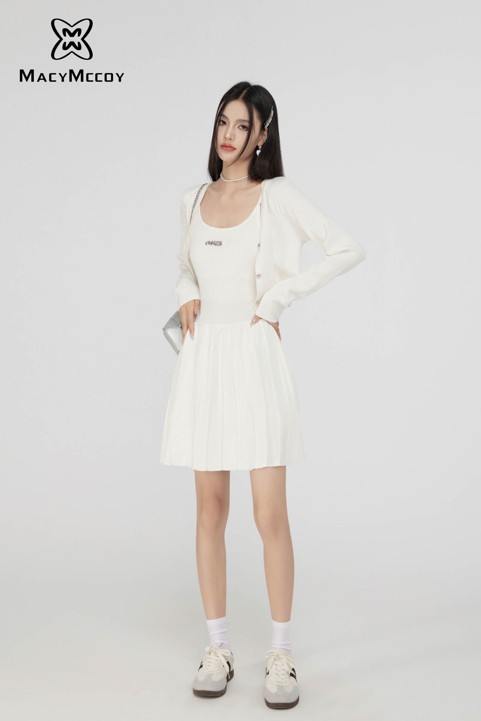 MacyMccoy SS2308 吊带裙针织两件套 白