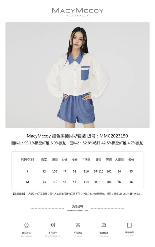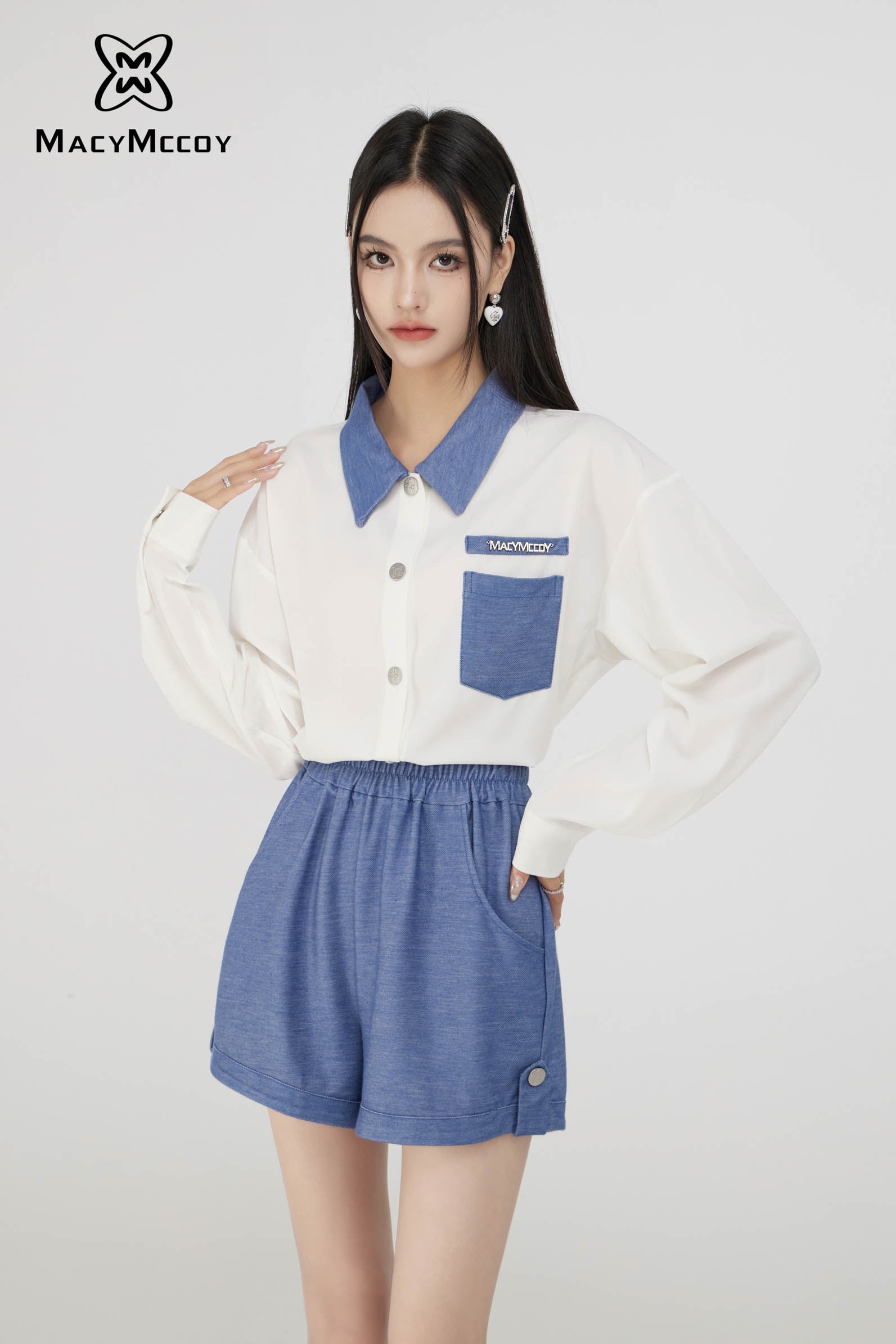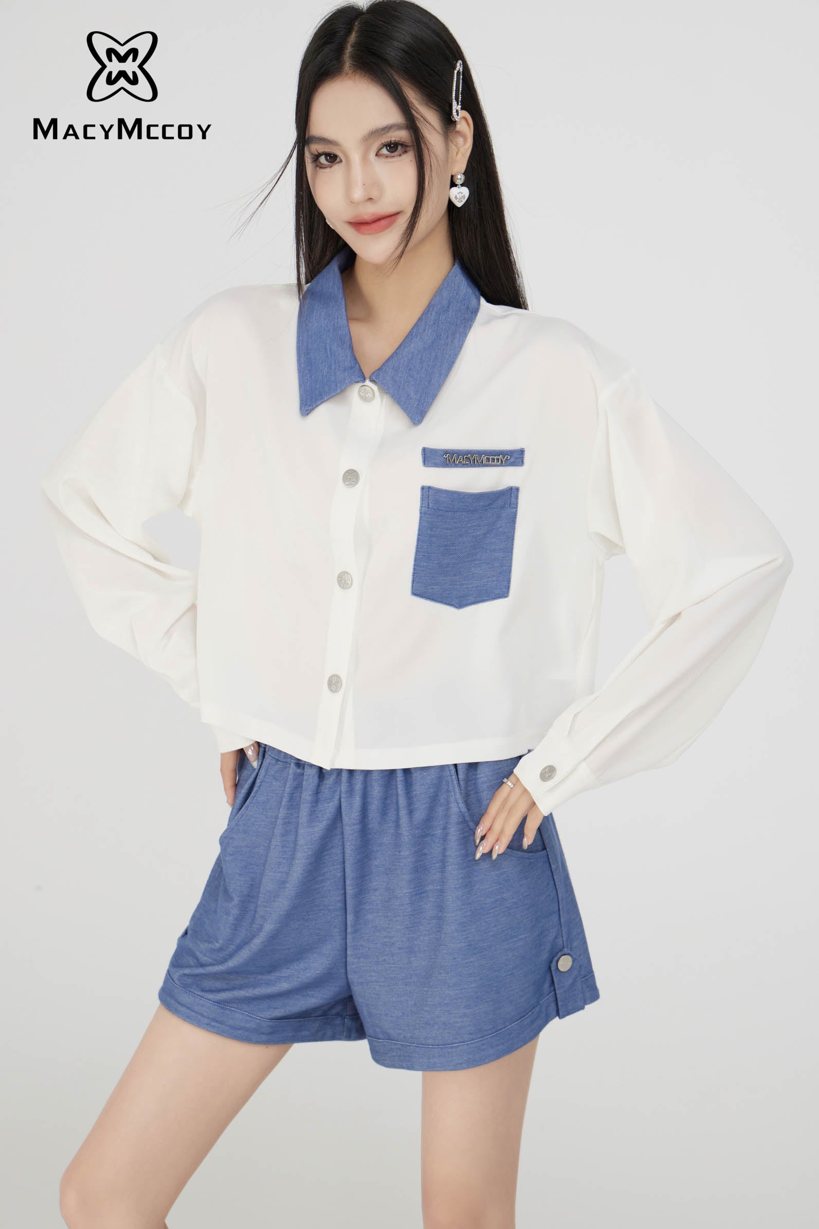 MacyMccoy SS2308 撞色拼接衬衫套装