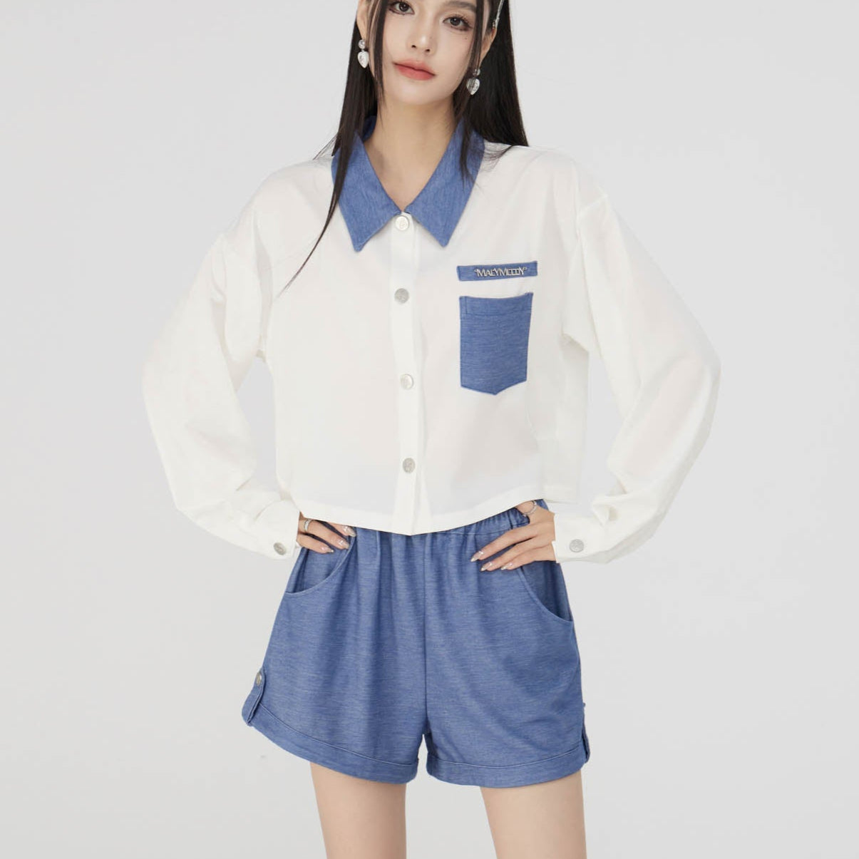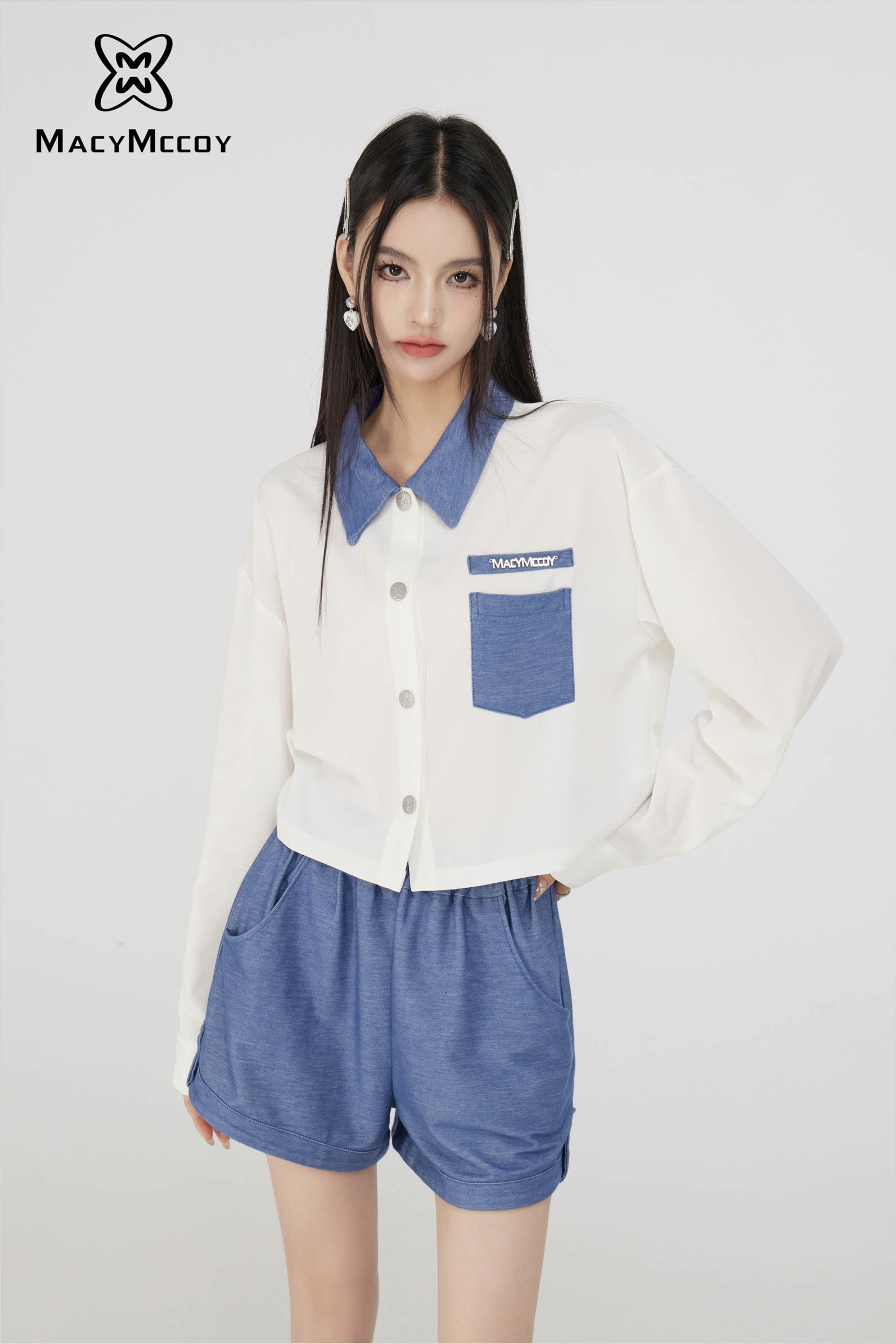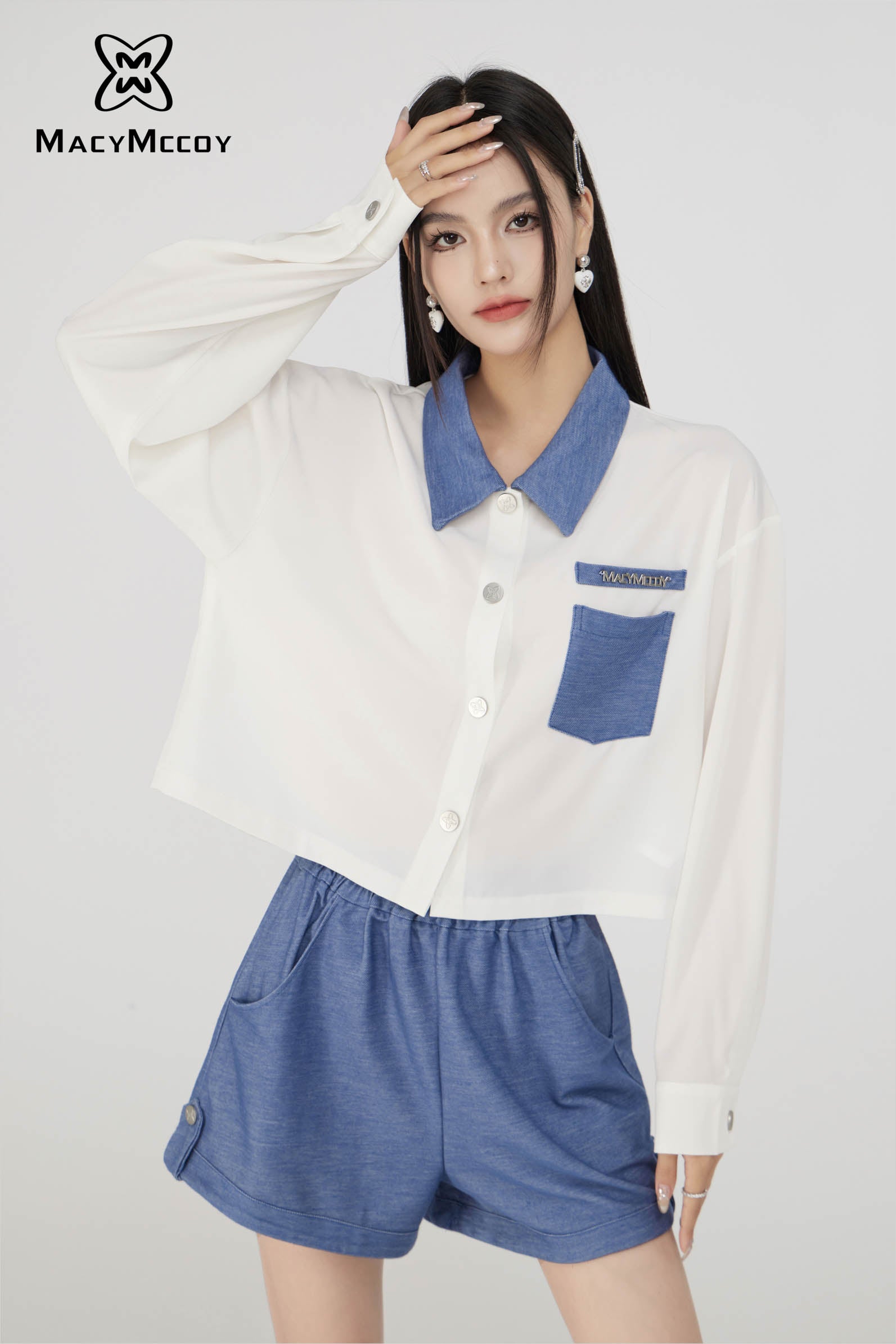 MacyMccoy SS2308 撞色拼接衬衫套装