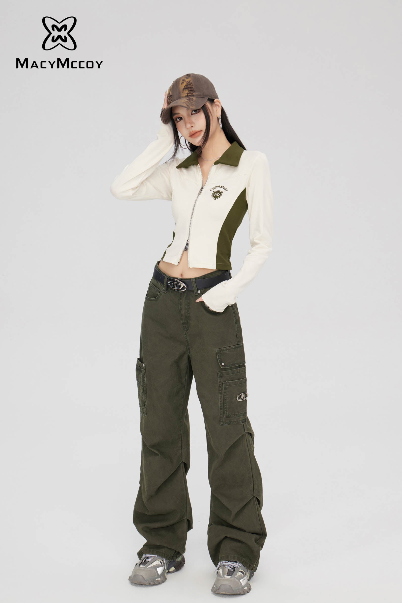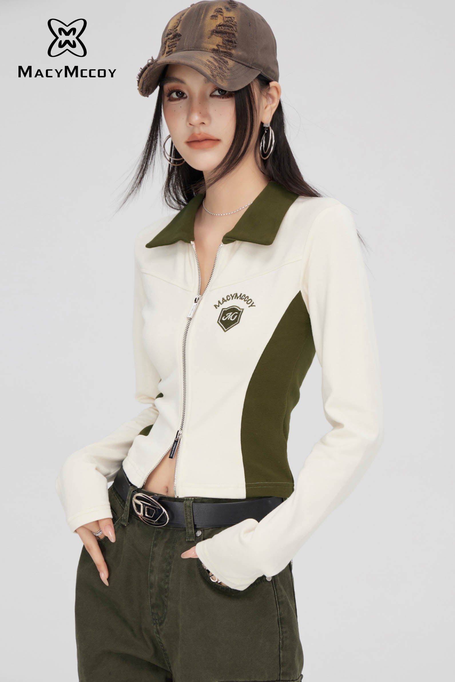 MacyMccoy SS2310 撞色拉链短款上衣 米白