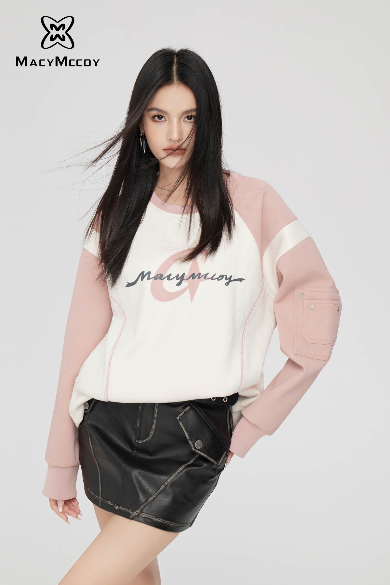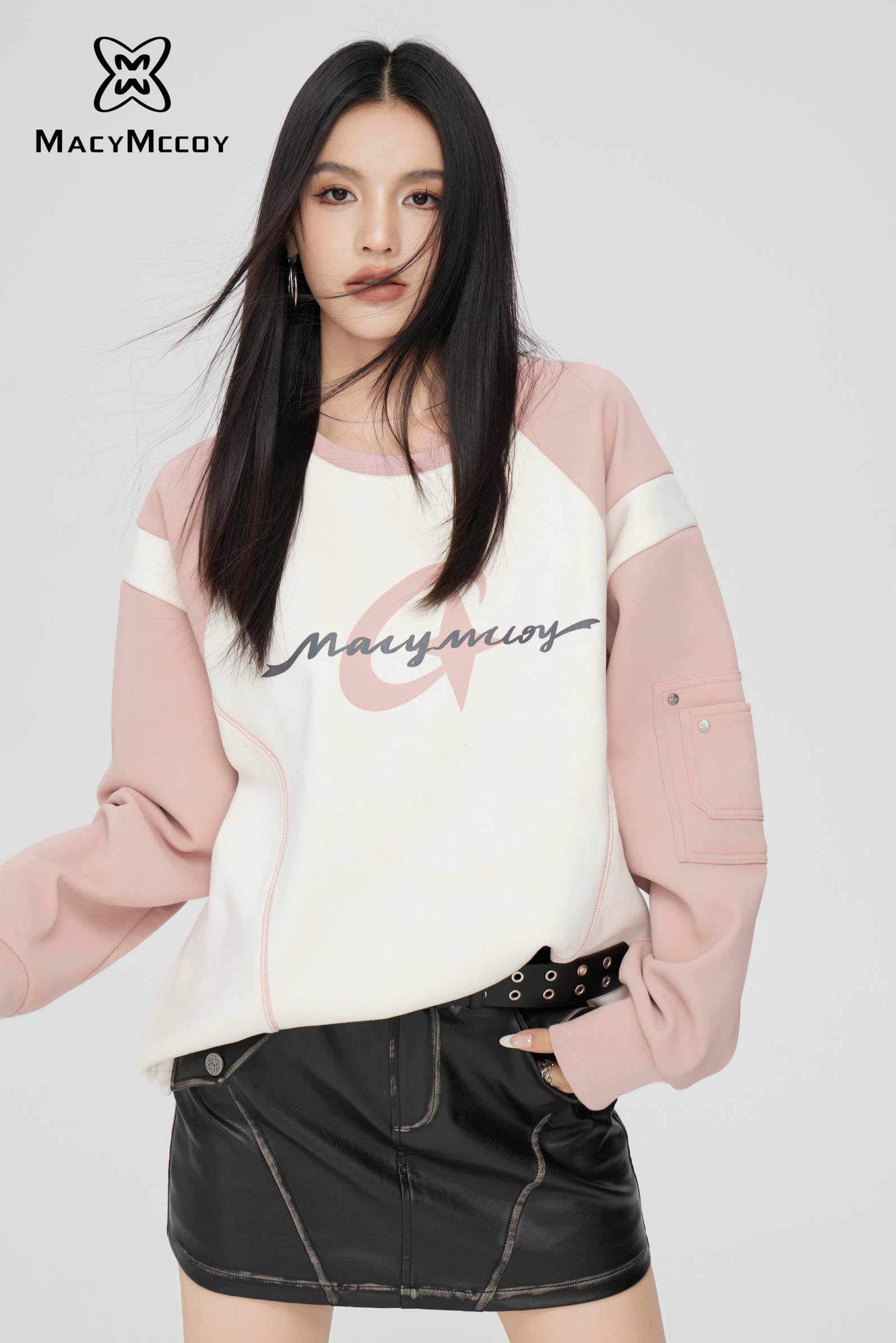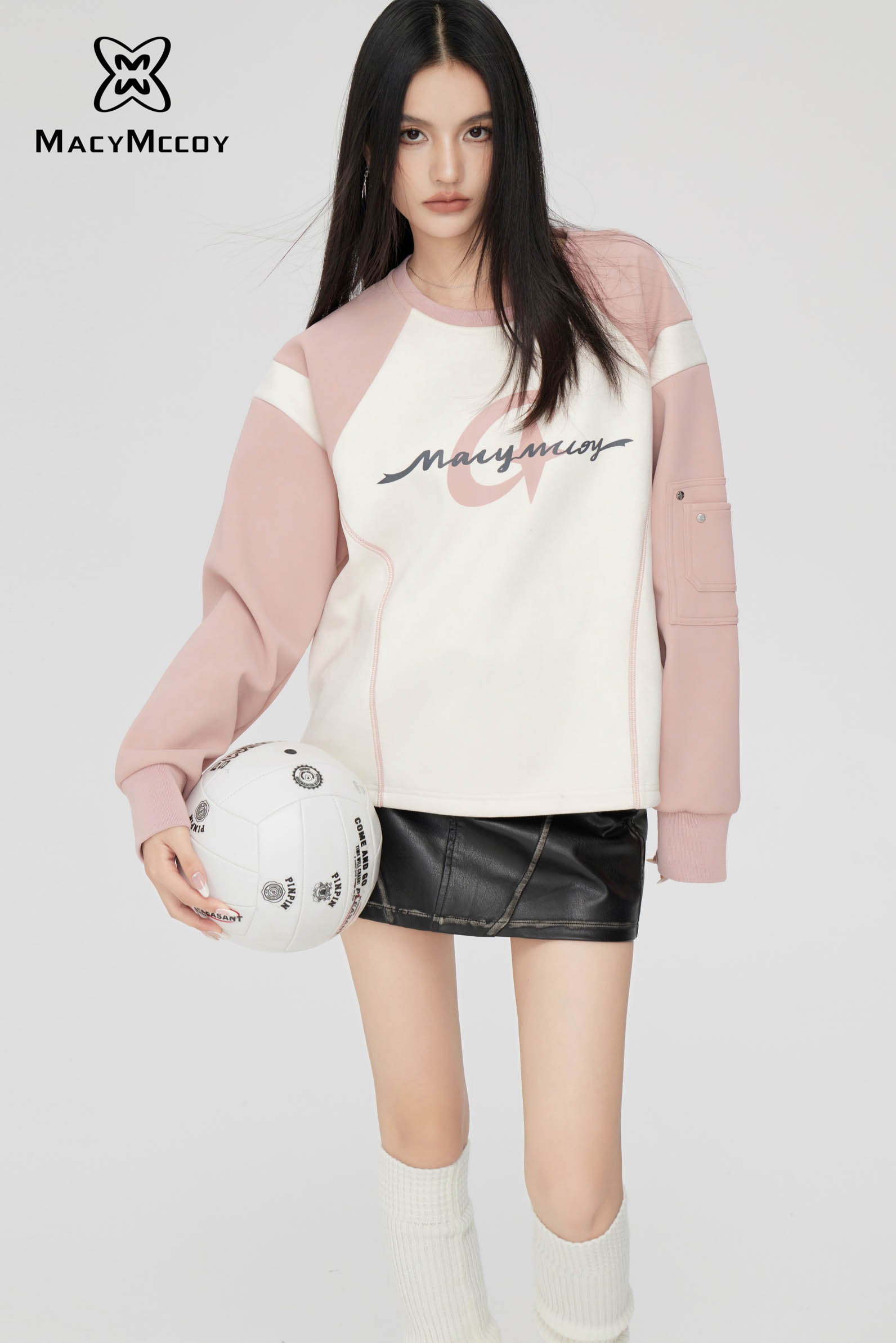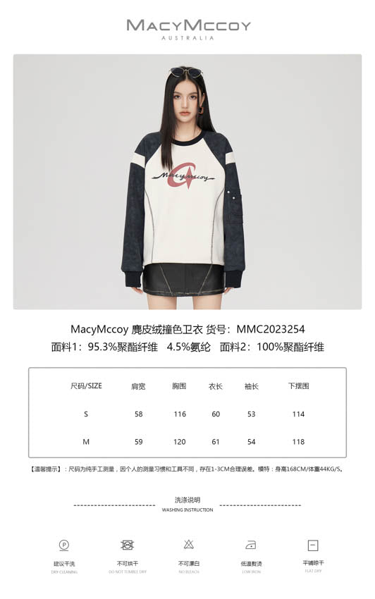 MacyMccoy SS2310 麂皮绒撞色卫衣 粉