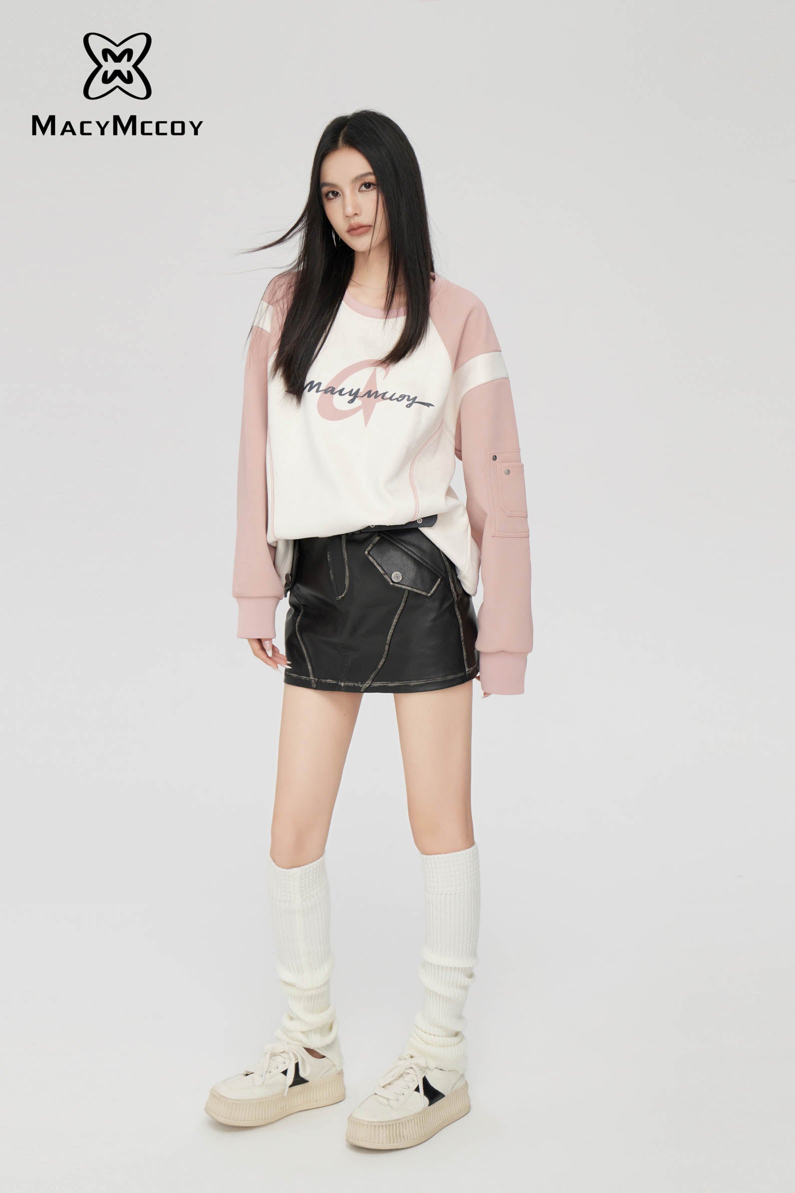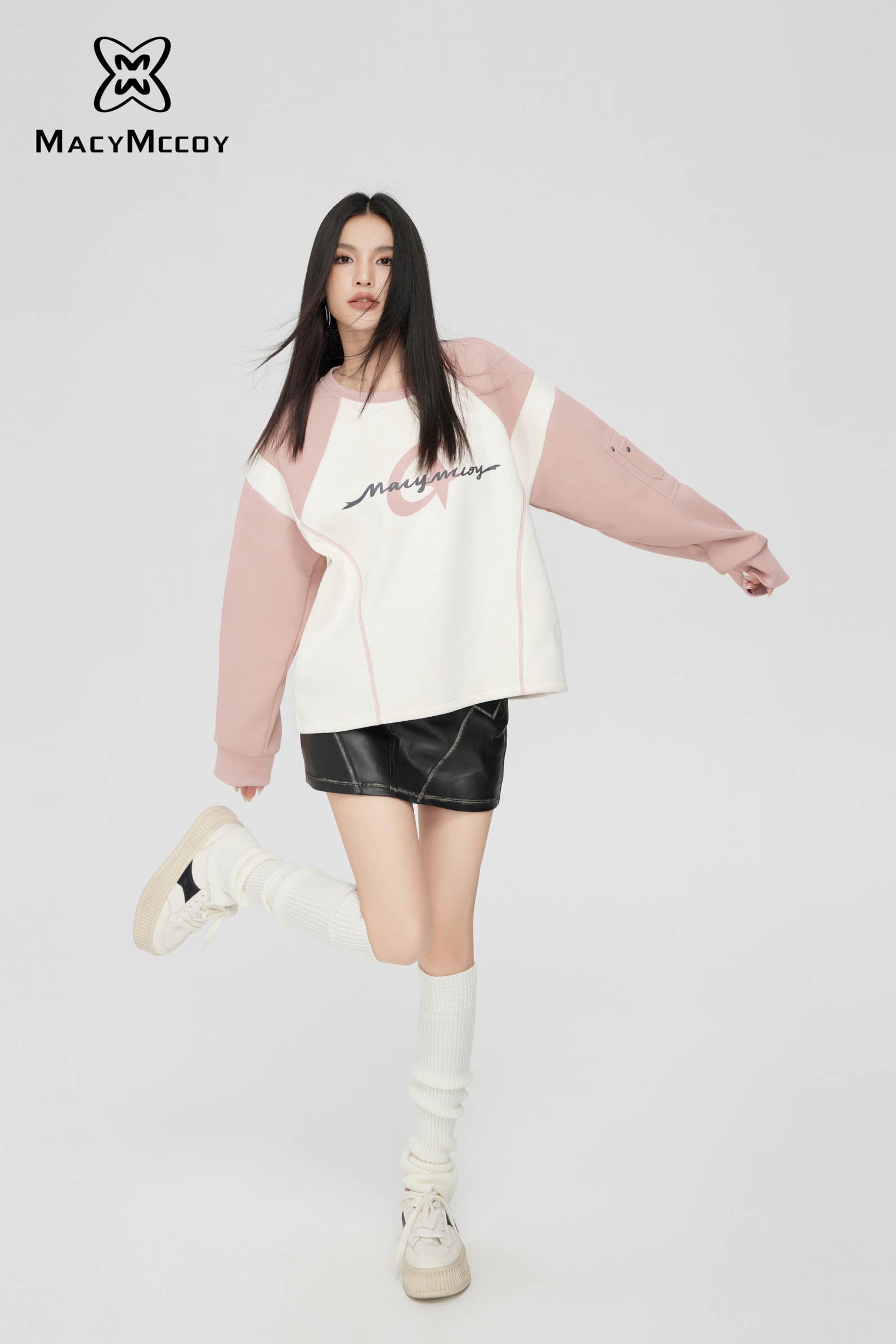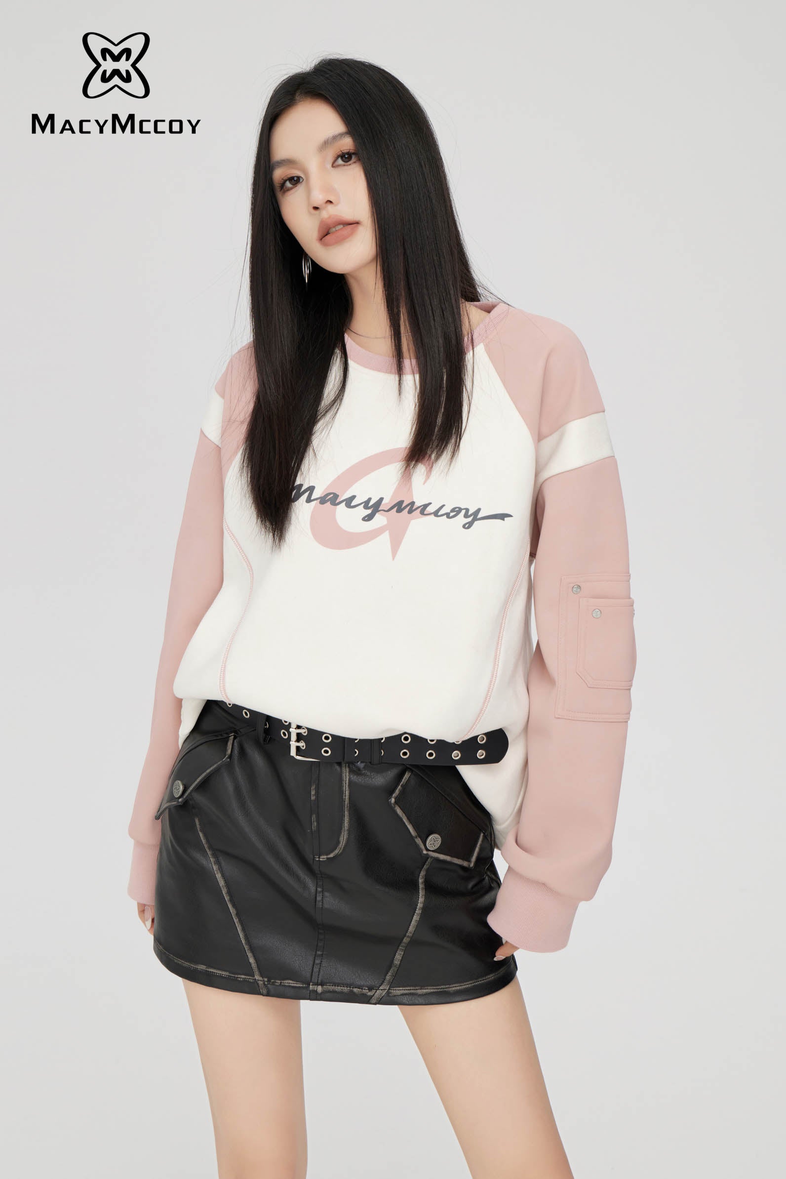 MacyMccoy SS2310 麂皮绒撞色卫衣 粉