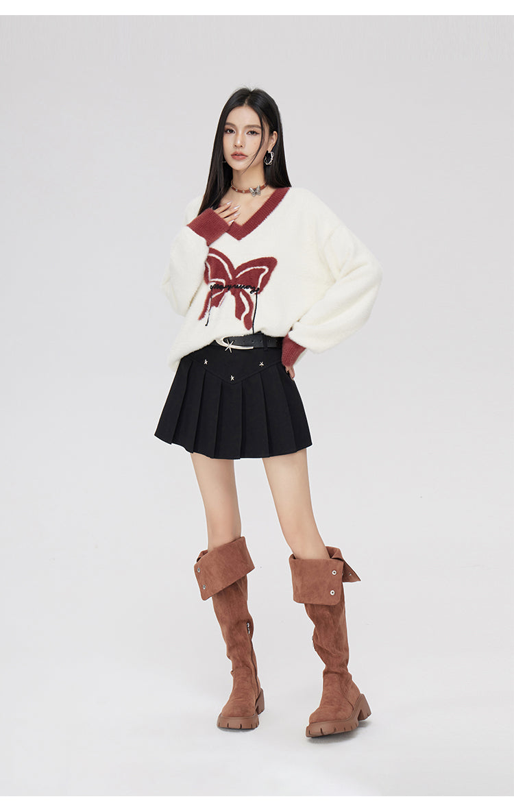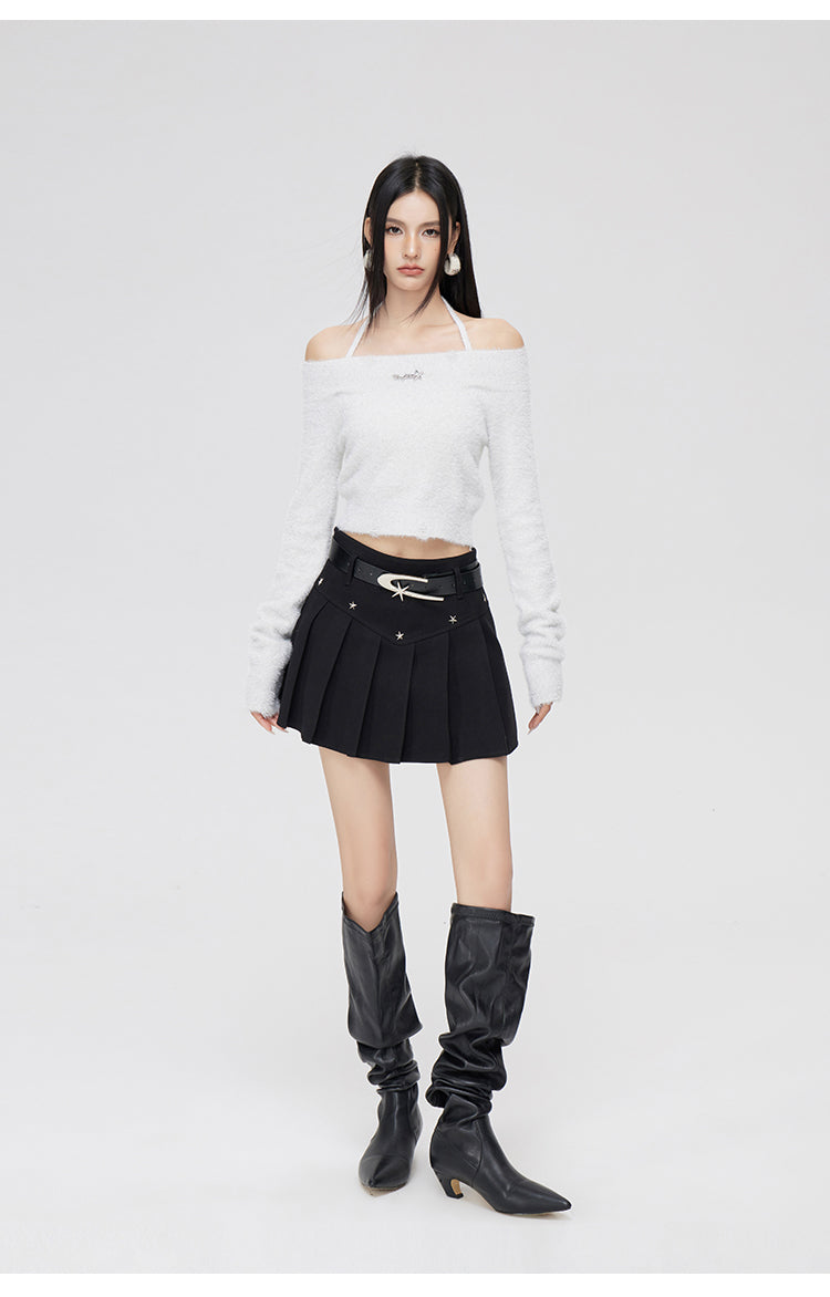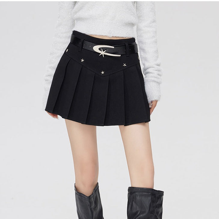 MacyMccoy SS2401 星星毛呢百褶裙 黑