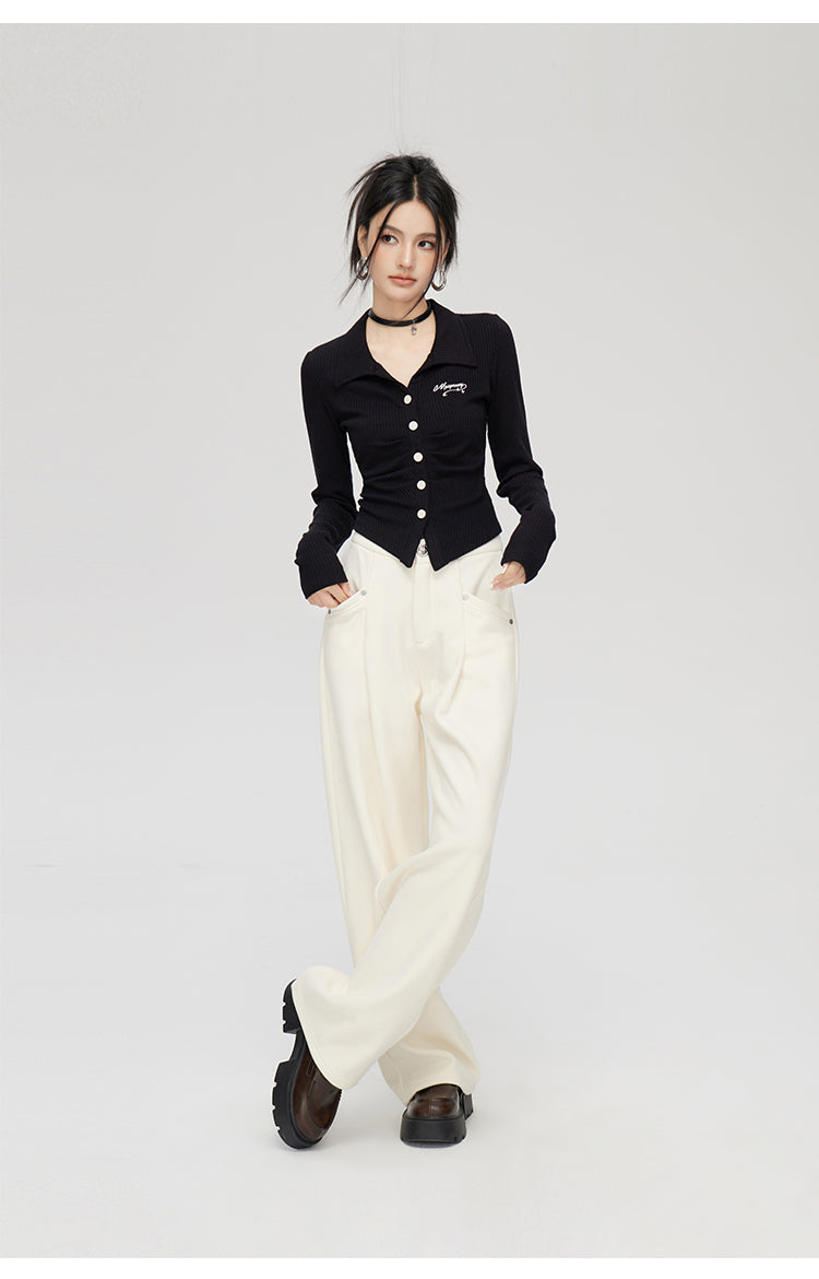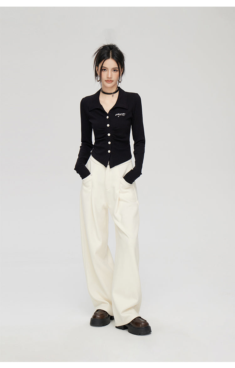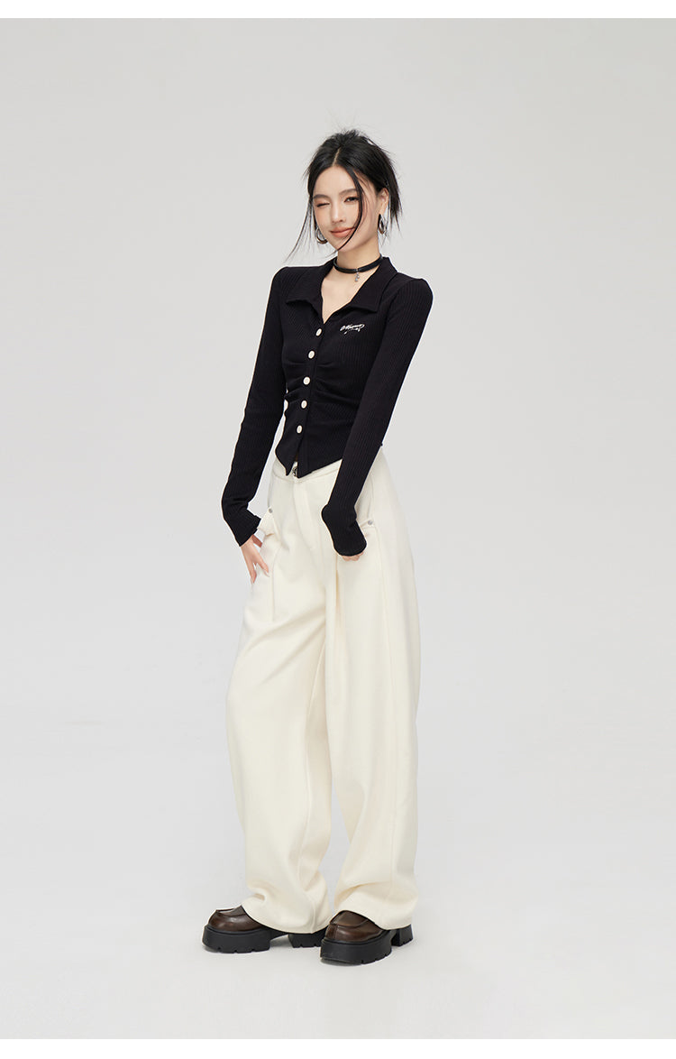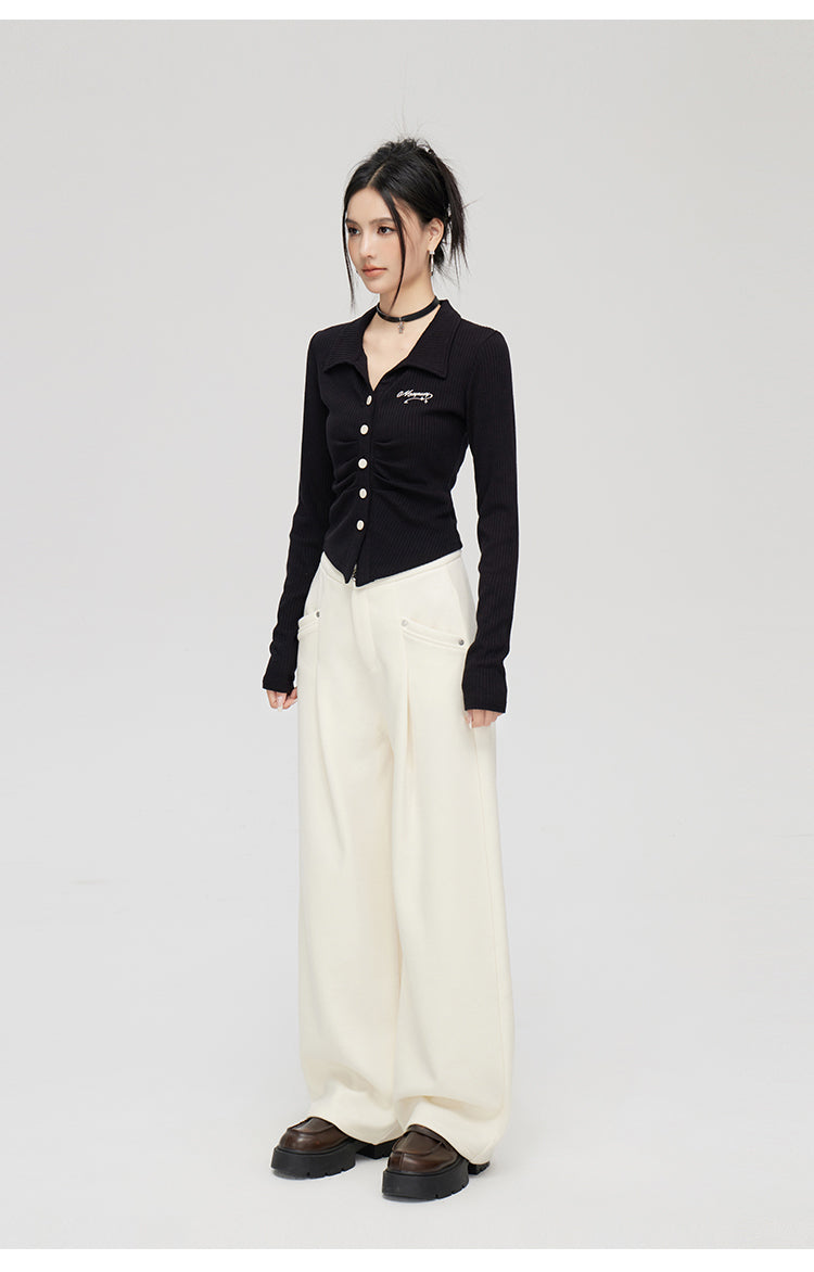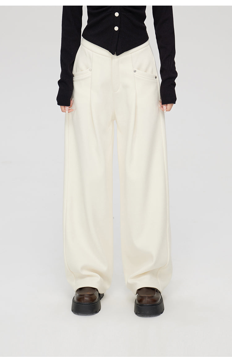 MacyMccoy SS2401 雪尼尔加绒阔腿裤 米白