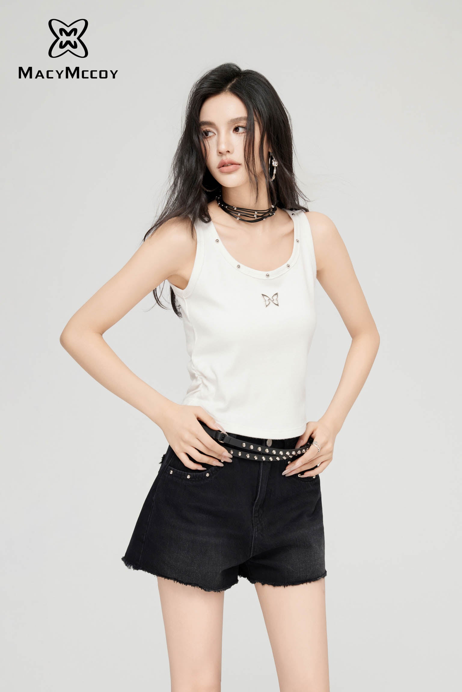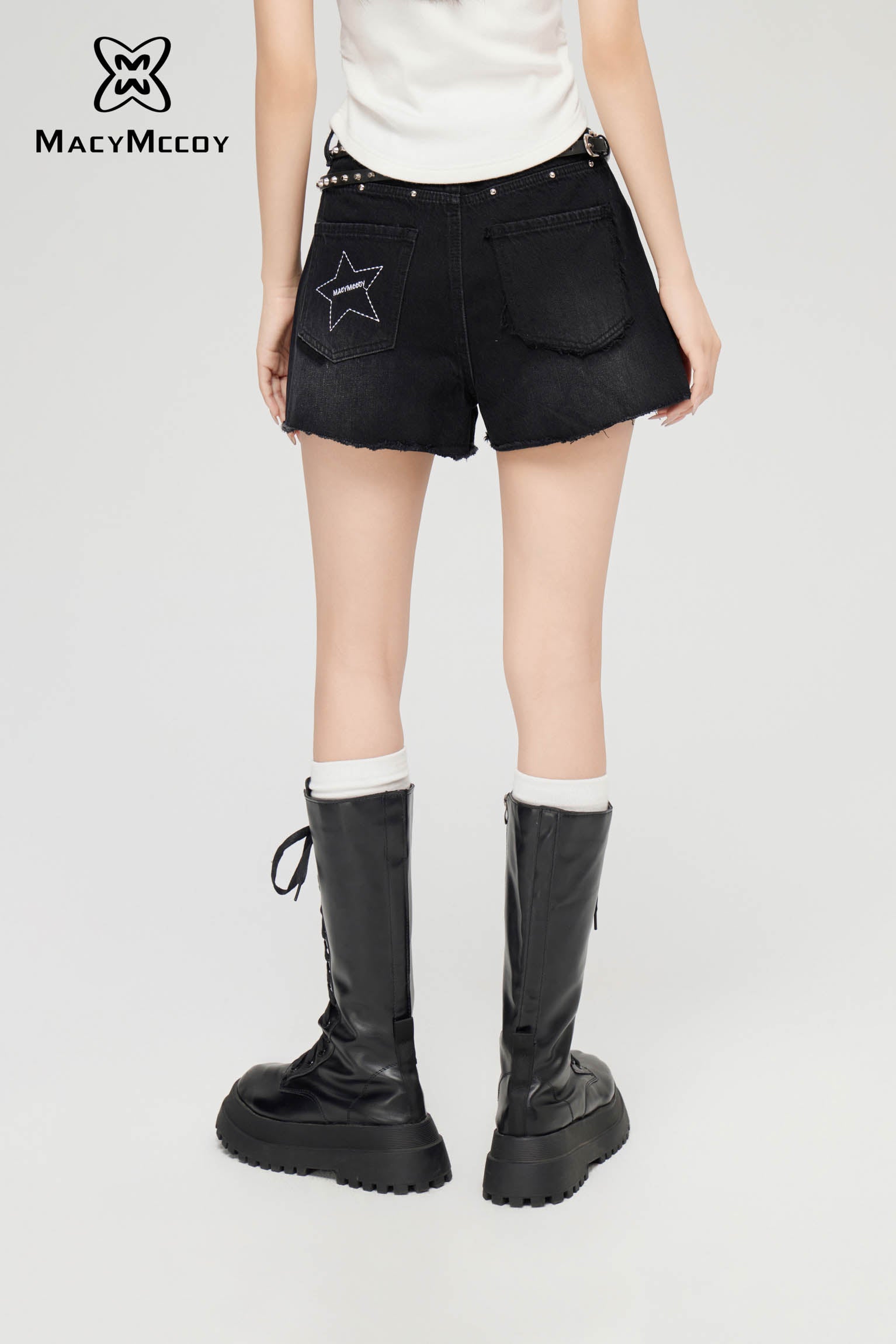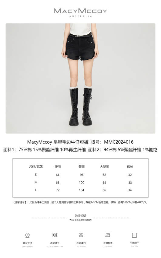MacyMccoy SS2403 星星毛边牛仔短裤 黑