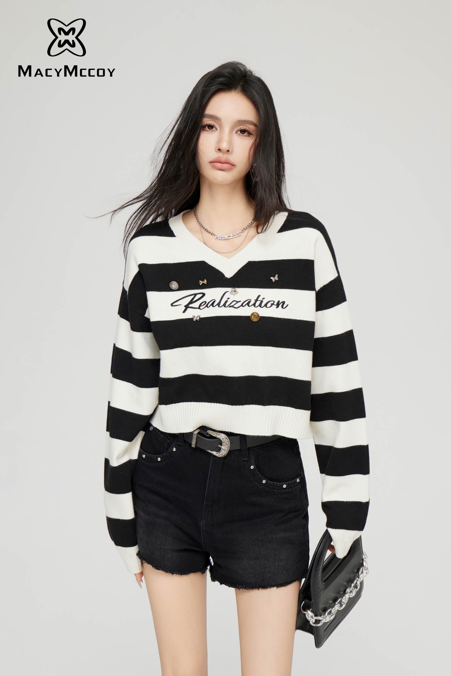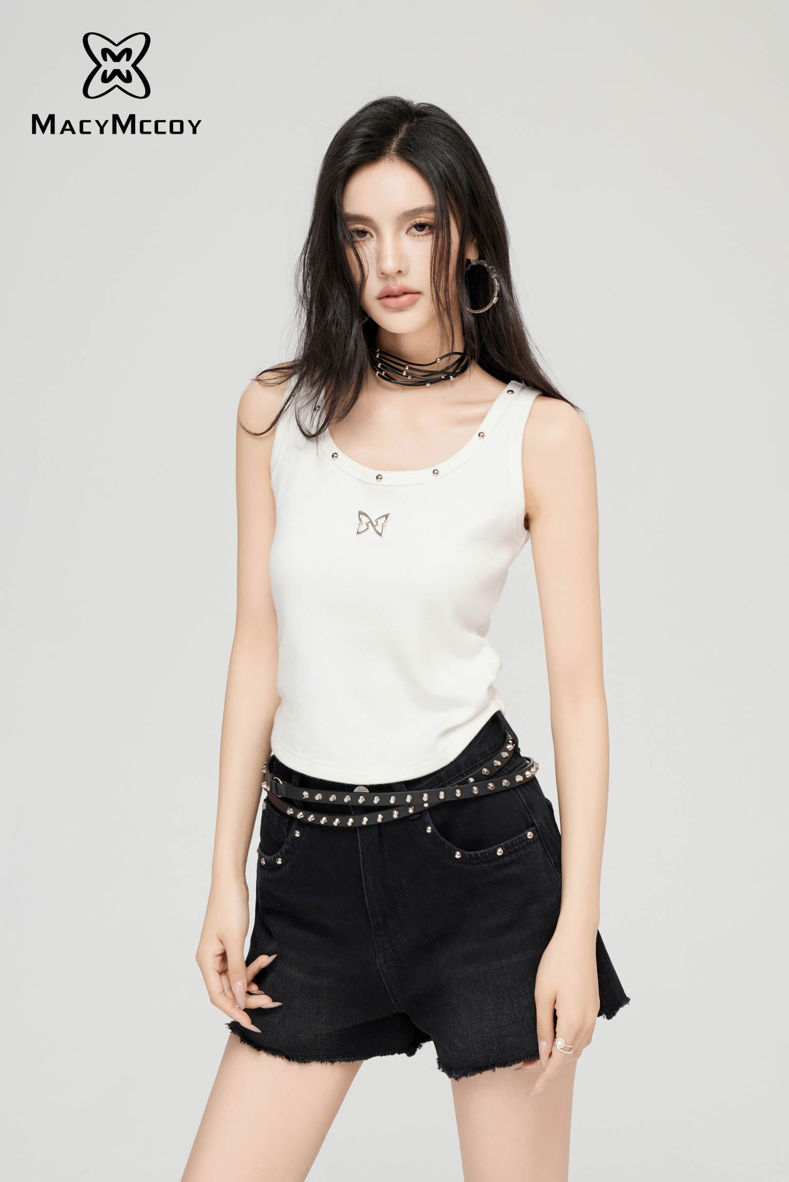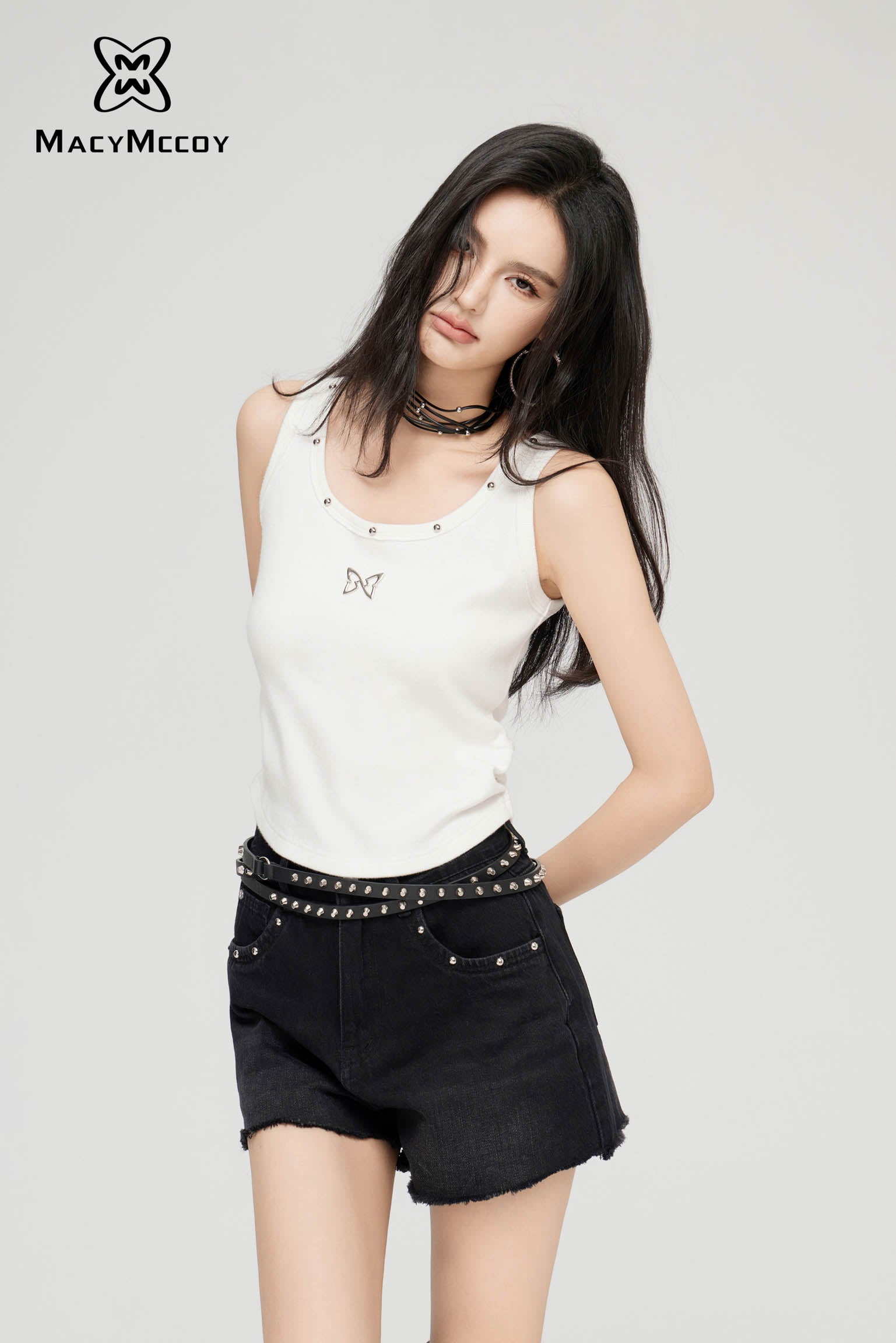 MacyMccoy SS2403 星星毛边牛仔短裤 黑