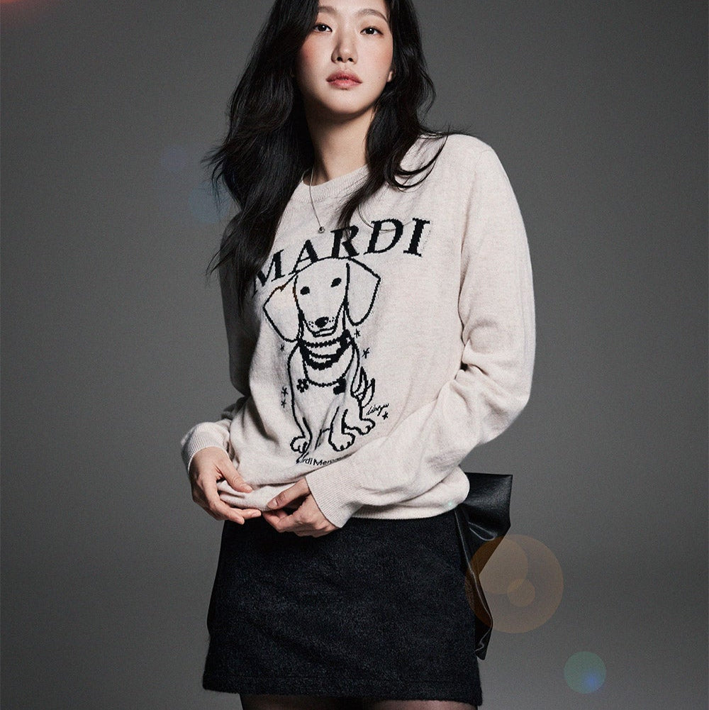 MARDI MERCREDI 2502 CASHMERE CREW NECK SWING THE TAIL DDANJI PEARL NECKLACE_LIGHTBEIGE BLACK