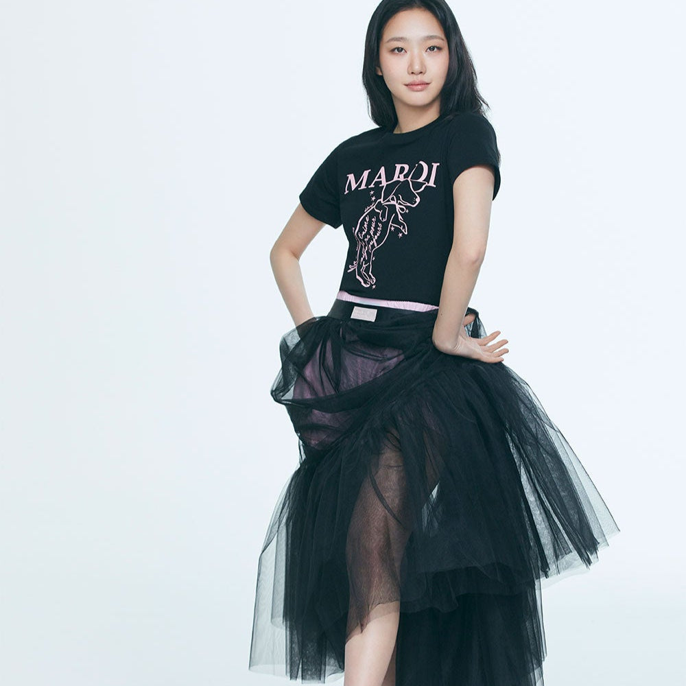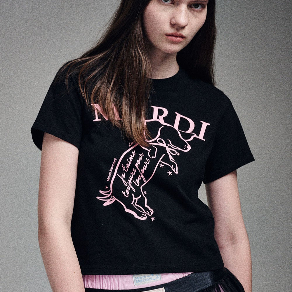 MARDI MERCREDI 2502 摇尾珍珠小狗短袖t恤 黑粉