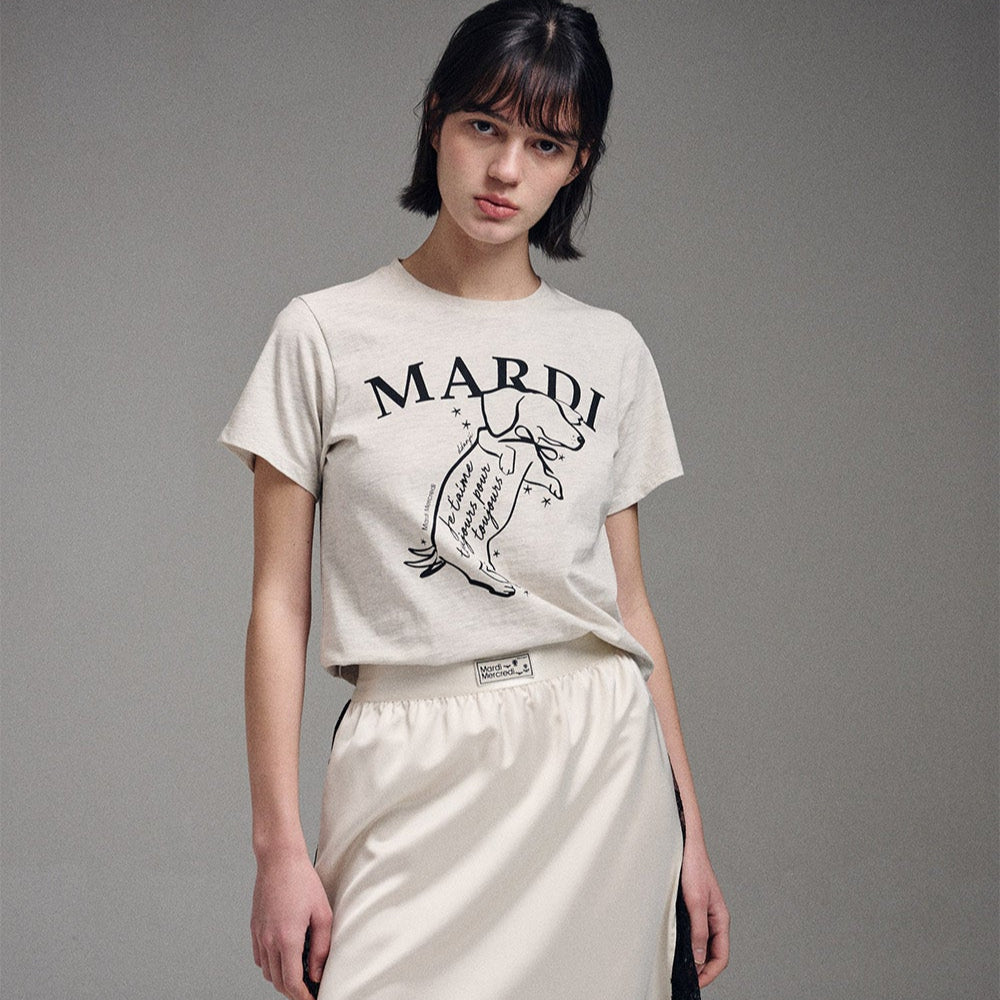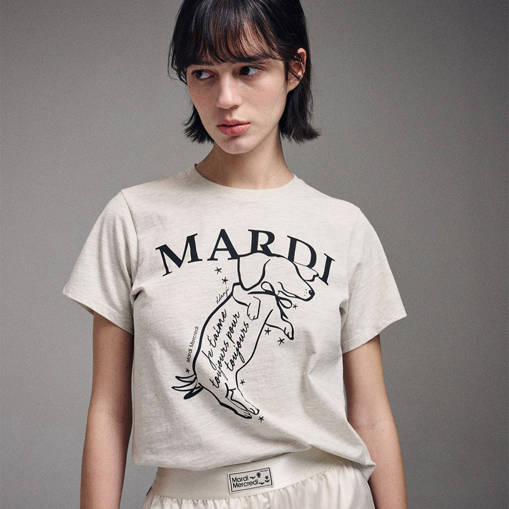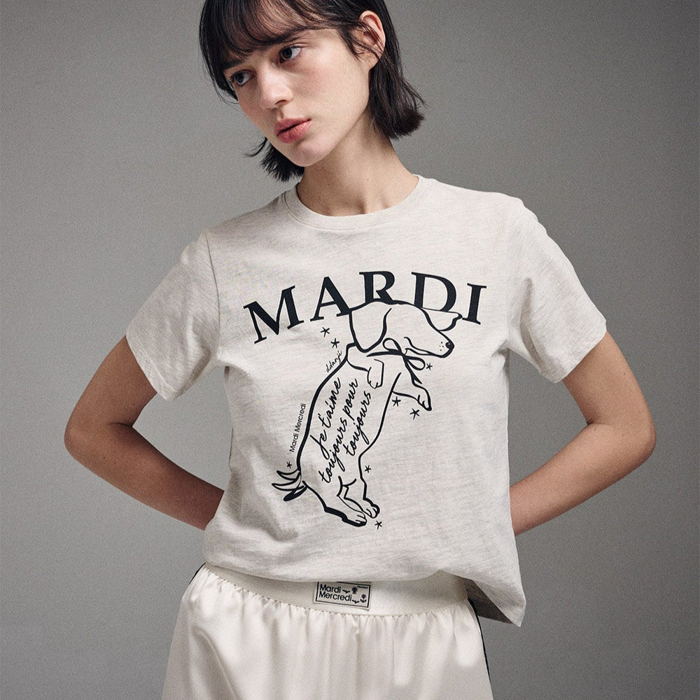 MARDI MERCREDI 2502 摇尾珍珠小狗短袖t恤 雾灰