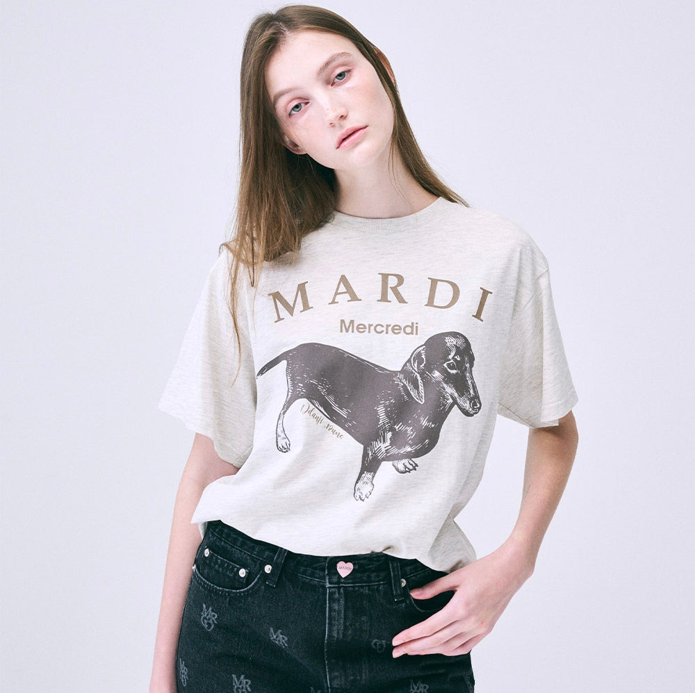 MARDI MERCREDI 2502 经典腊肠狗短袖t恤 雾灰