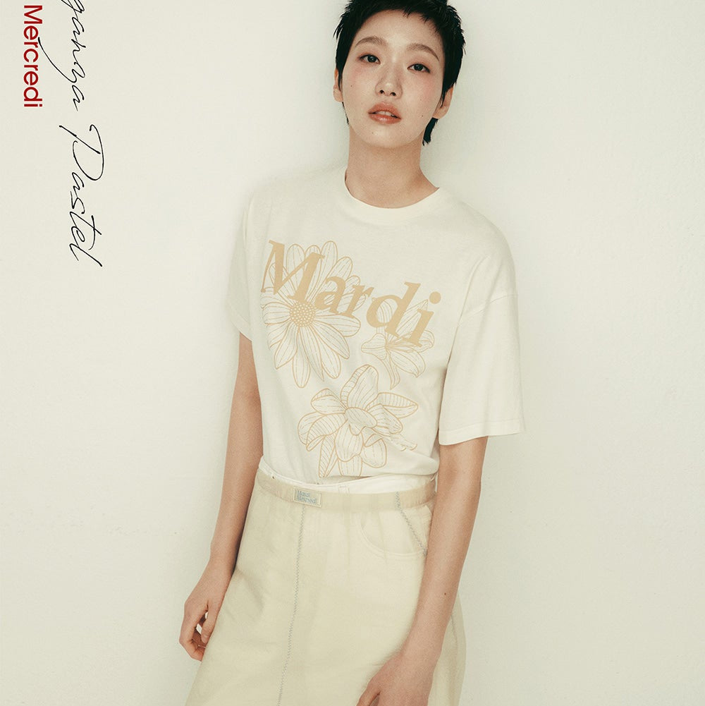 MARDI MERCREDI 2505 TSHIRT TRIPLE FLOWER_CREAM PEANUT