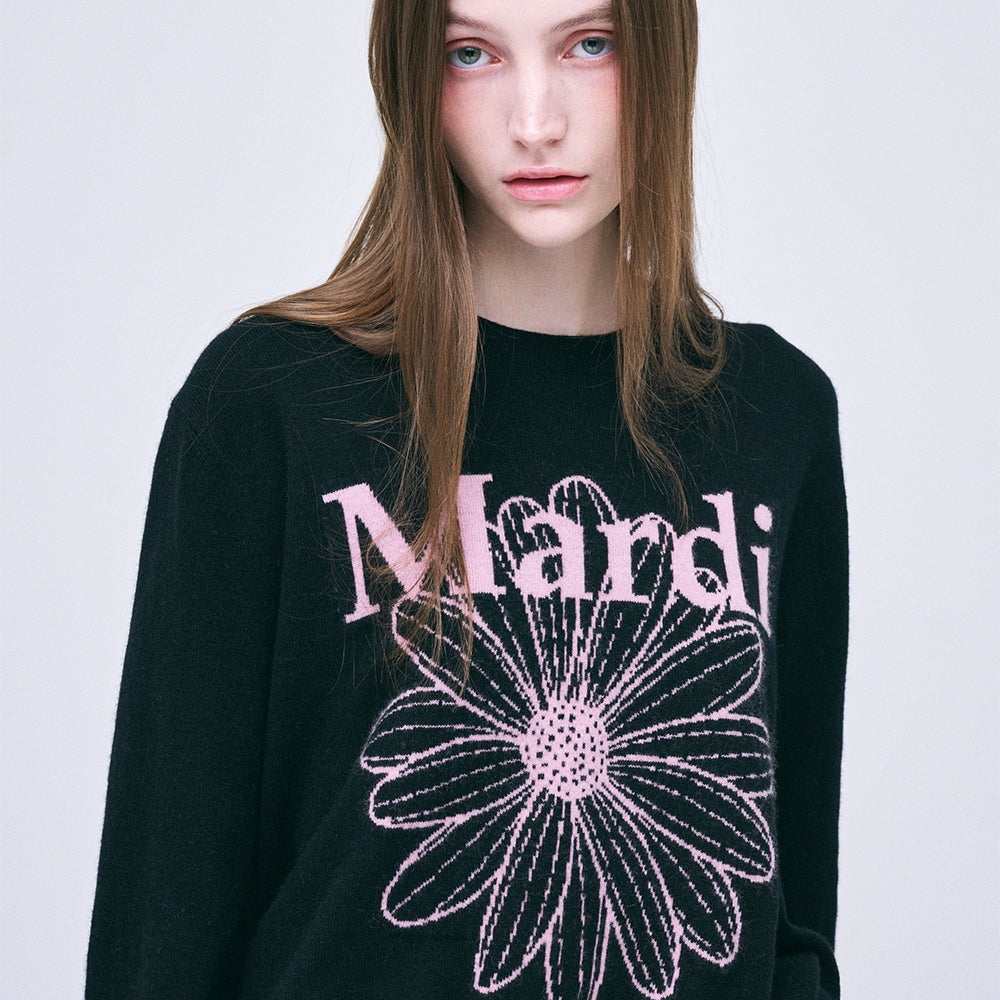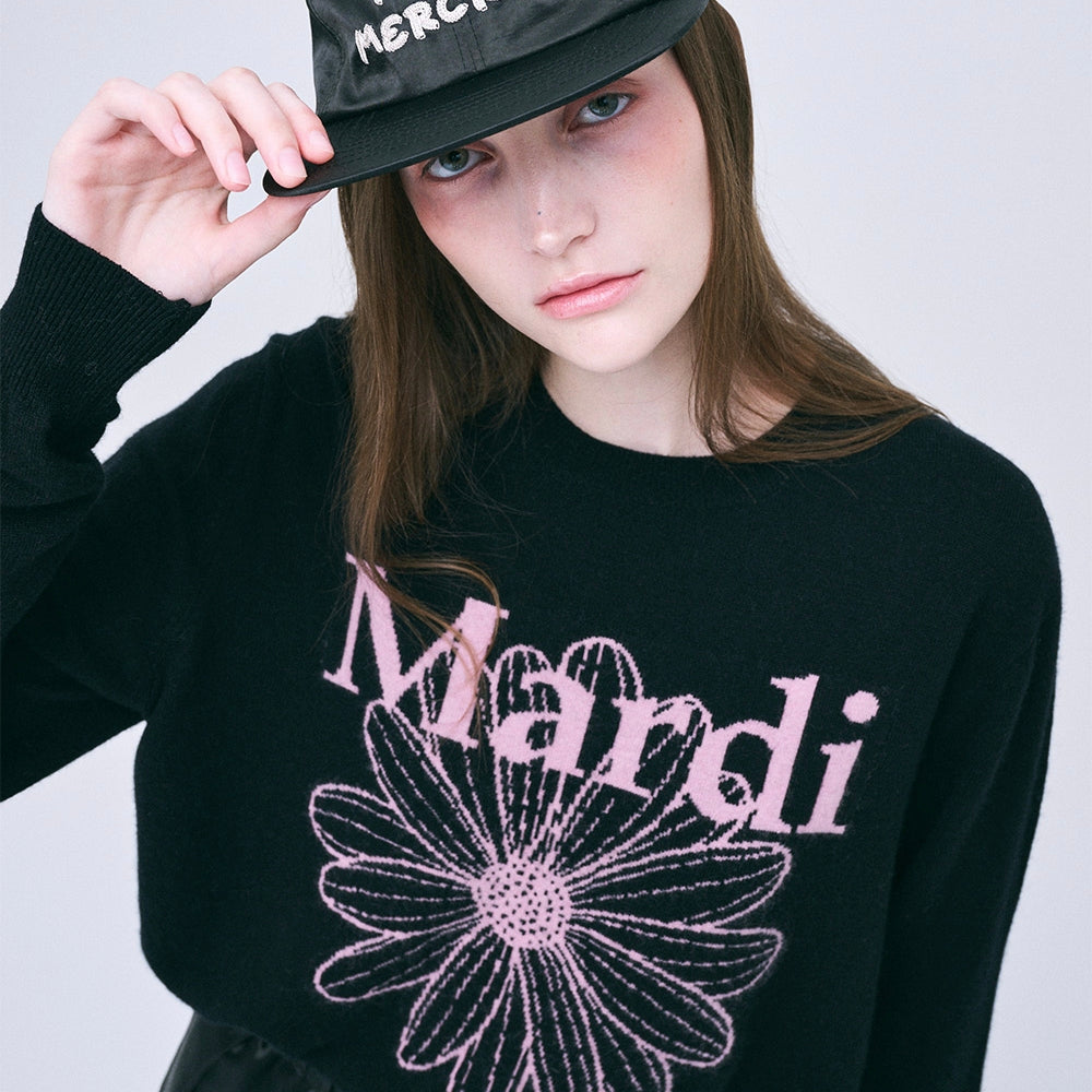 MARDI MERCREDI 2510 CASHMERE CREW NECK FLOWERMARDI_BLACK PINK