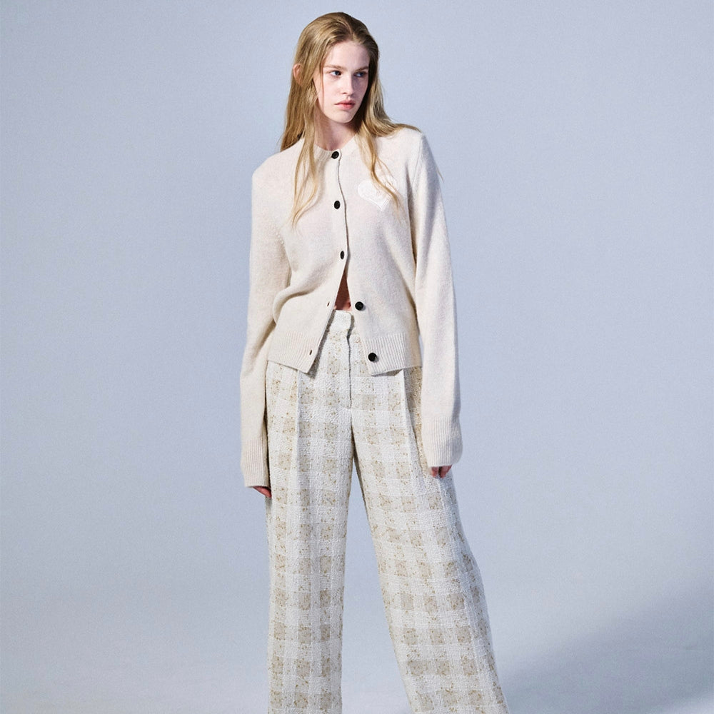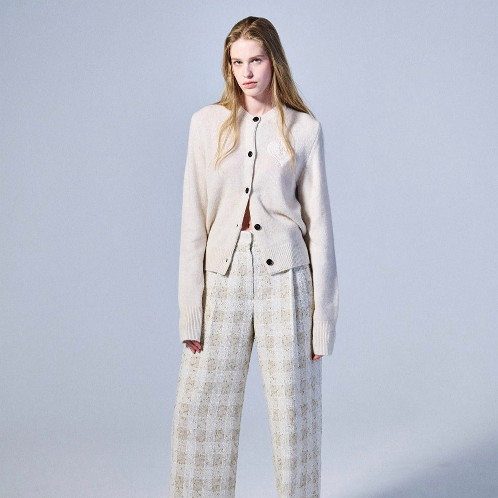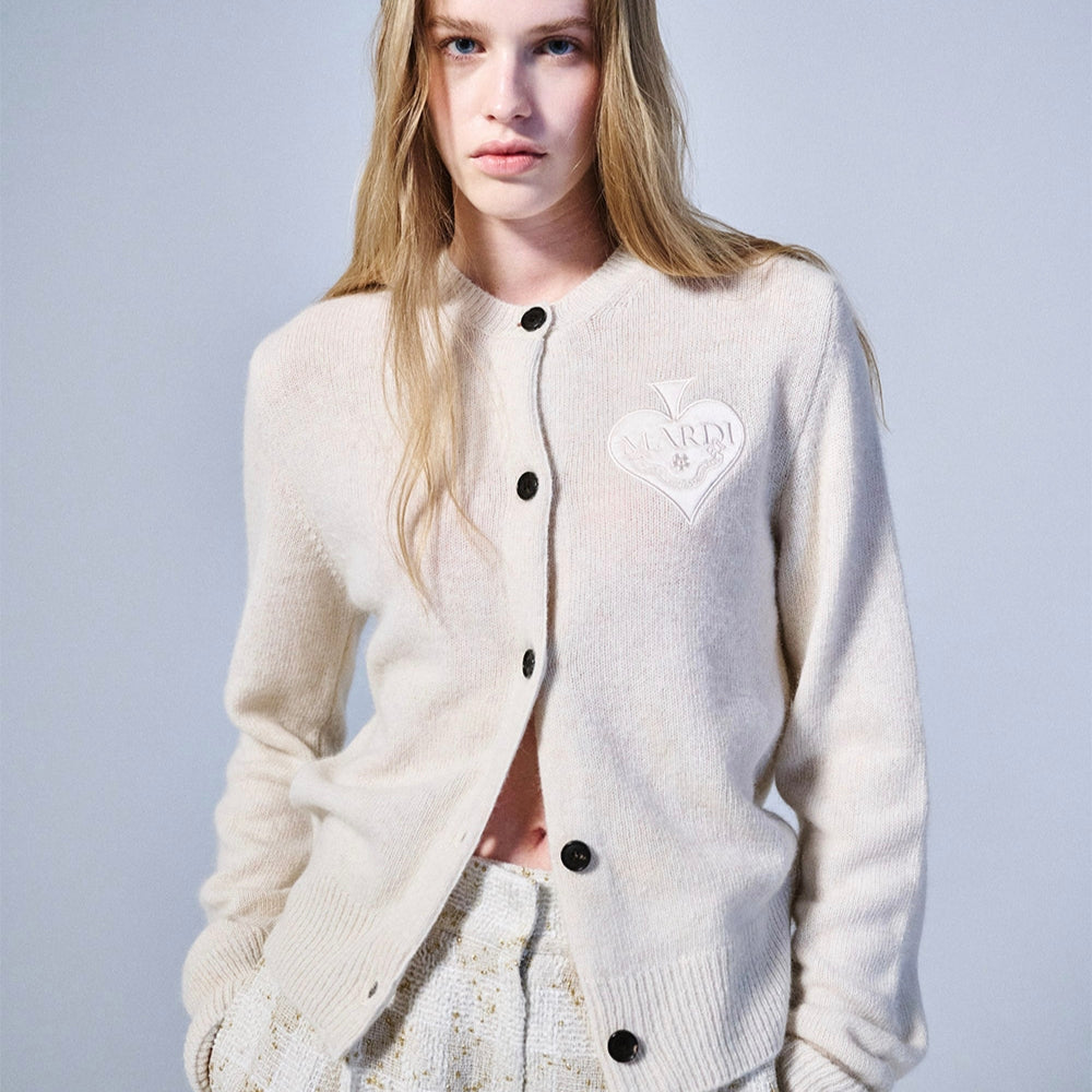MARDI MERCREDI 2510 RACCOON BLENDED CARDIGAN ROUND NECK SPADE_IVORY