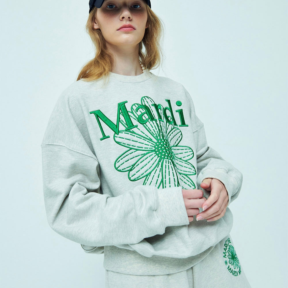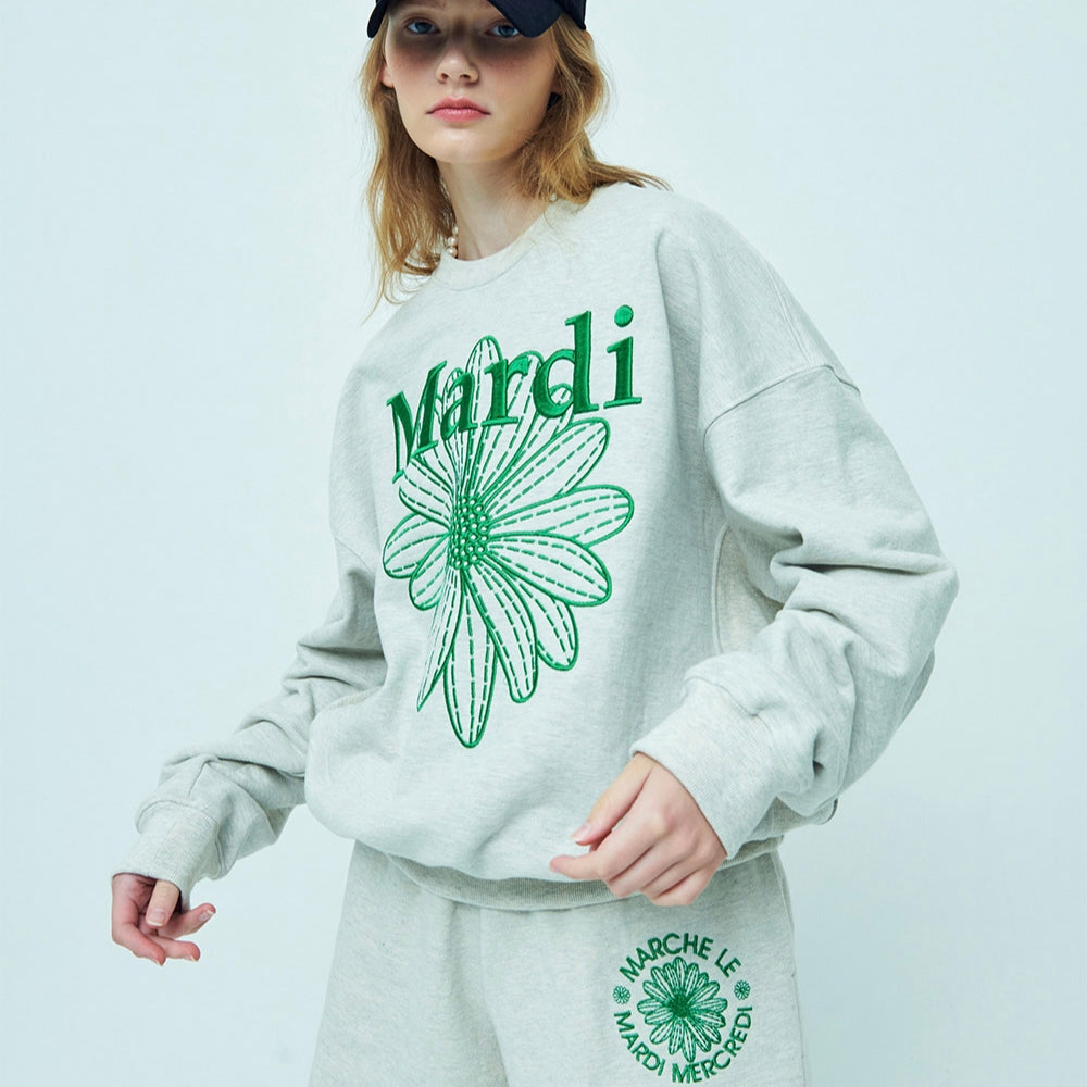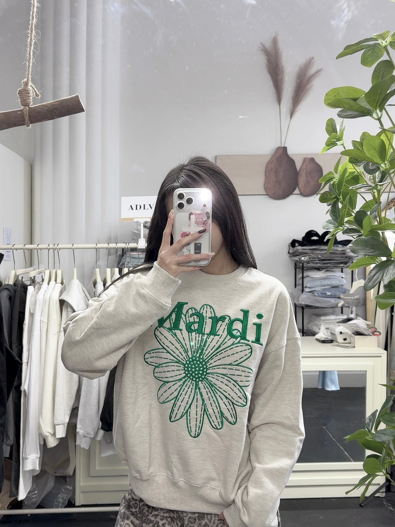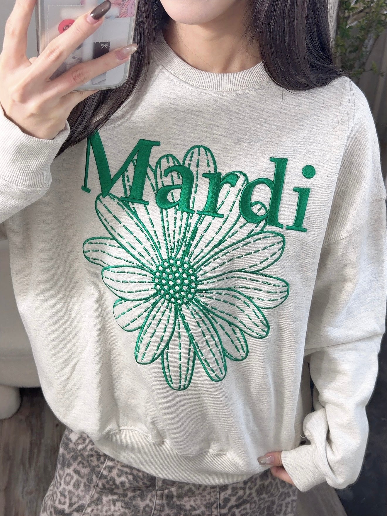 MARDI MERCREDI 2510 SWEATSHIRT FLOWERMARDI NEEDLEWORK_OATMEAL GREEN