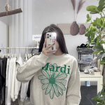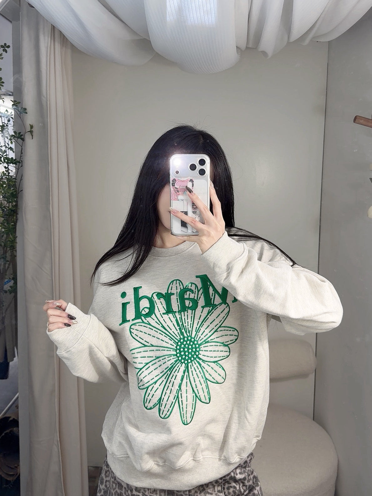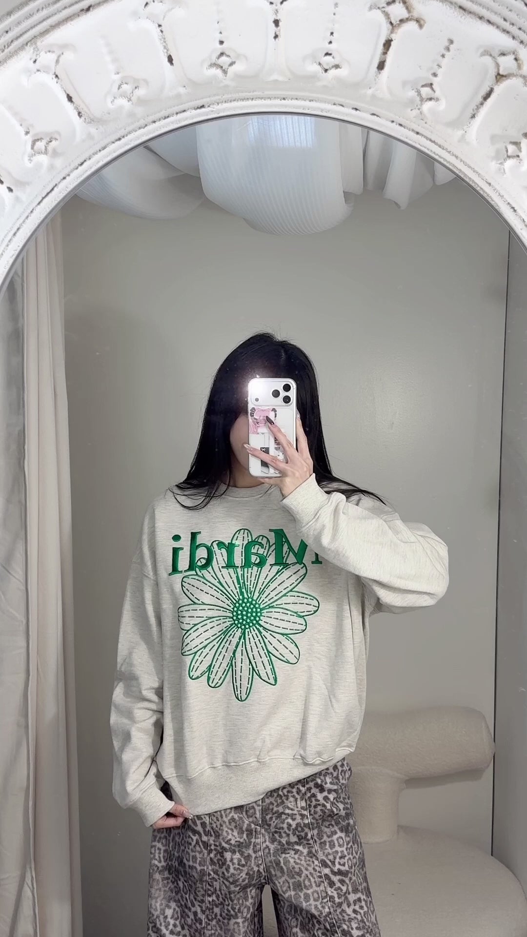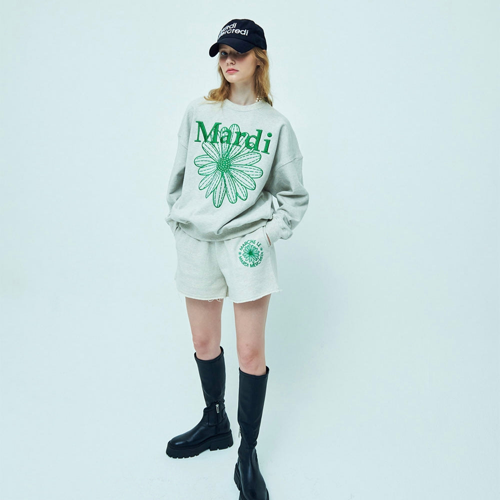 MARDI MERCREDI 2510 SWEATSHIRT FLOWERMARDI NEEDLEWORK_OATMEAL GREEN