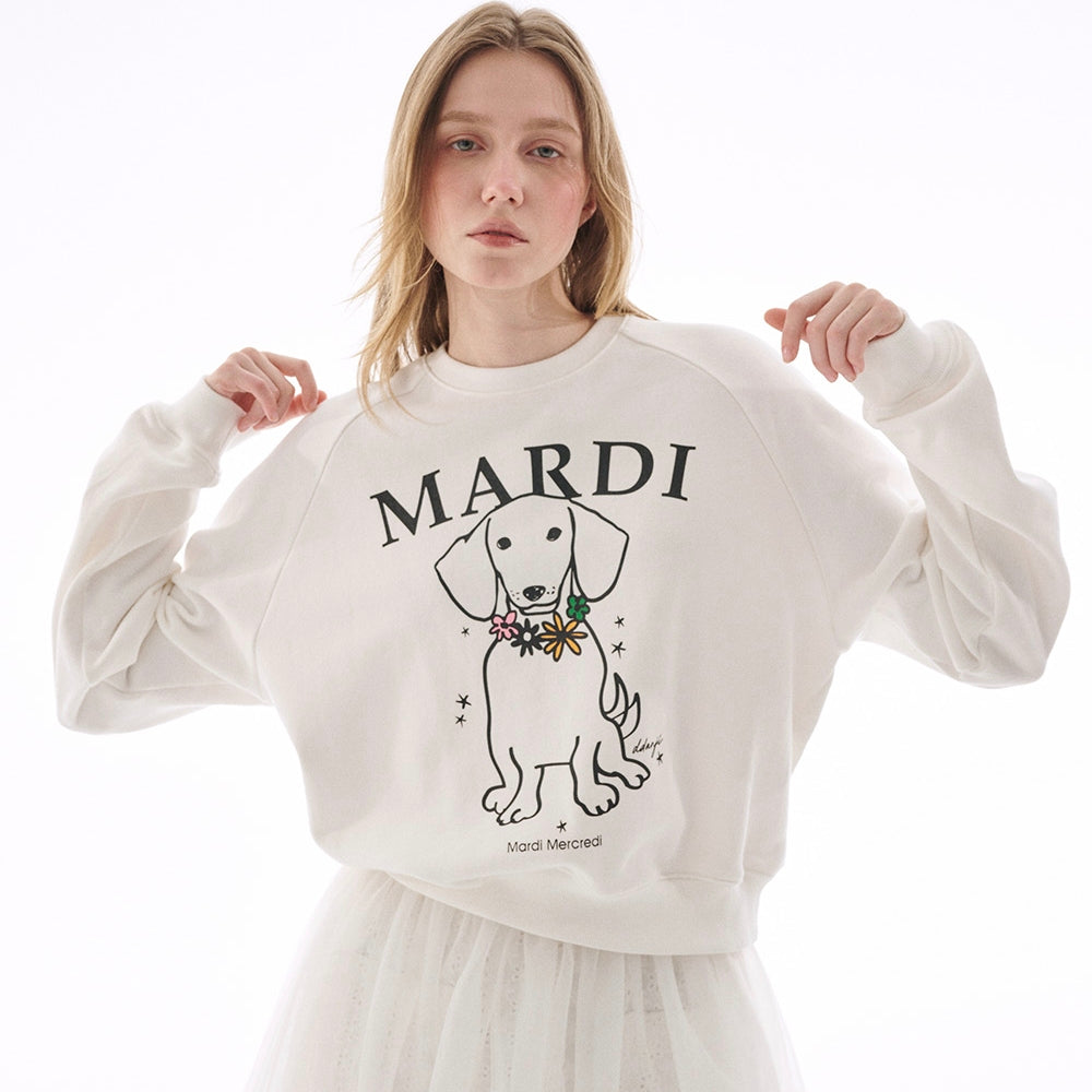 MARDI MERCREDI 2510 SWEATSHIRT RAGLAN SWING THE TAIL DDANJI FLOWER NECKLACE MULTICOLOR_WHITE TANGERINE