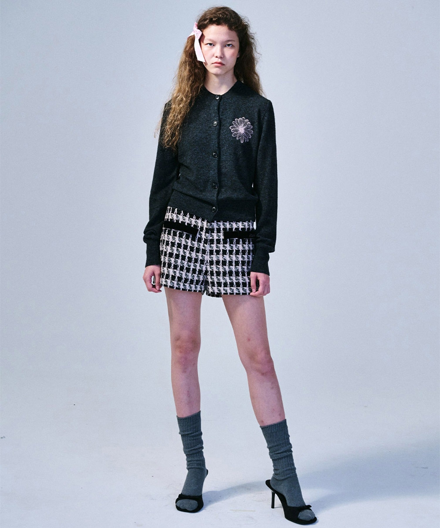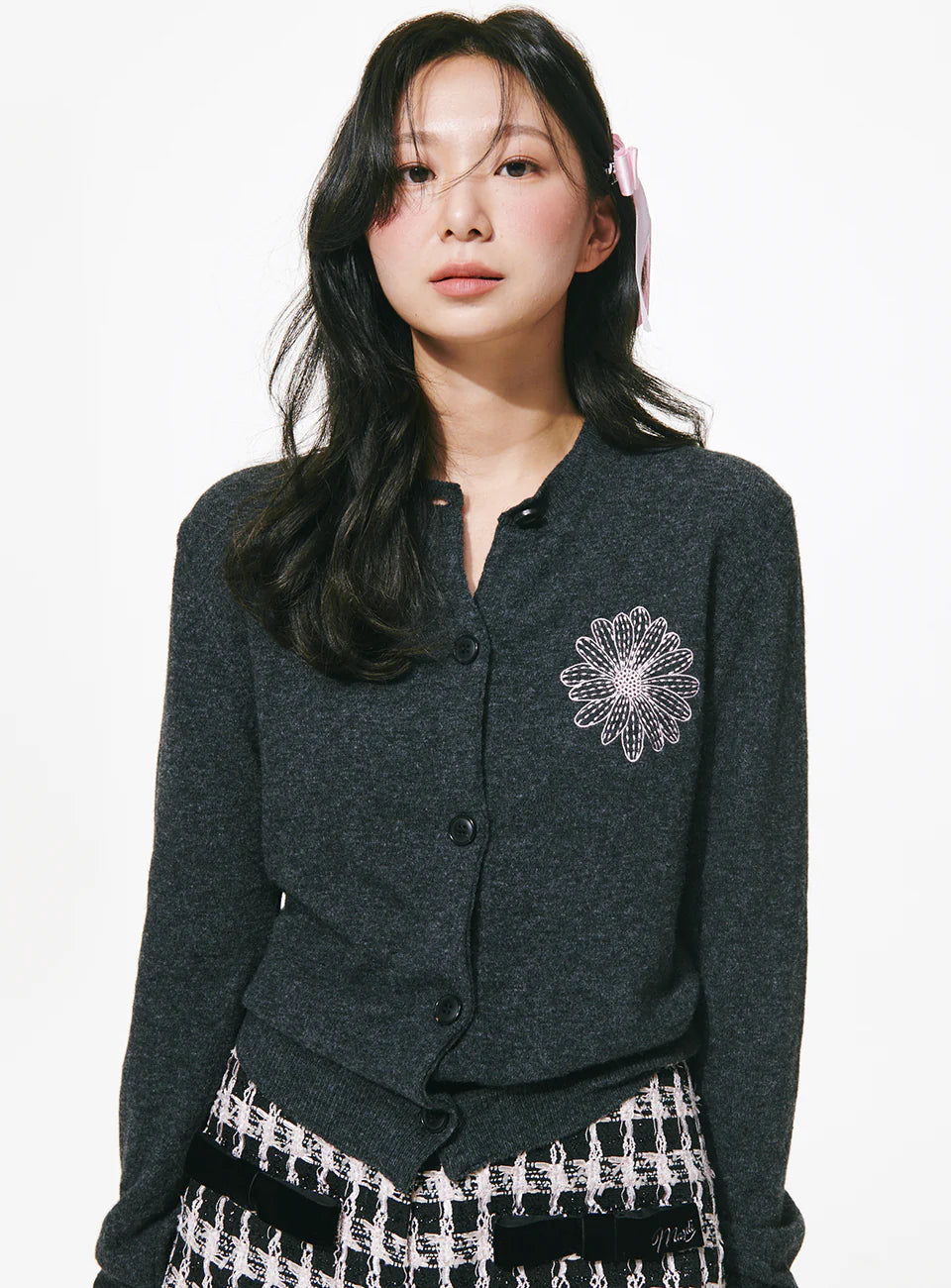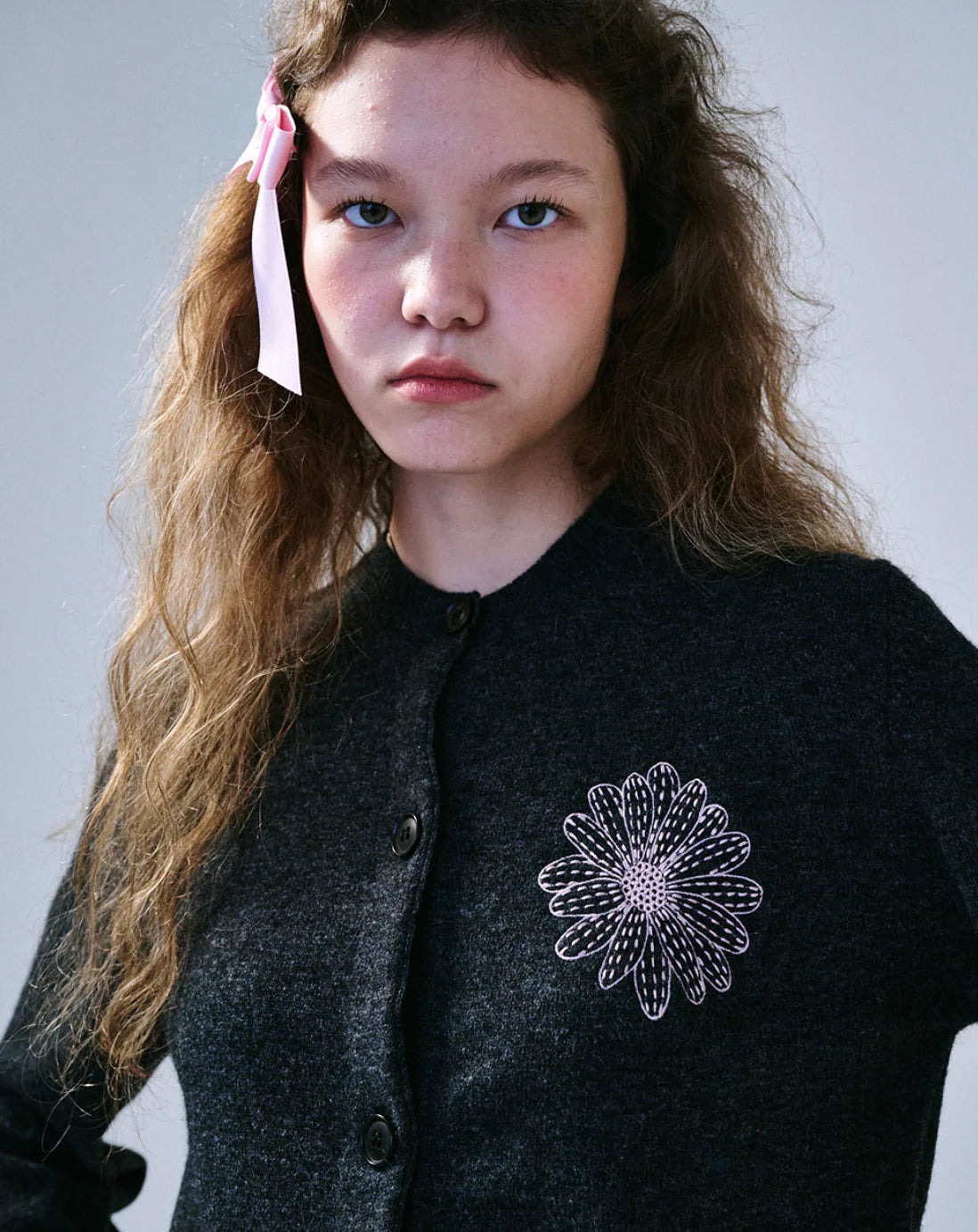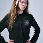 MARDI MERCREDI 2511 BLENDED CARDIGAN ROUND NECK_CHARCOAL PINK
