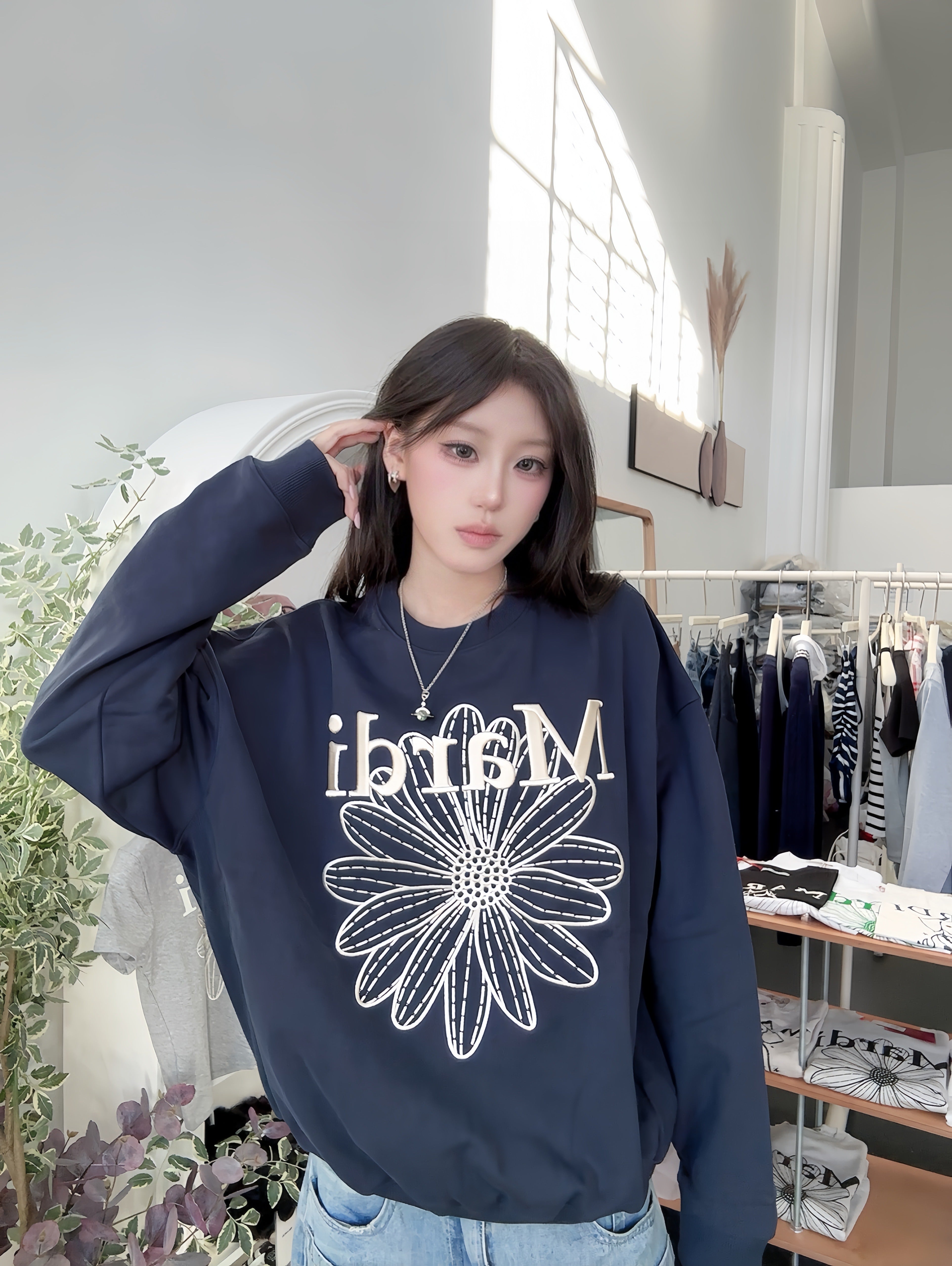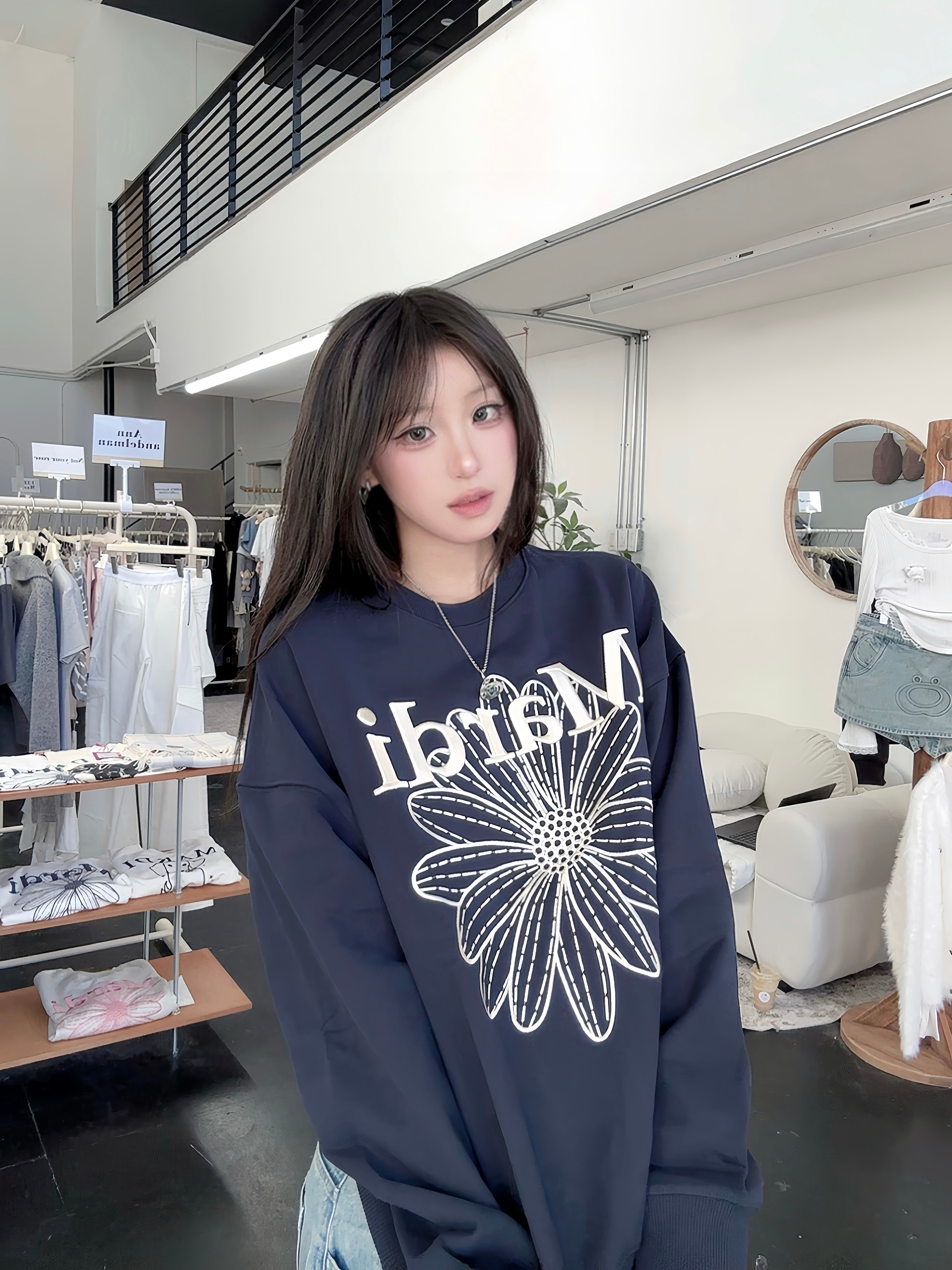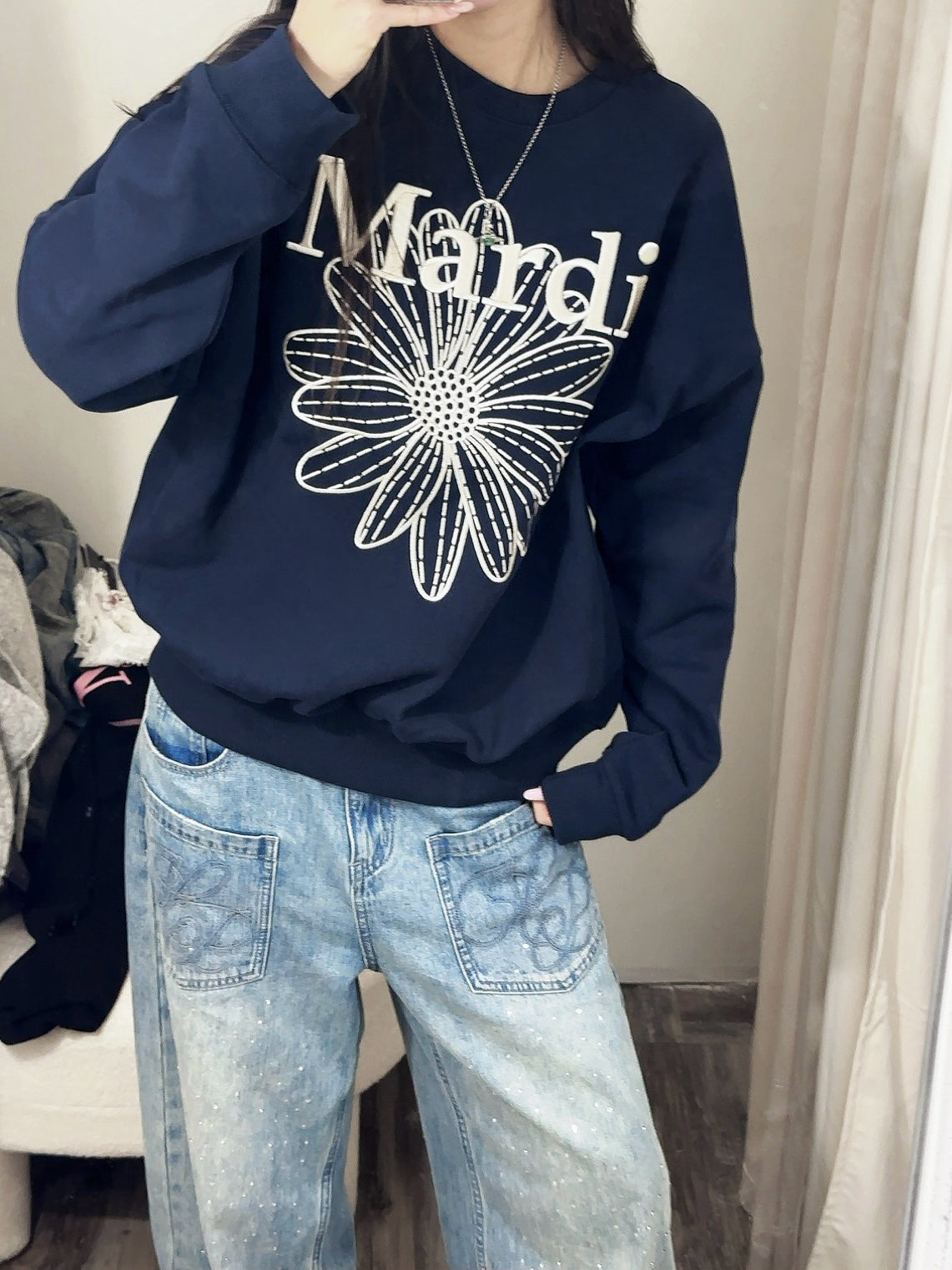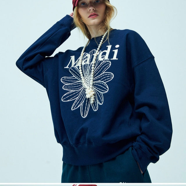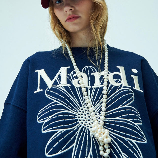 MARDI MERCREDI 2511 SWEATSHIRT FLOWERMARDI NEEDLEWORK_NAVY CREAM