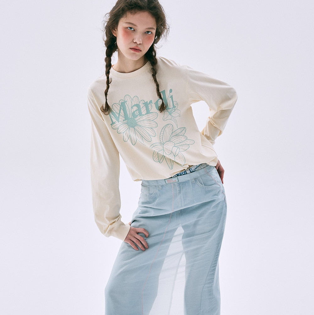 MARDI MERCREDI 2511 TSHIRT LONG SLEEVE TRIPLE FLOWER_BUTTER MOSSGREEN