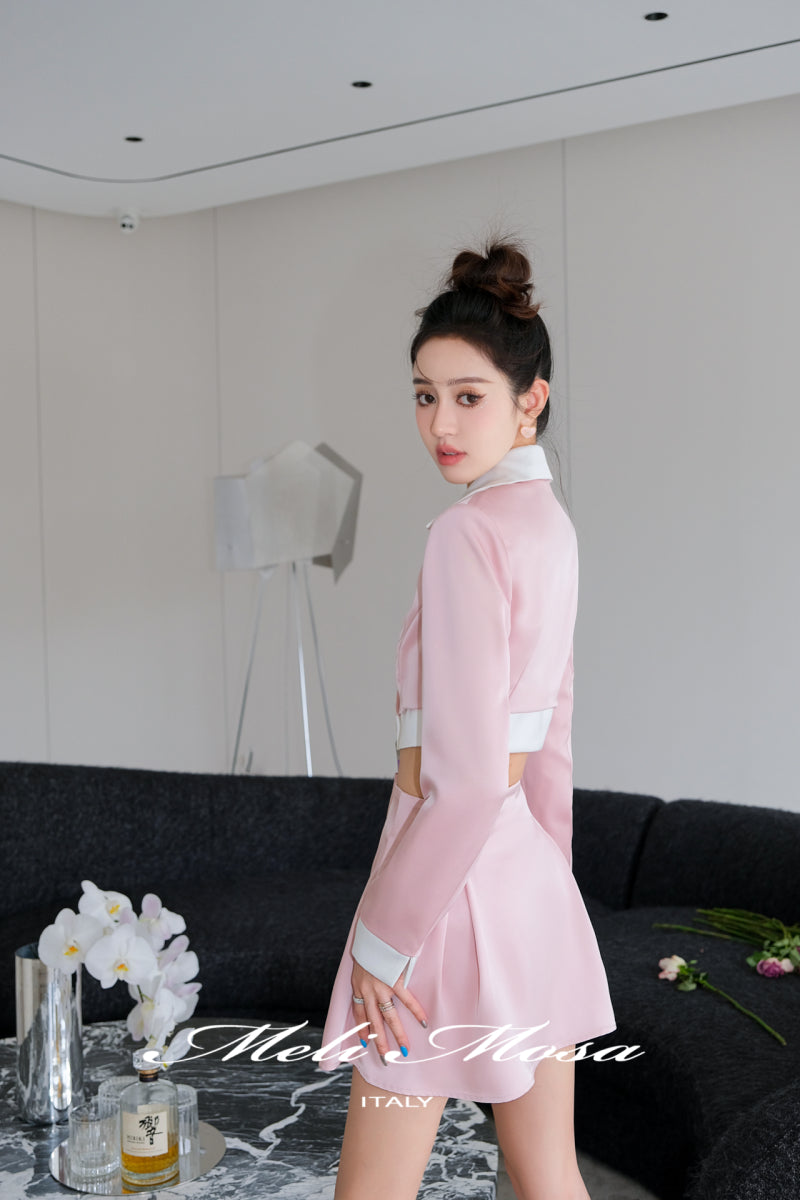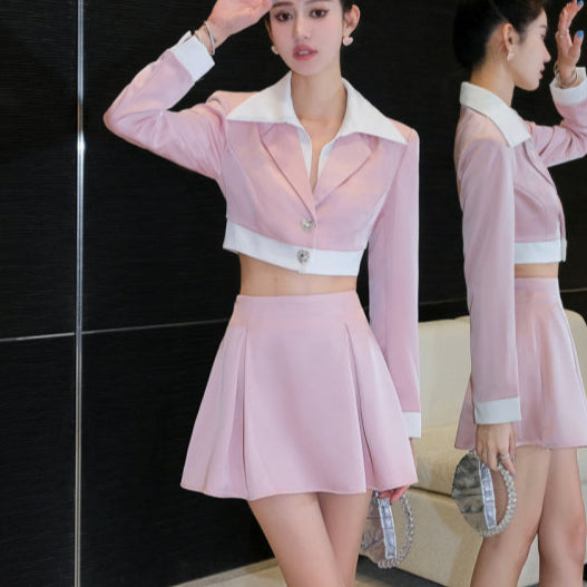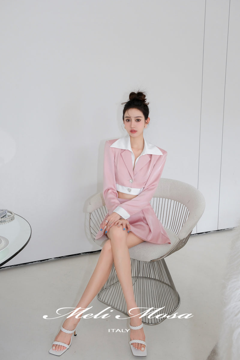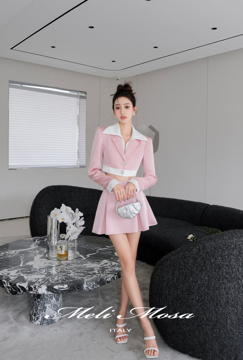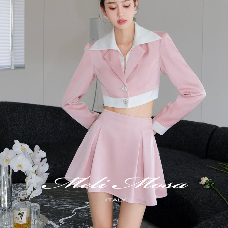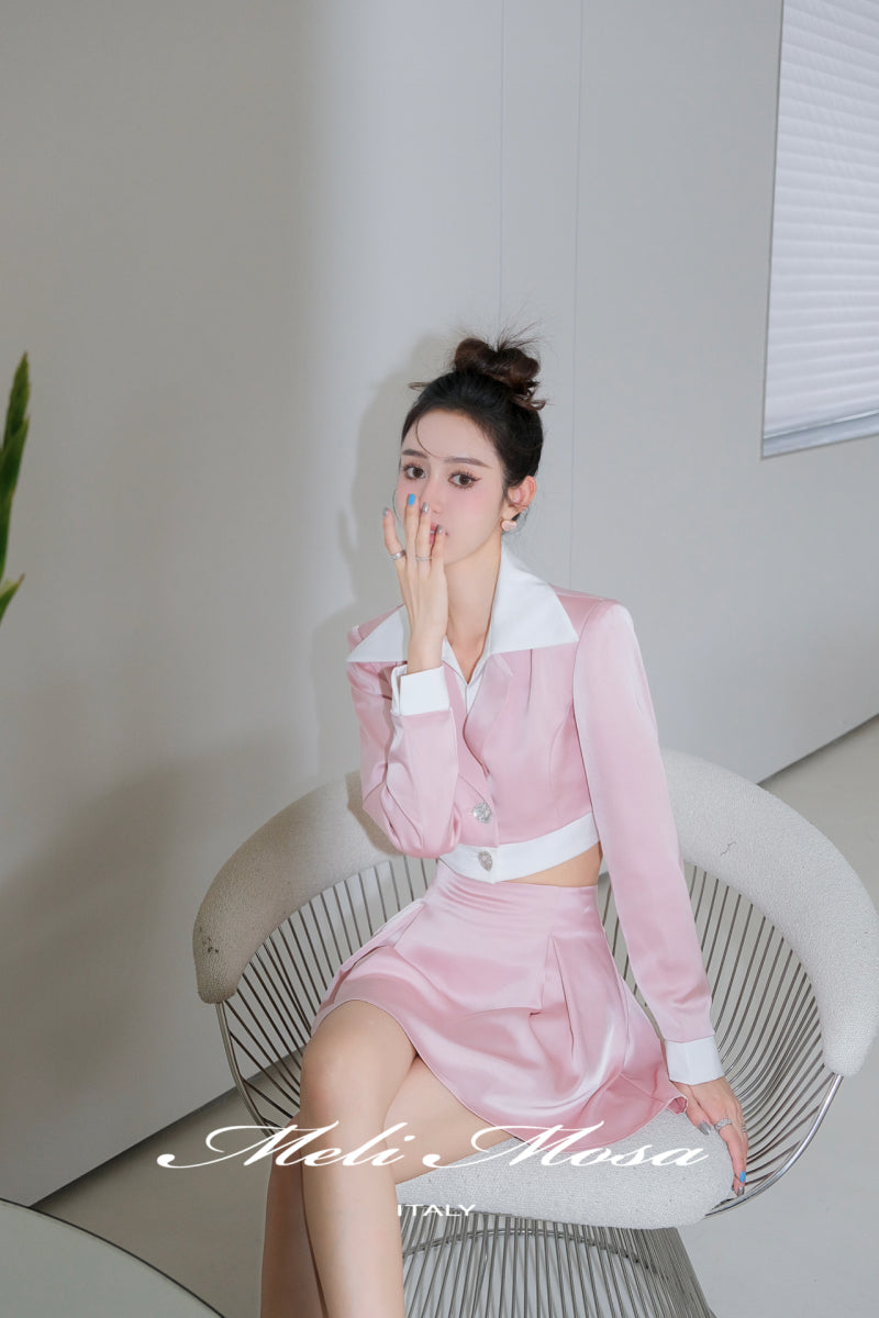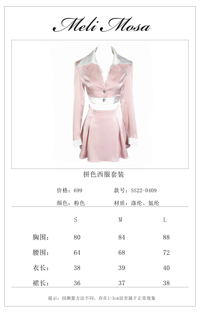 MeliMosa 拼色短款西服上衣高腰半身裙两件套